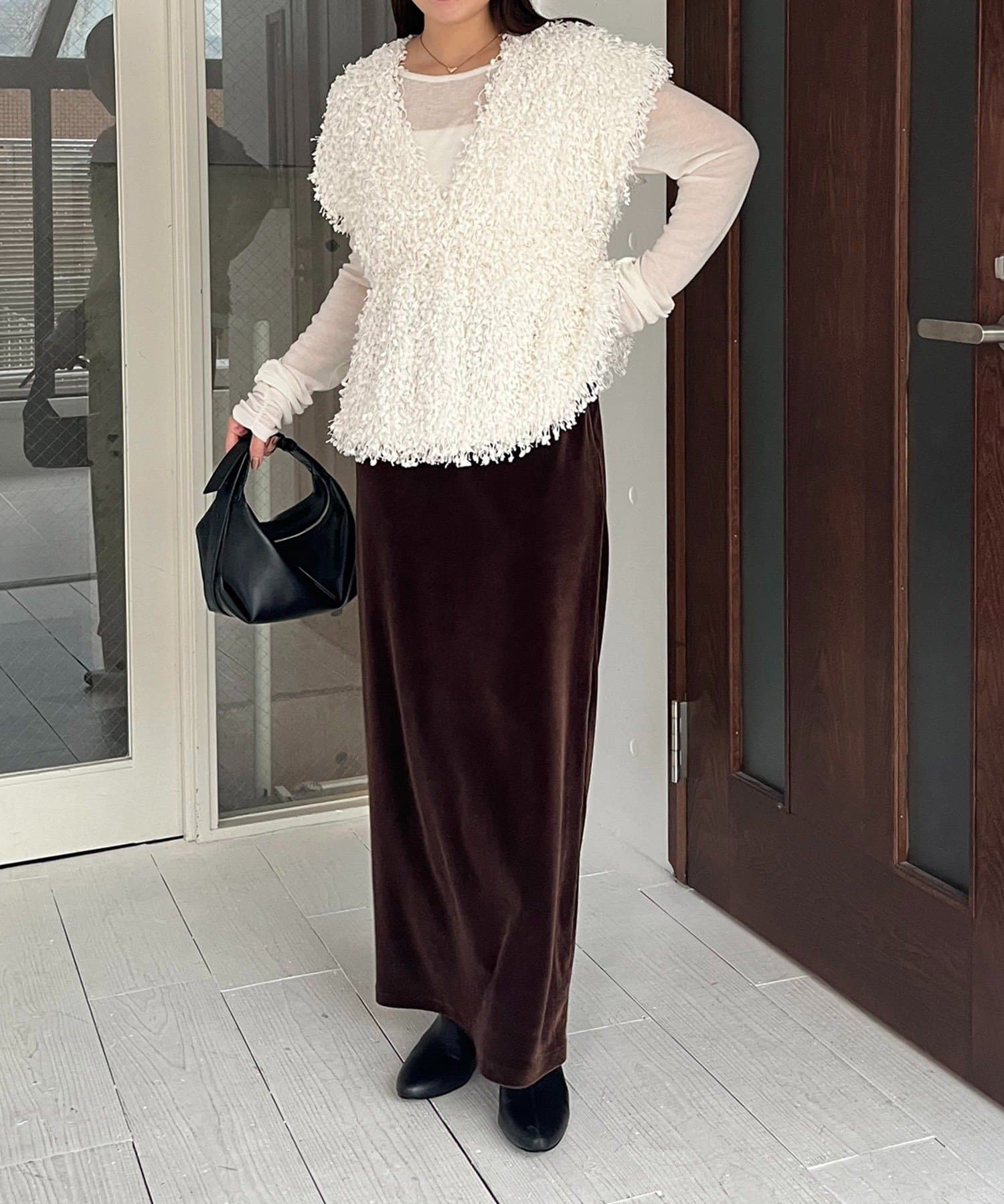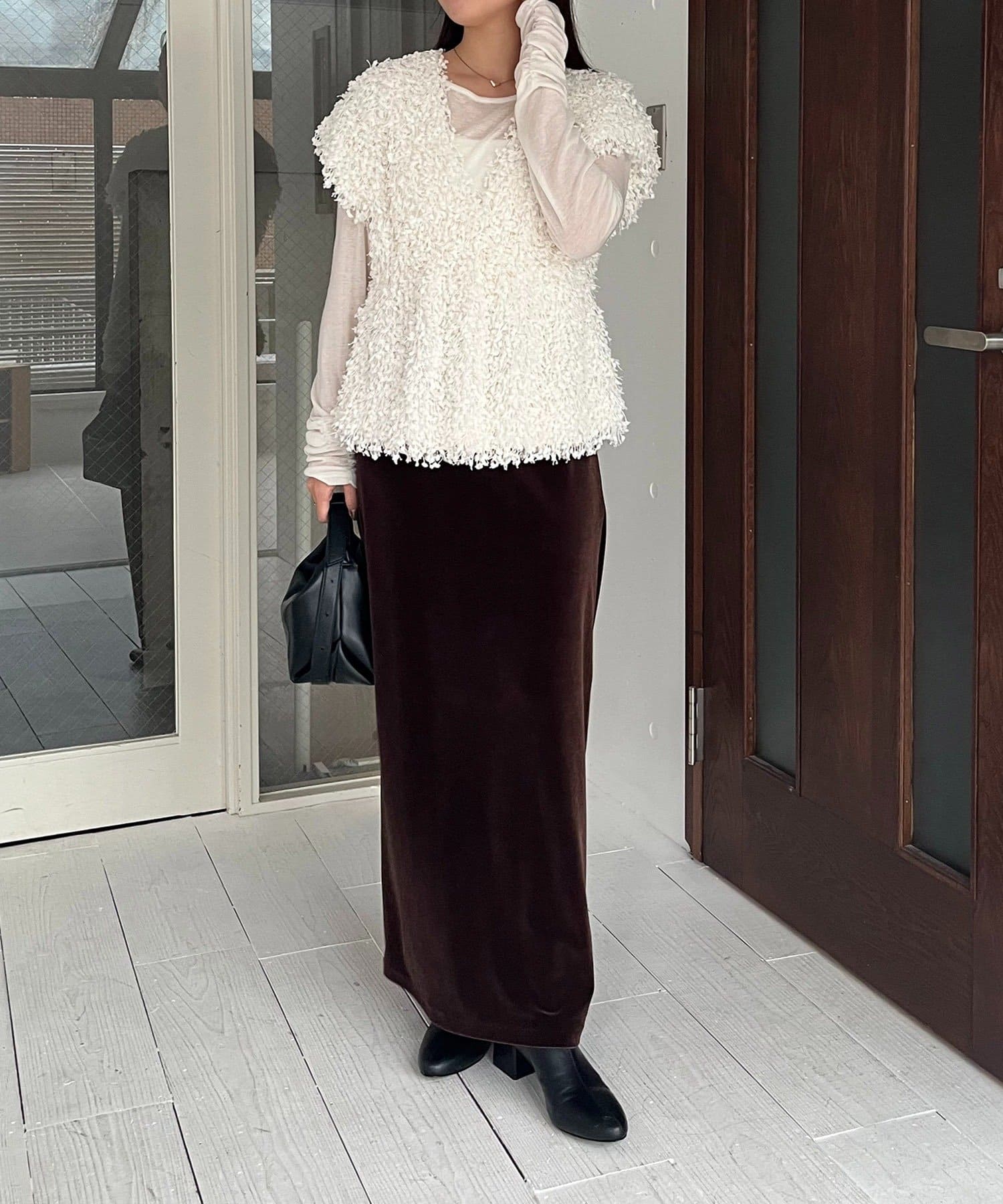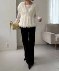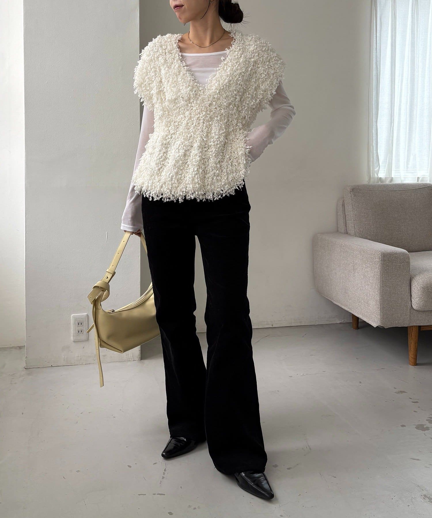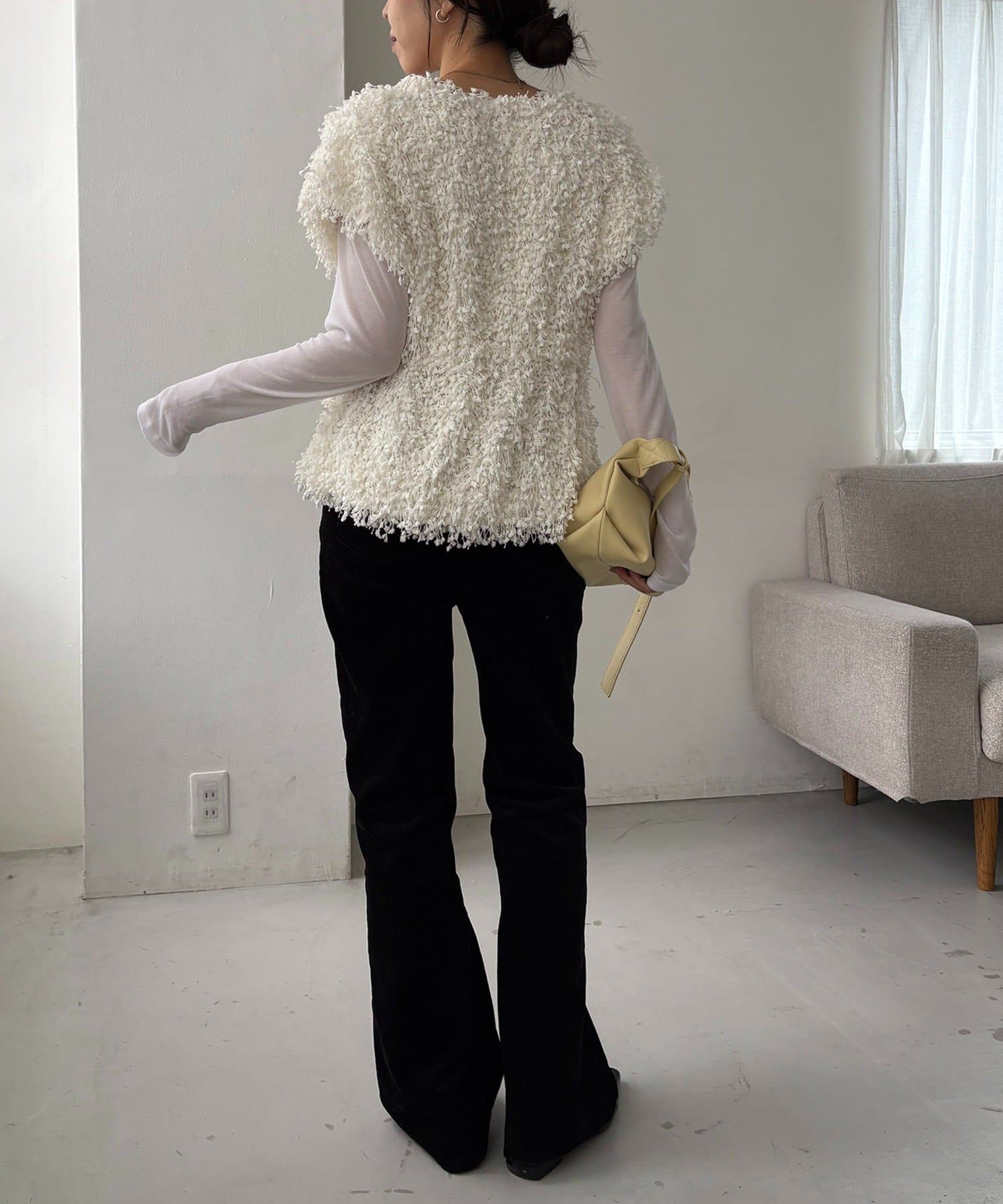凹凸感のあるフリンジ素材が華やかな印象のトップス