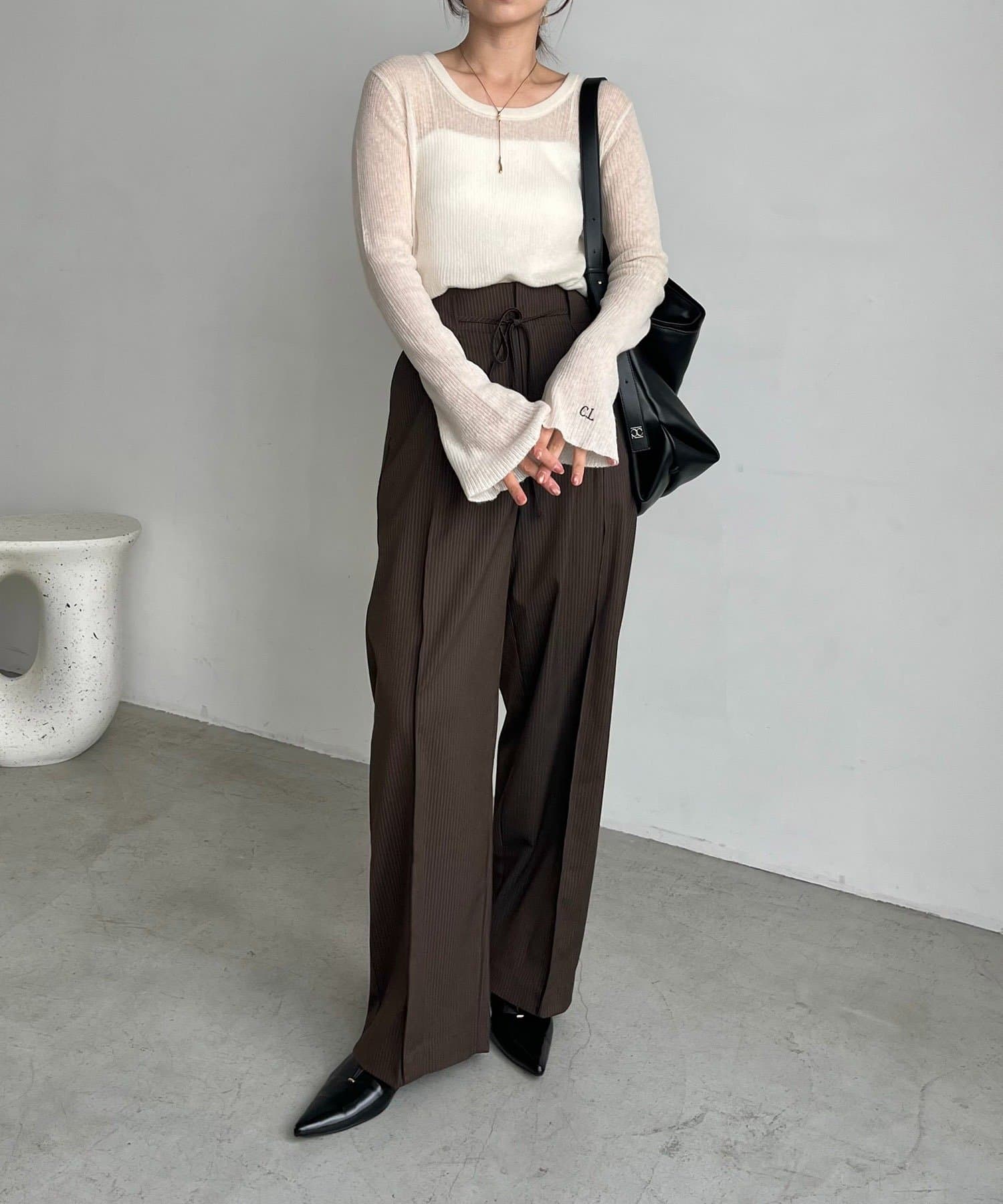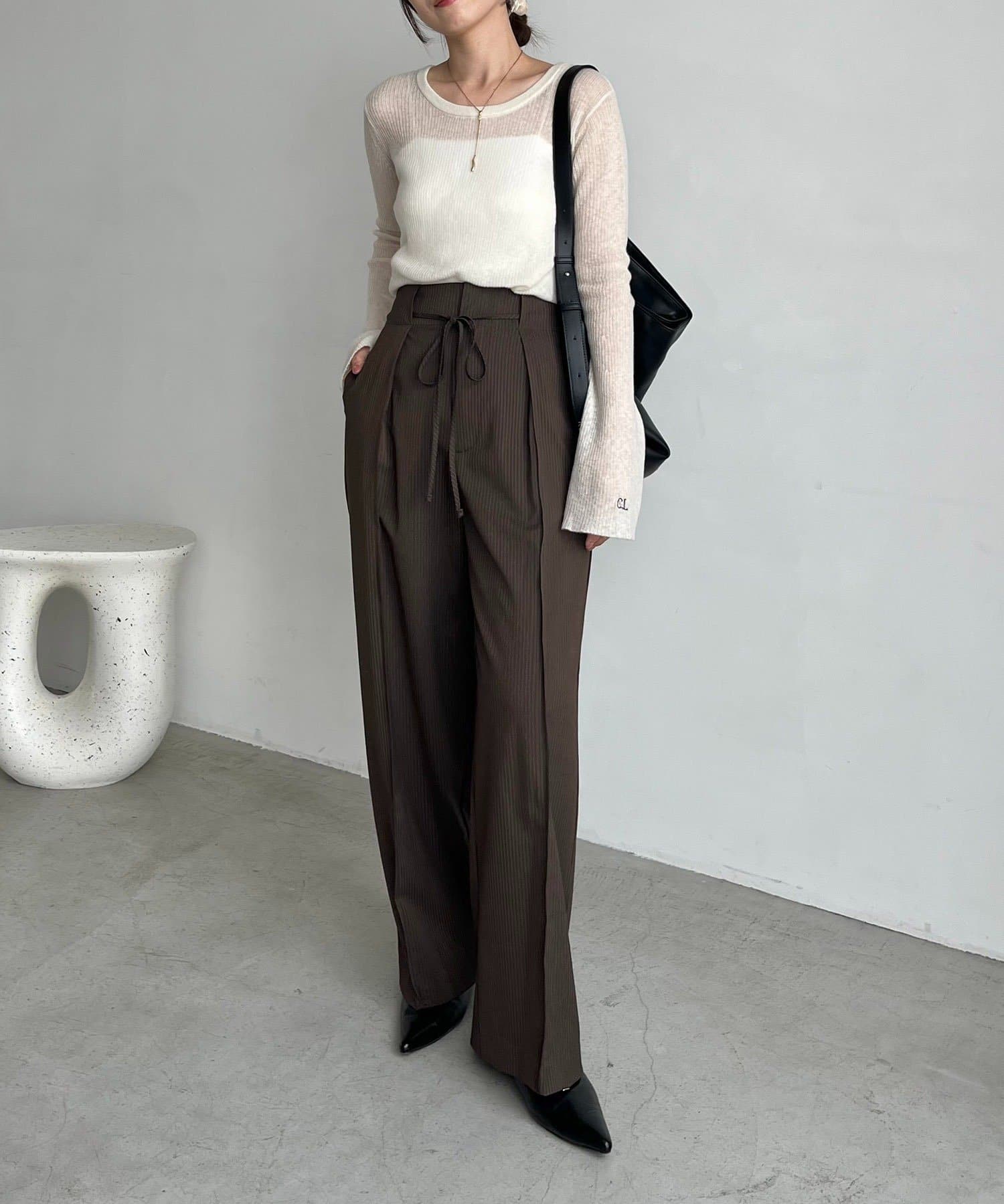 【エクリュ着用アイテム】ウエストリボンストライプパンツ
