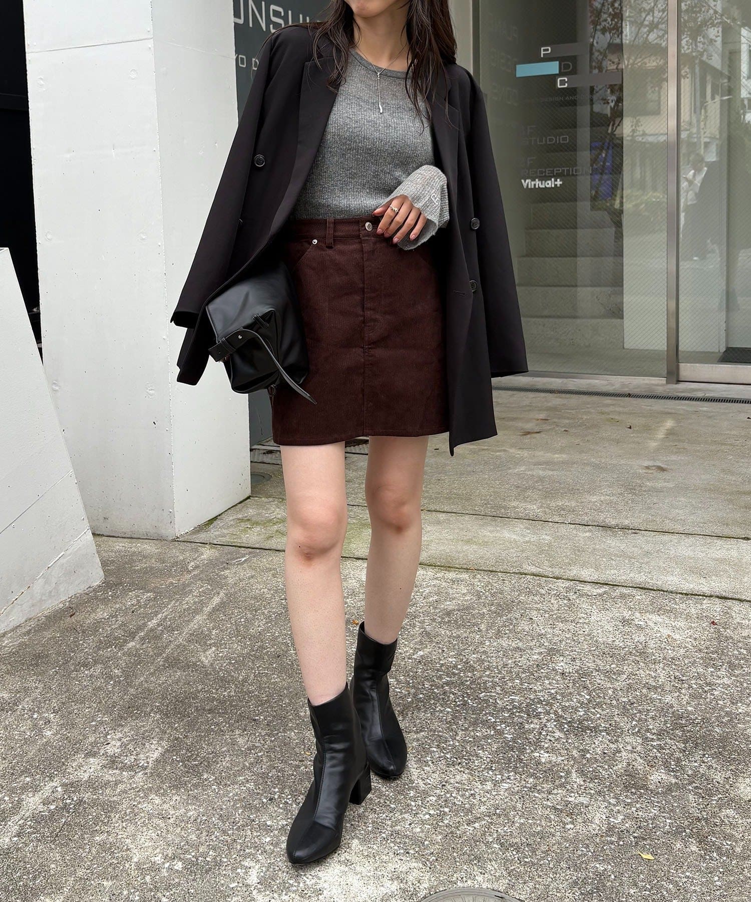 【グレー着用アイテム②】Wテーラージャケット、コーデュロイ台形スカート