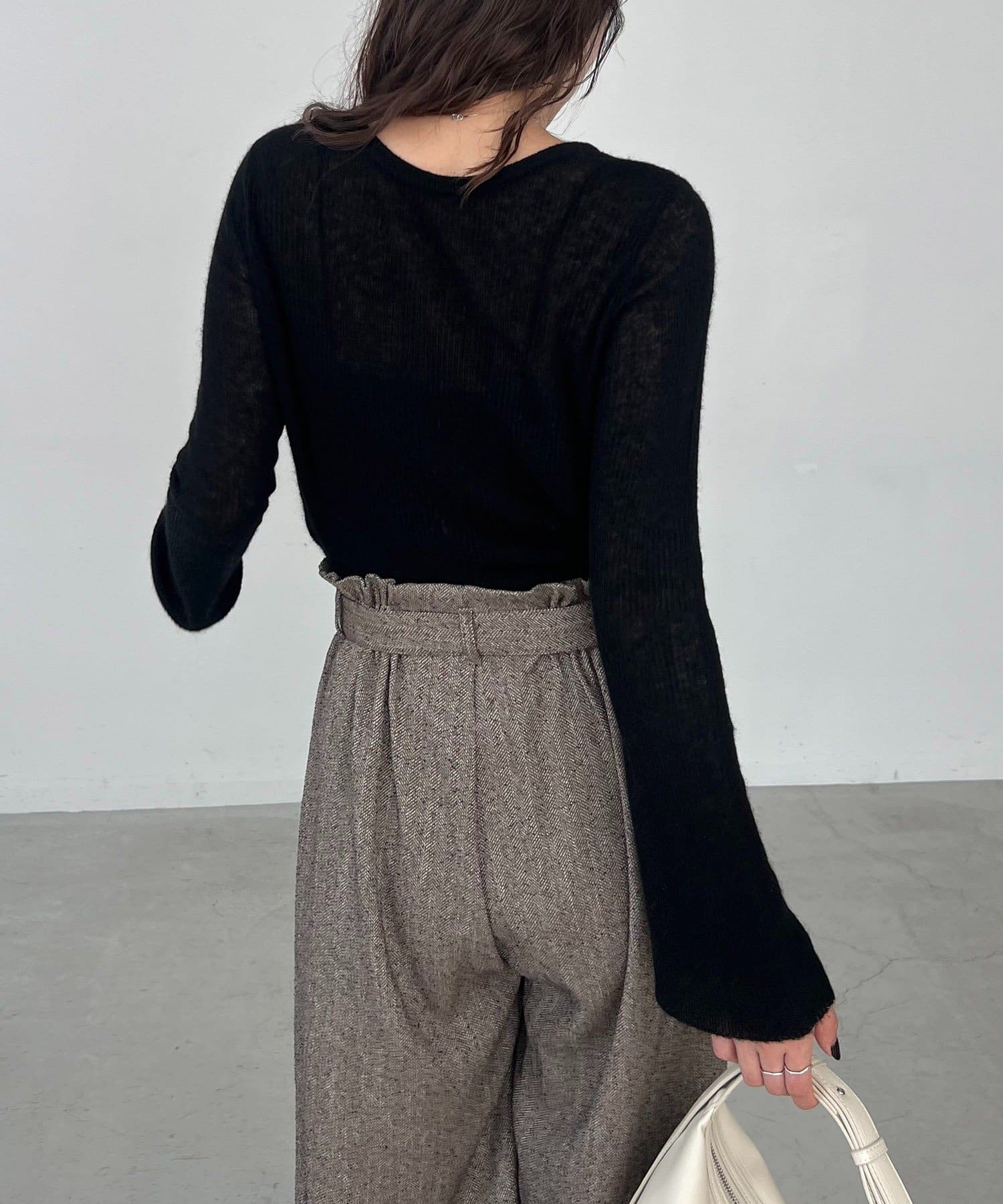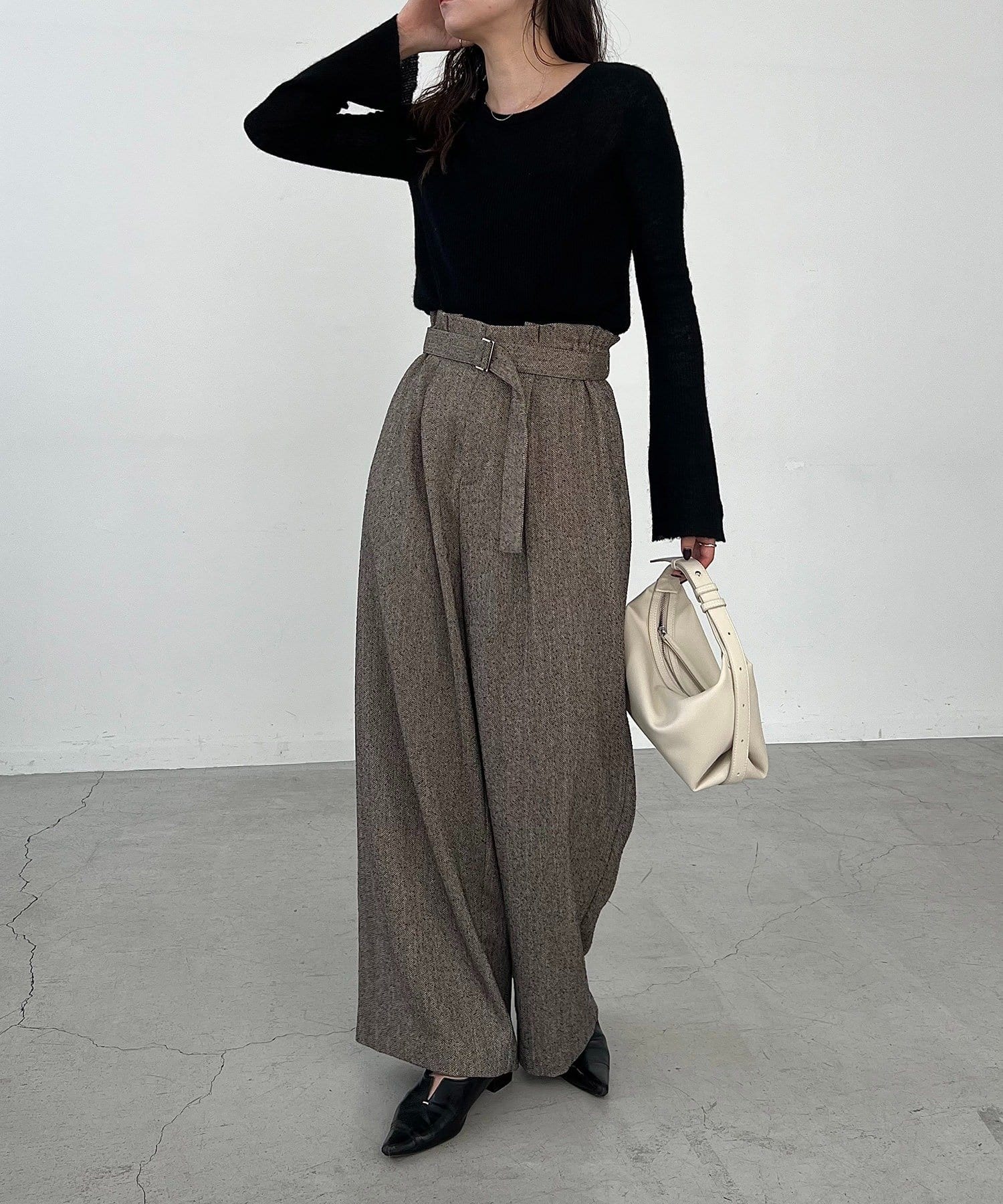 ・ワイドシルエットのボトムと合わせてメリハリのあるスタイリングに