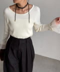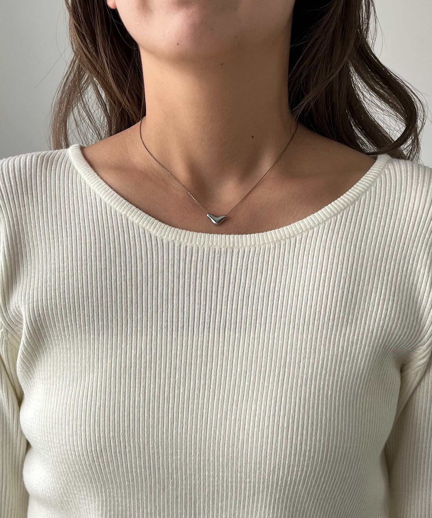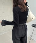 ・すっきりとしたリブニットでインナーとしても着やすいサイズ感