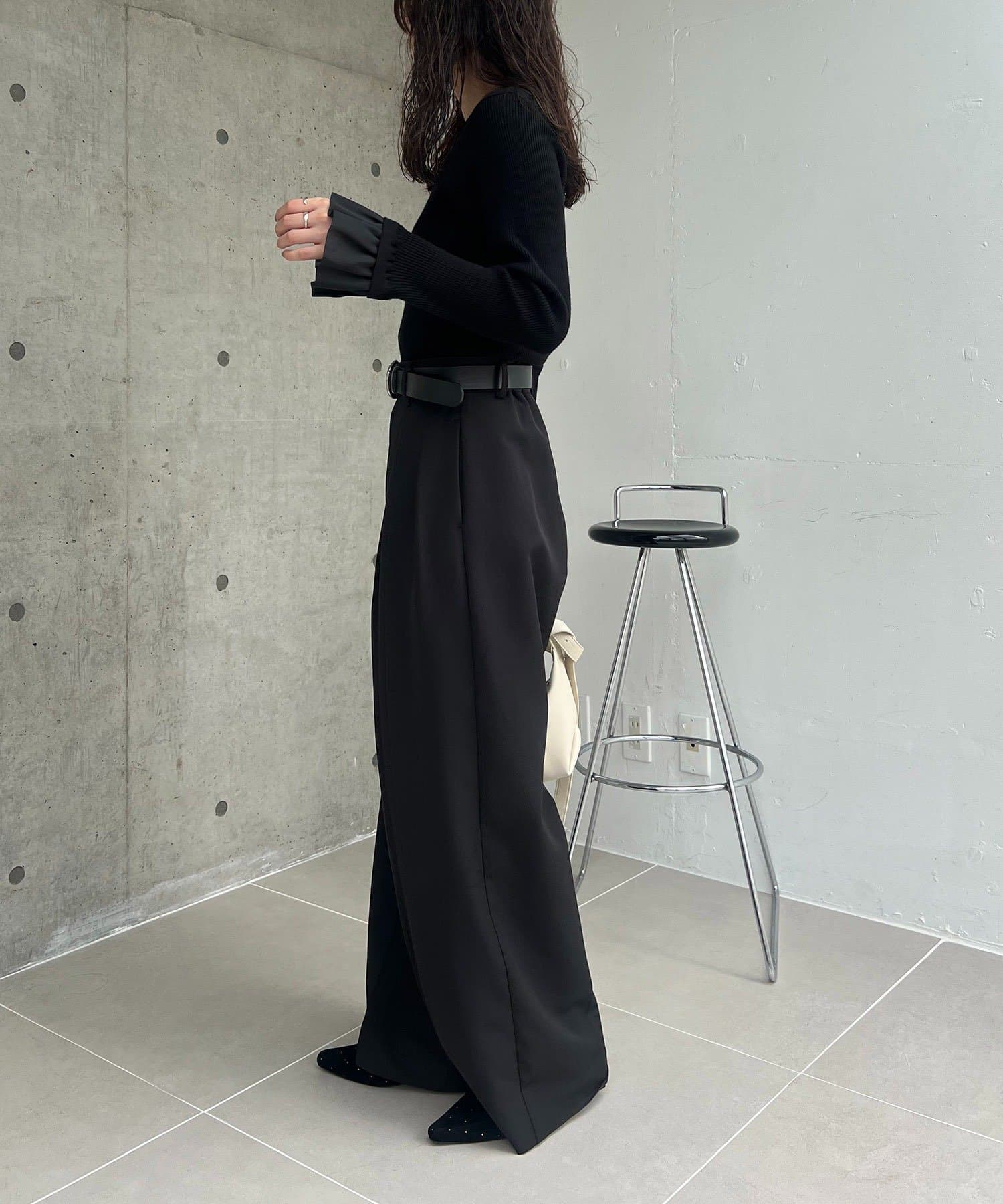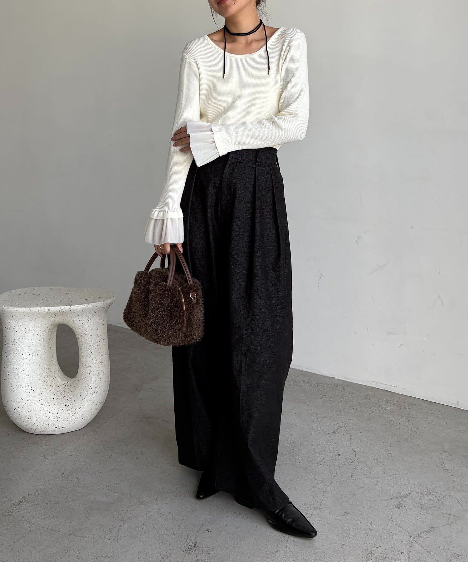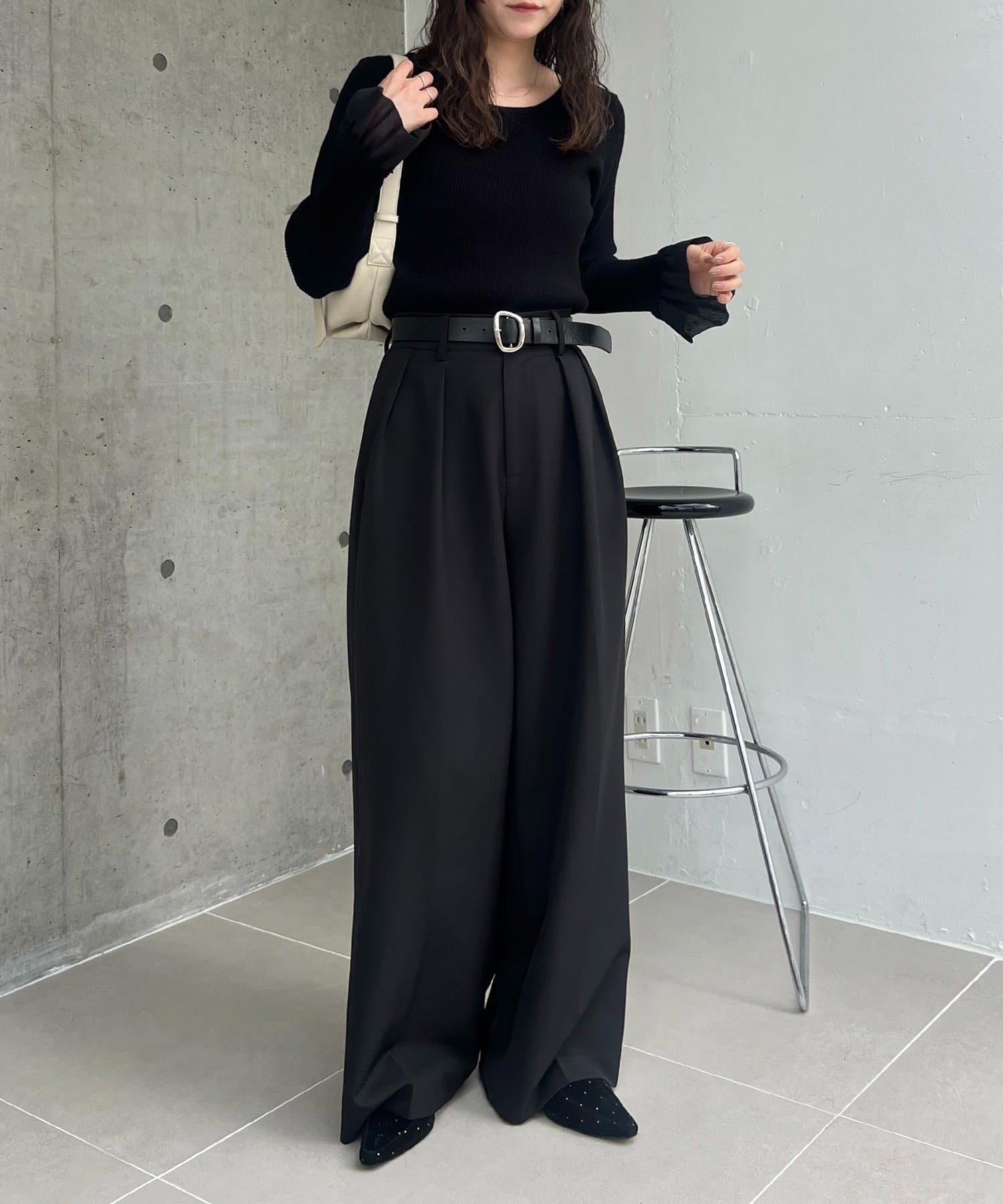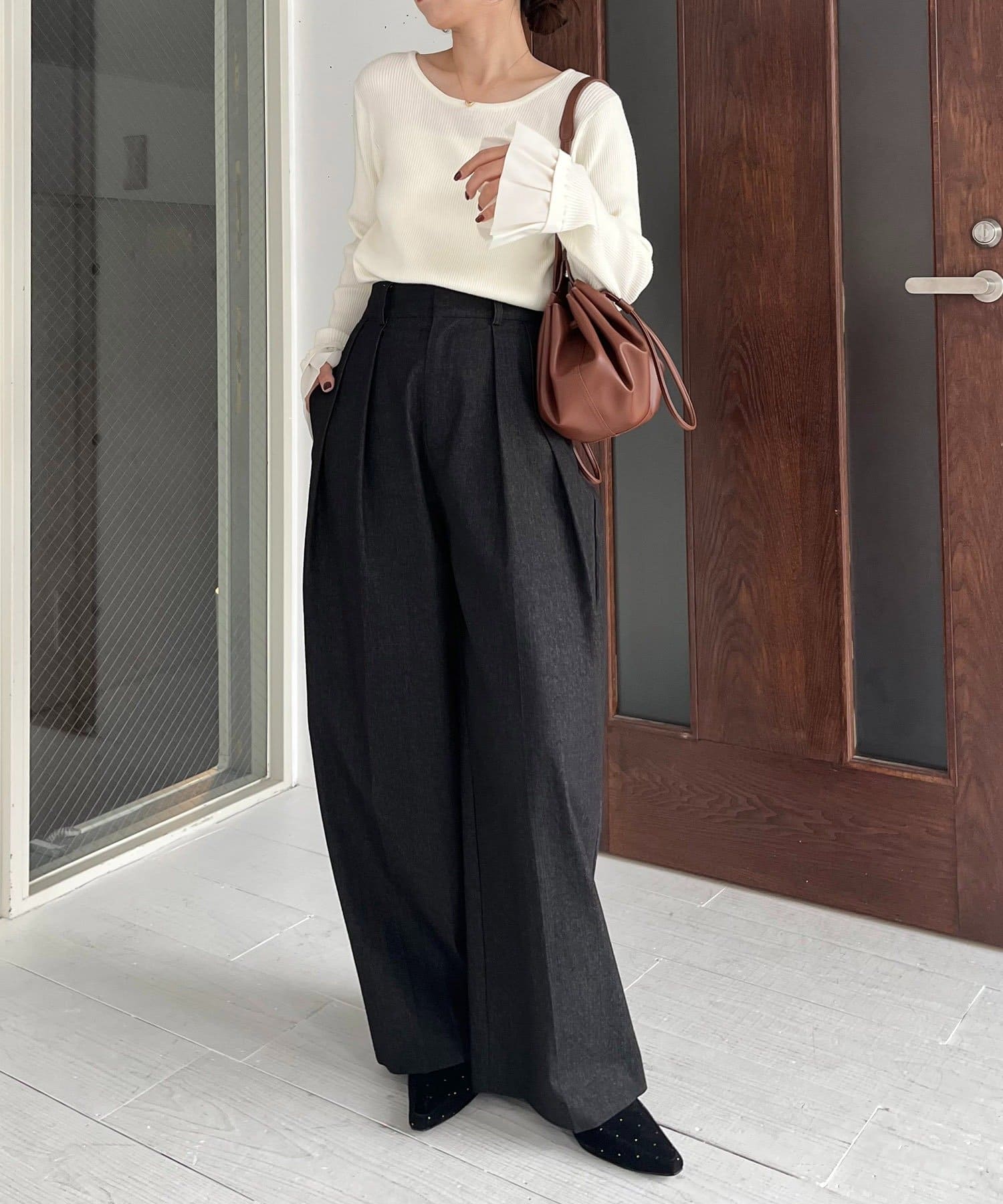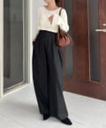 ・ワイドパンツに合わせてメリハリのあるスタイリングに