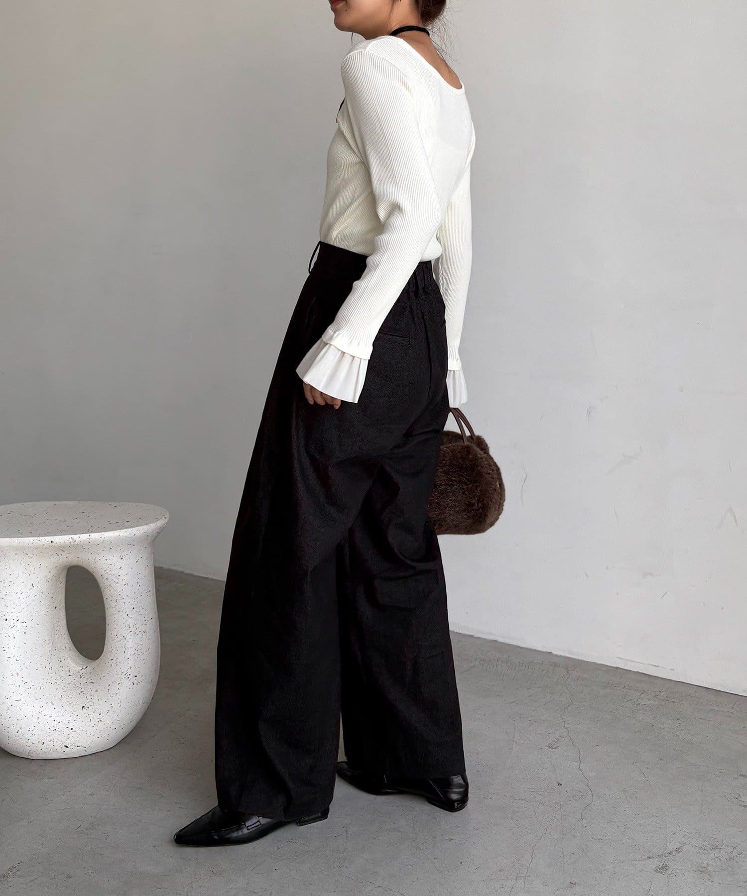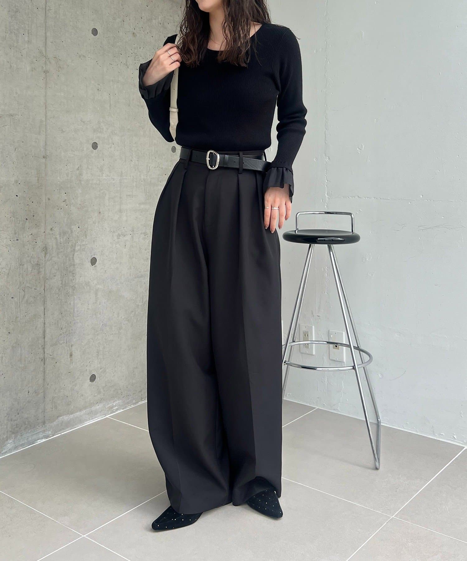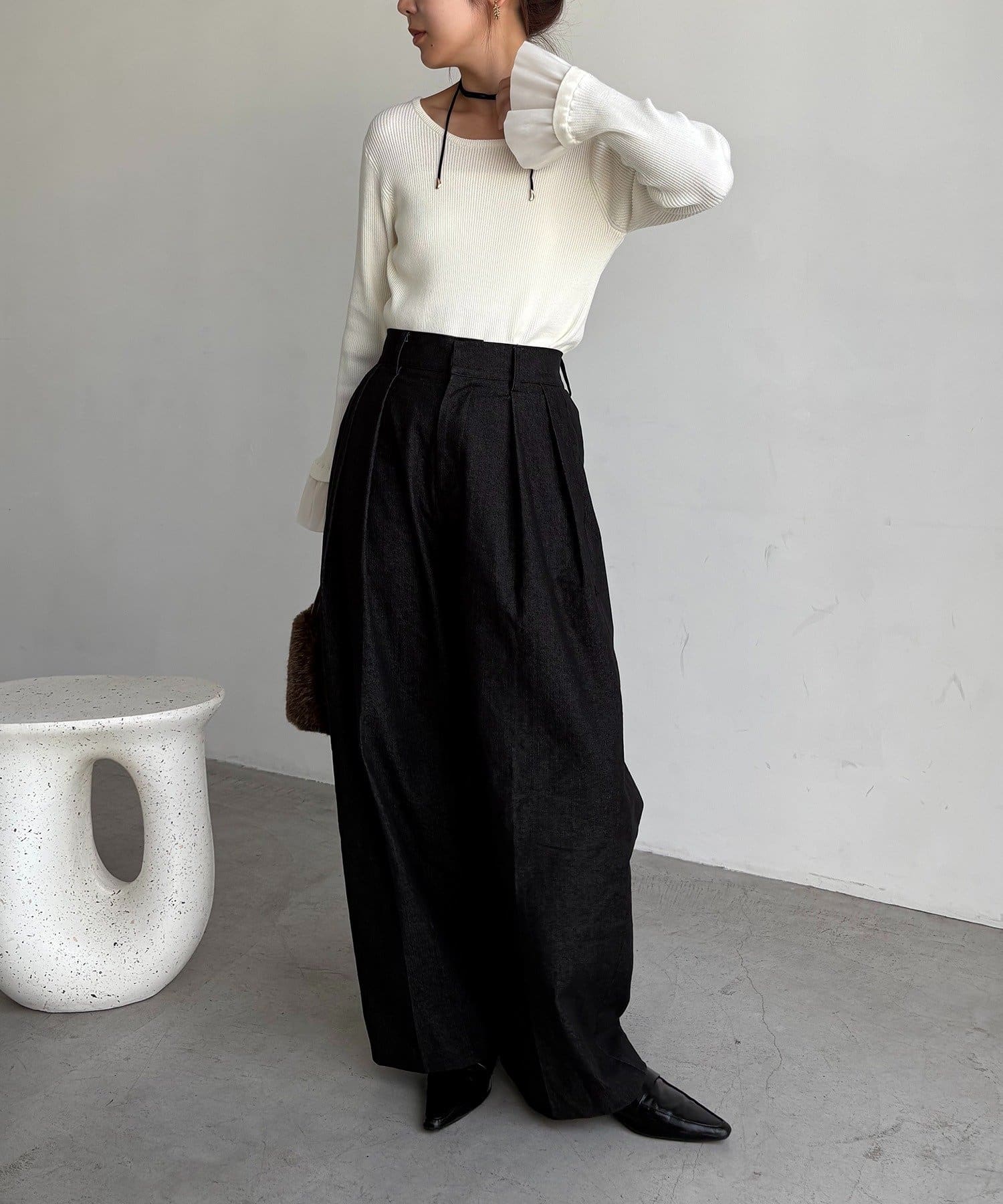 ・ワイドパンツに合わせてメリハリのあるスタイリングに