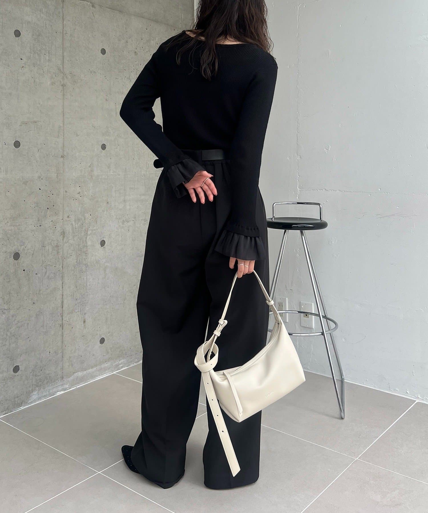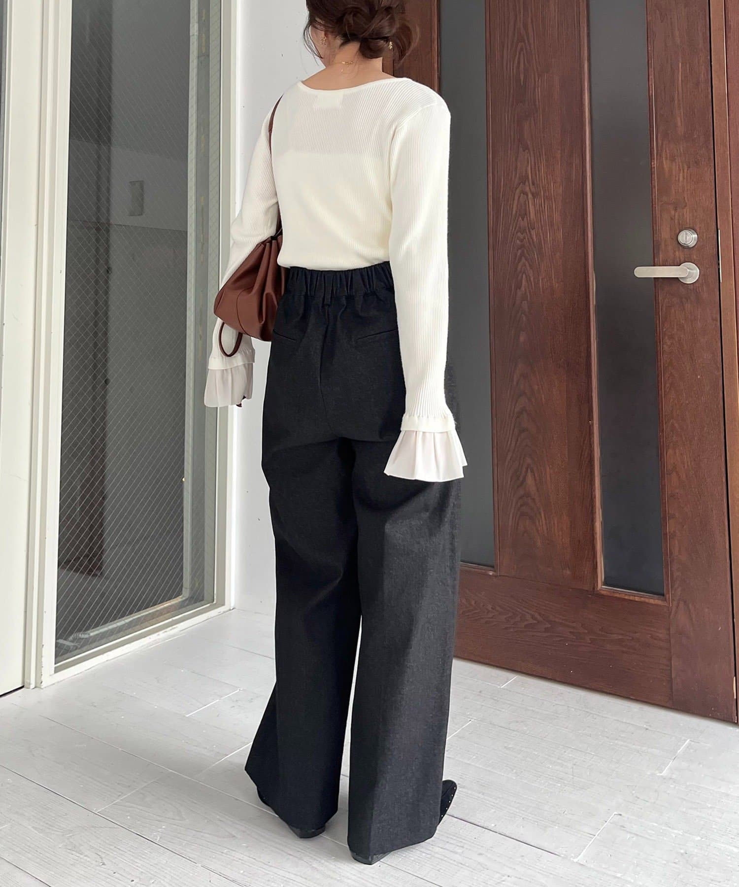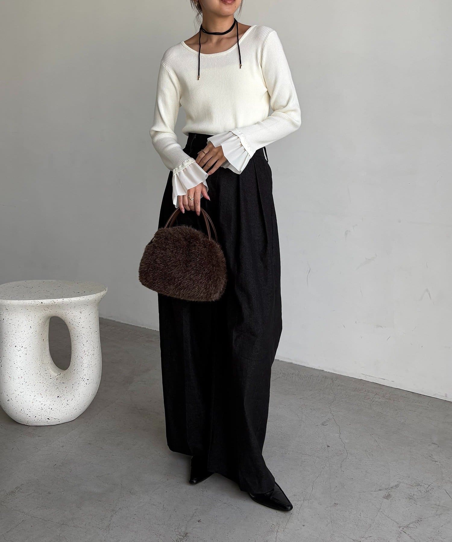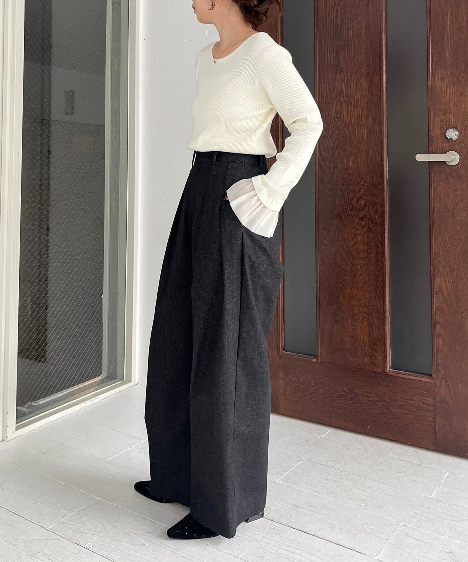 ・ワイドパンツに合わせてメリハリのあるスタイリングに