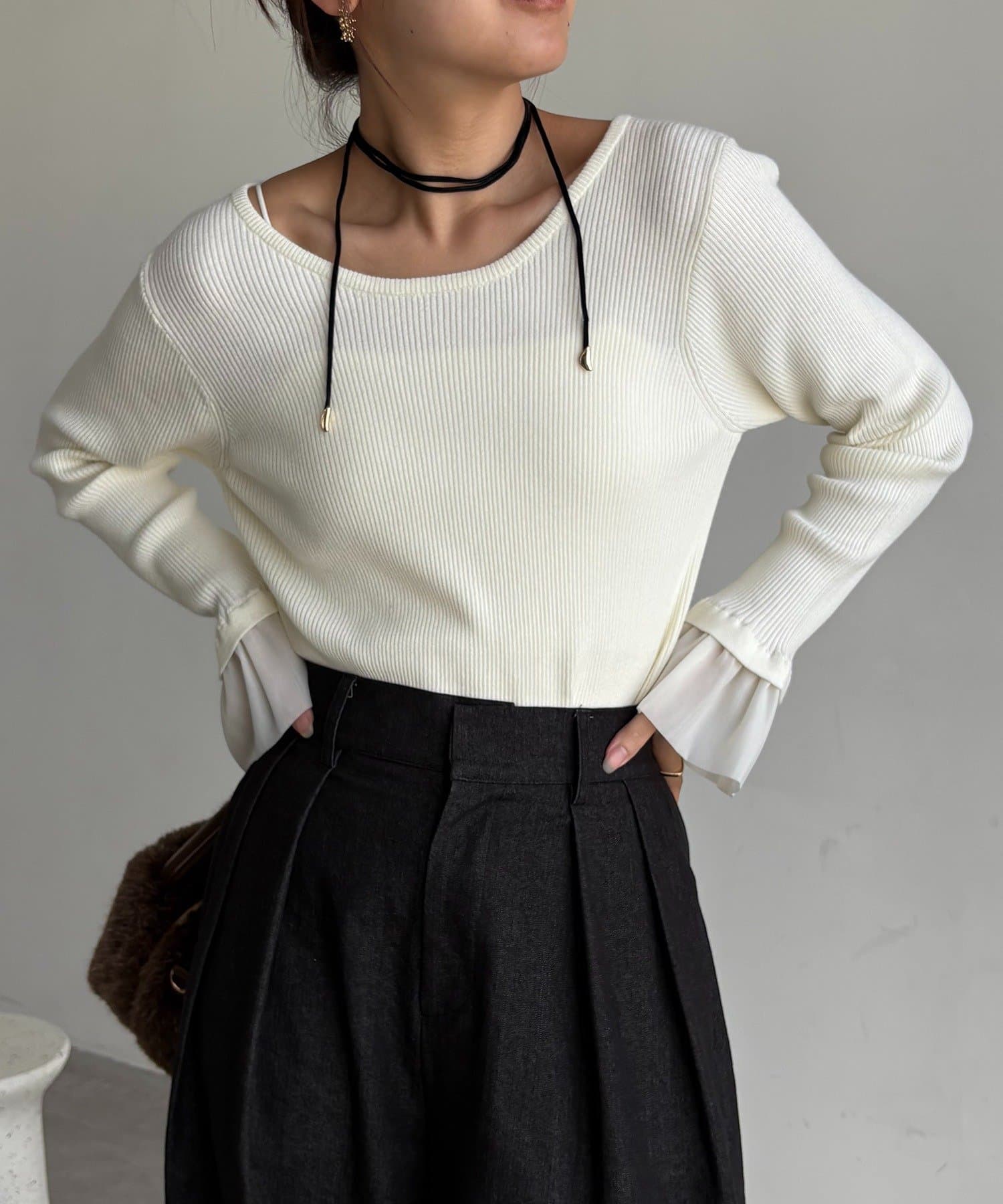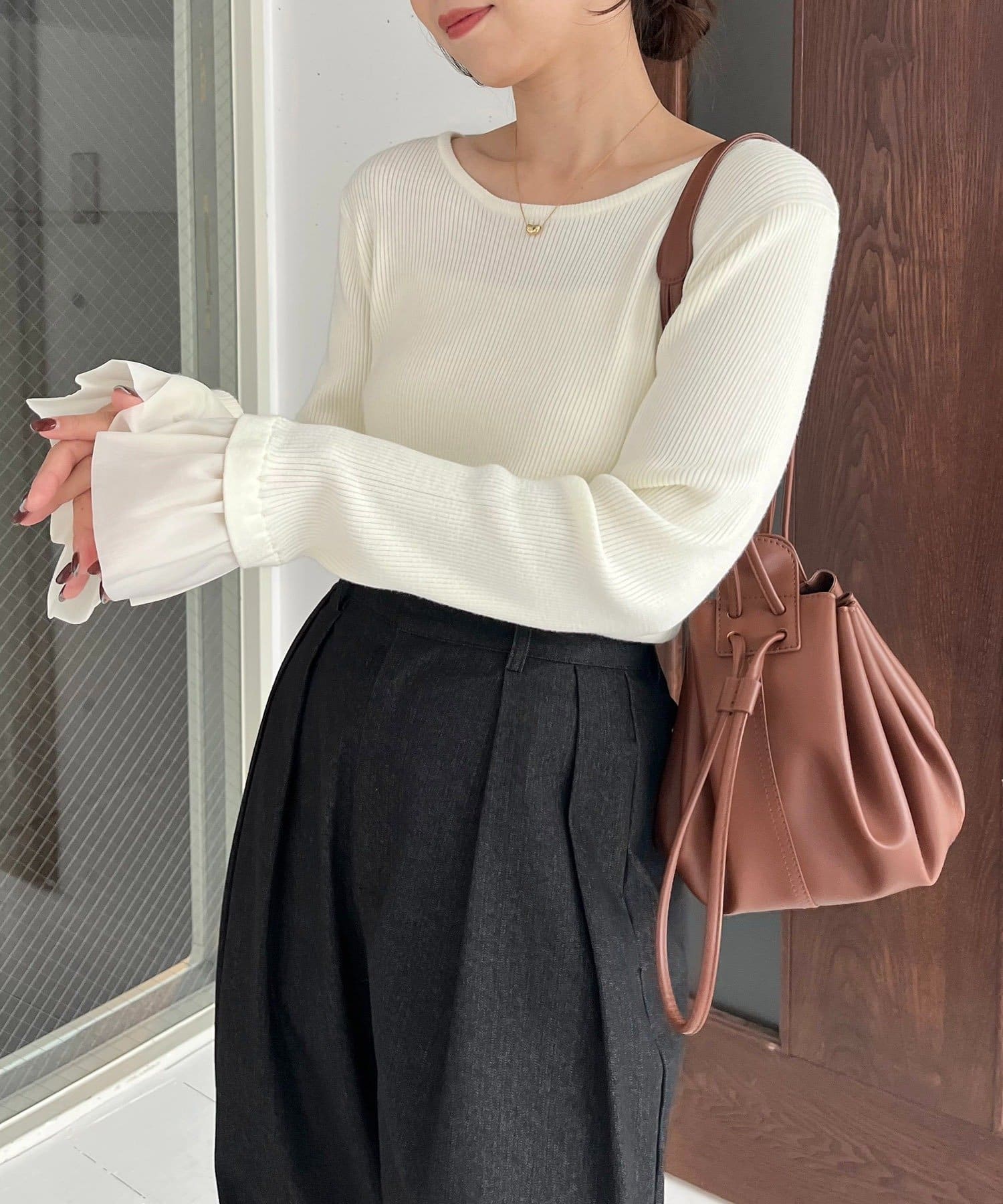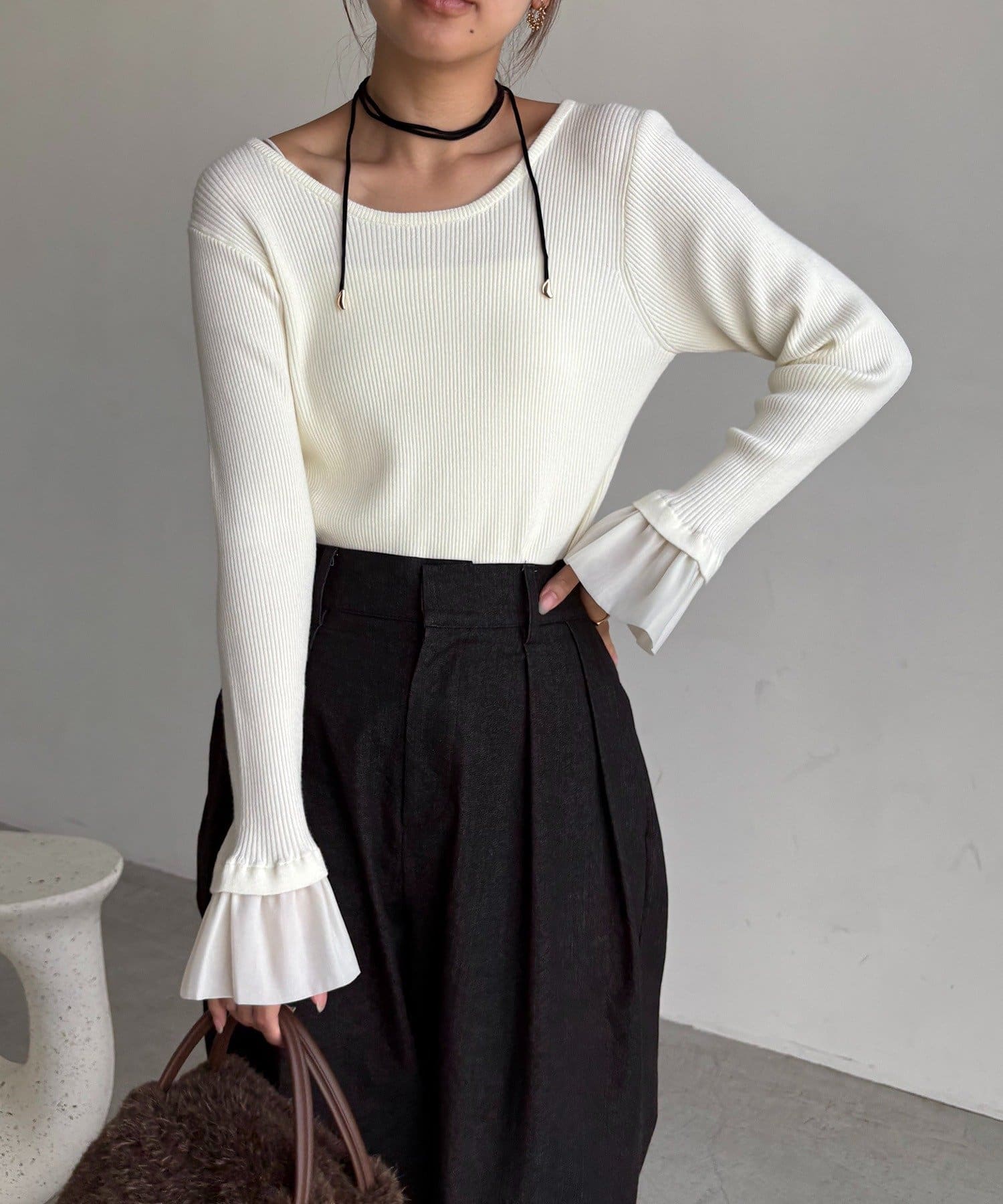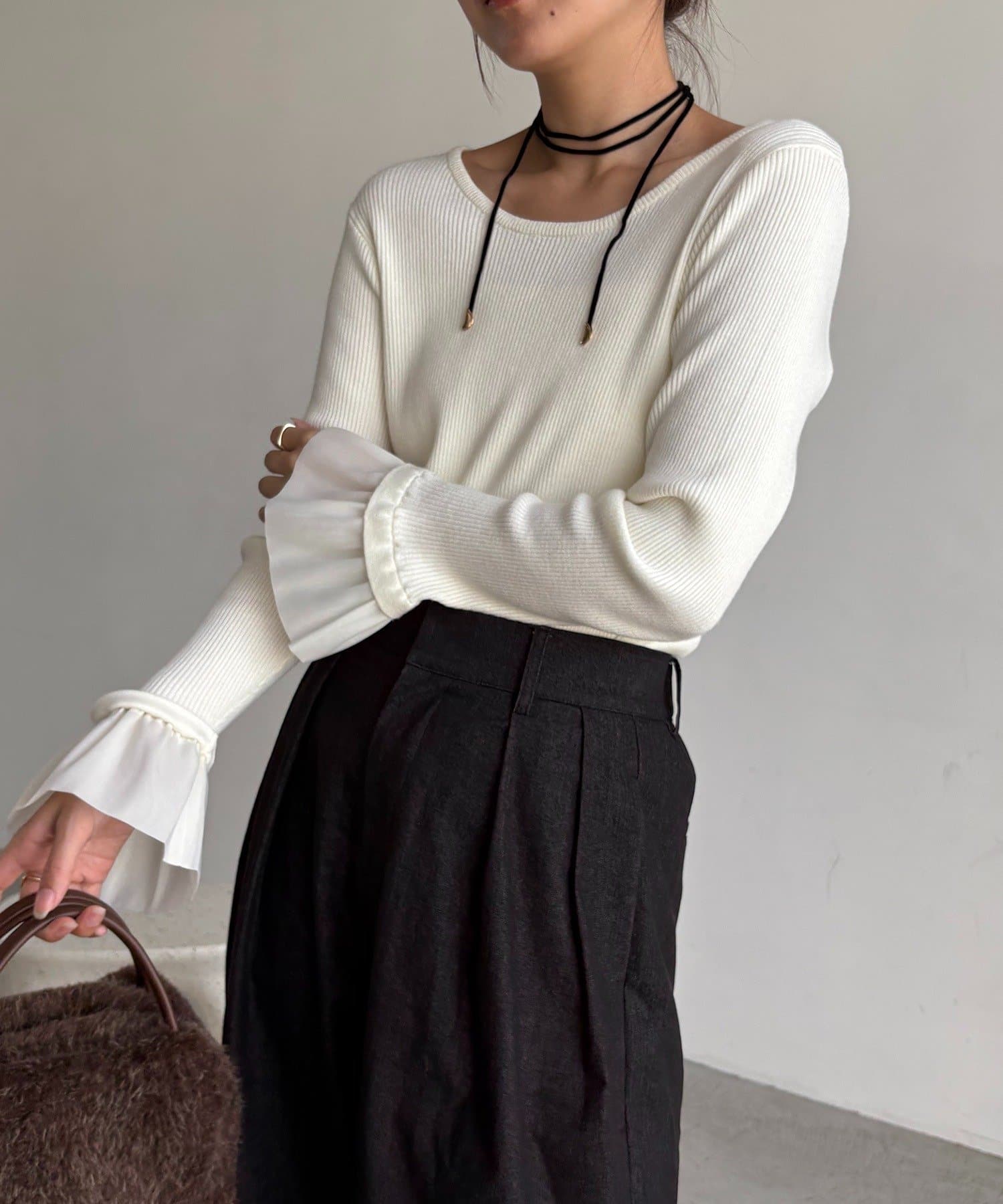 ・1枚着としてもジャケットやアウターの袖からフレア部分を見せるレイヤードコーデもおすすめ