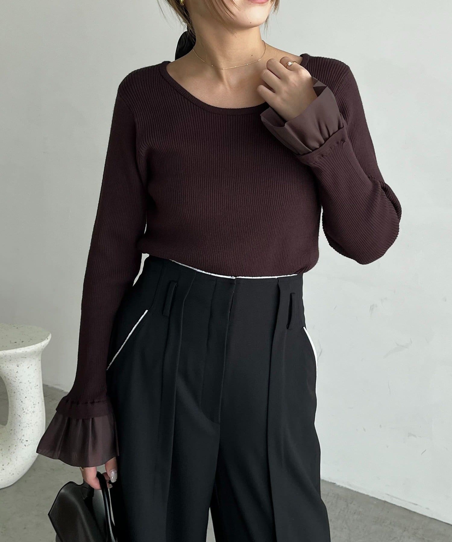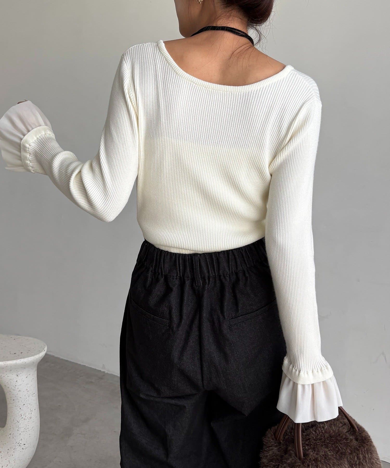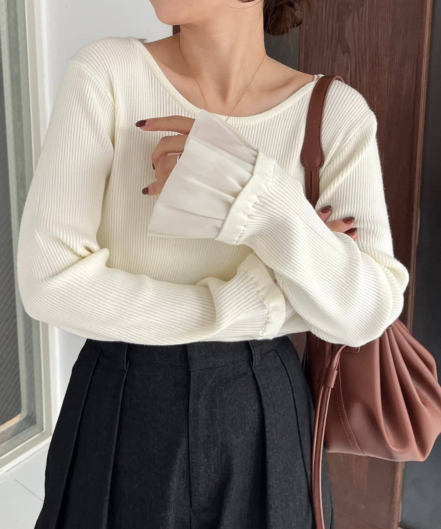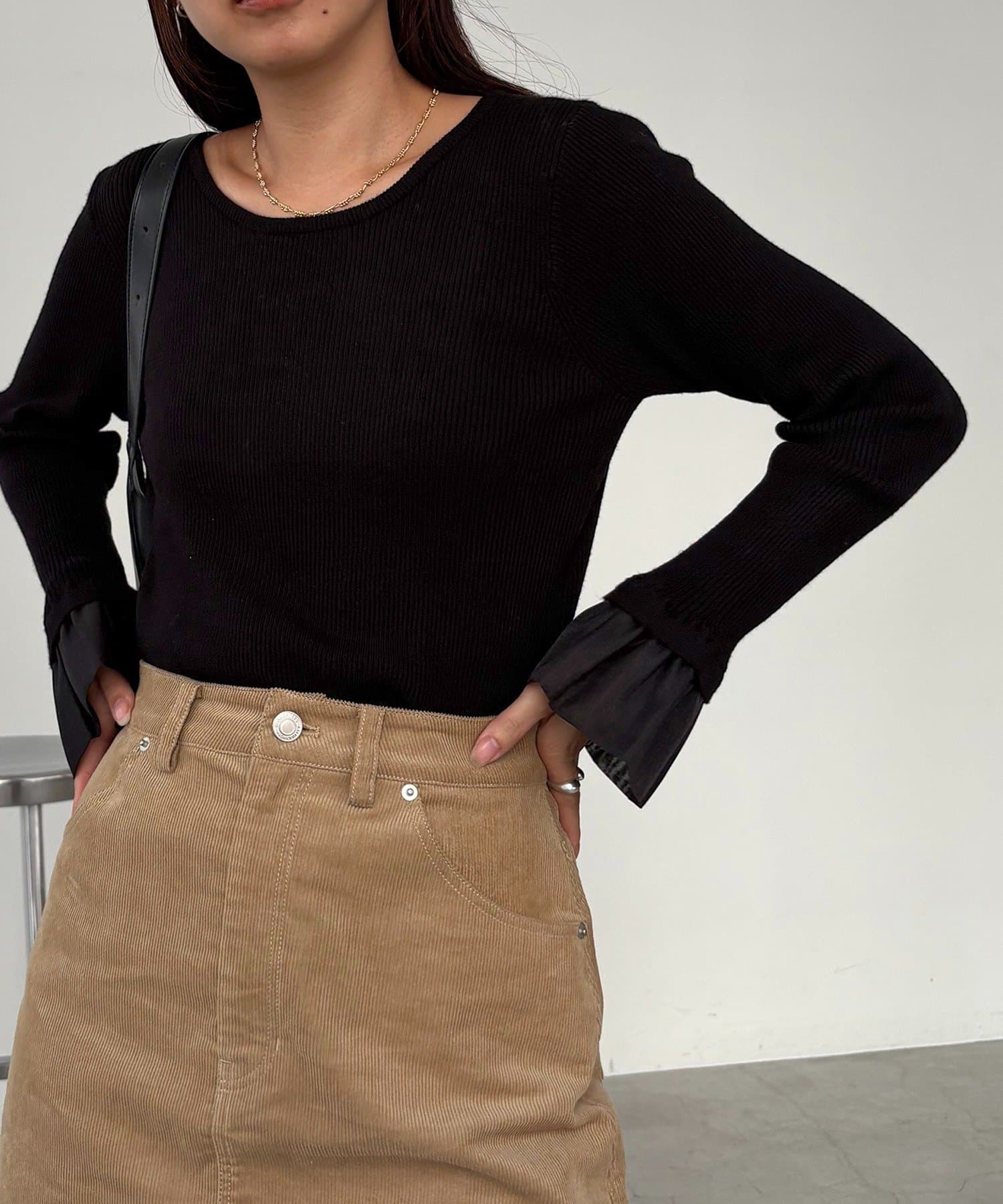 ・1枚着としてもジャケットやアウターの袖からフレア部分を見せるレイヤードコーデもおすすめ