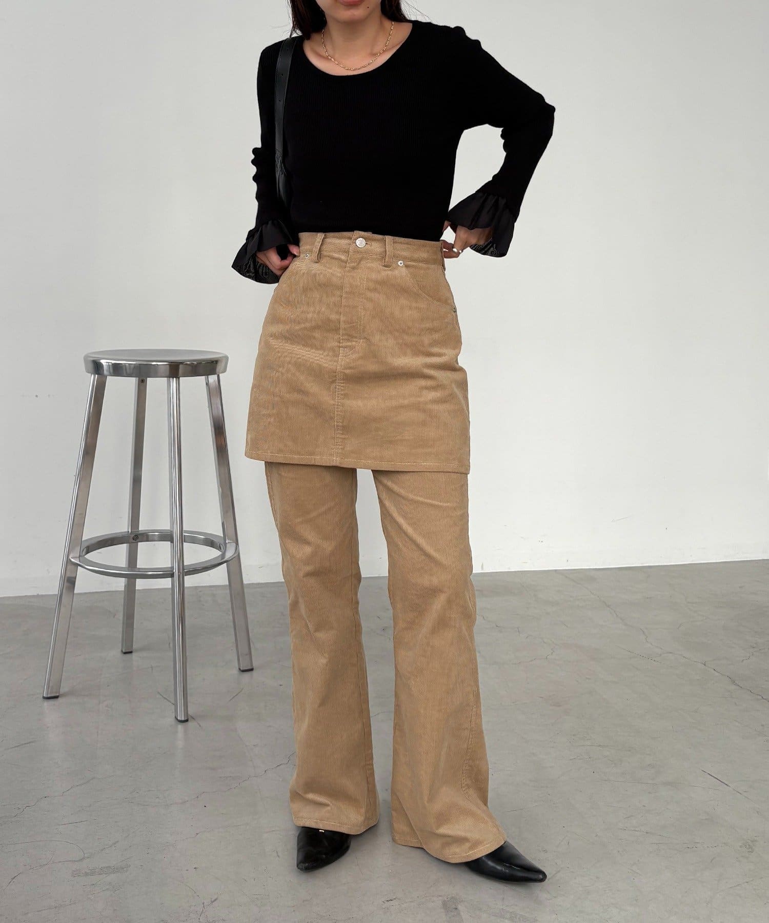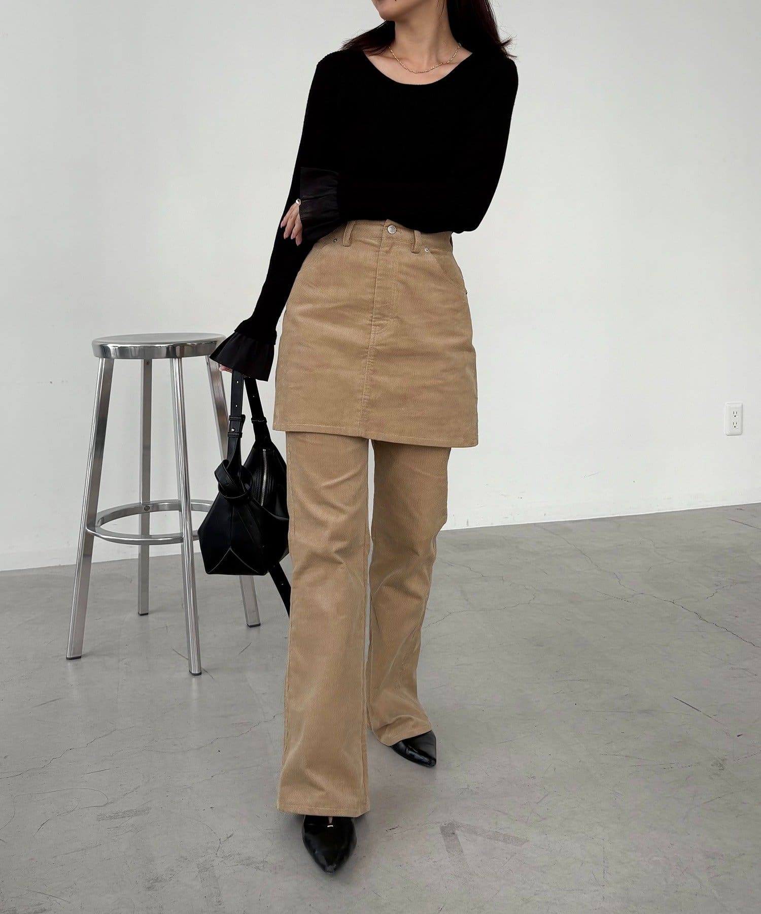 【ブラック着用アイテム②】コーデュロイ台形スカート・コーデュロイフレアパンツ