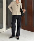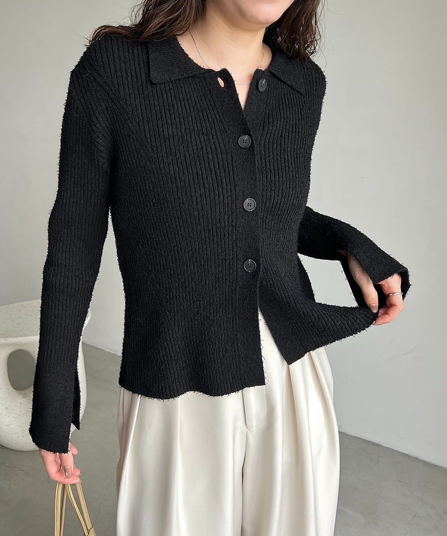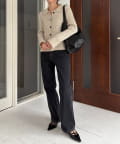 ・裾のボタンを控えており、裾がスリットになることで抜け感をプラス