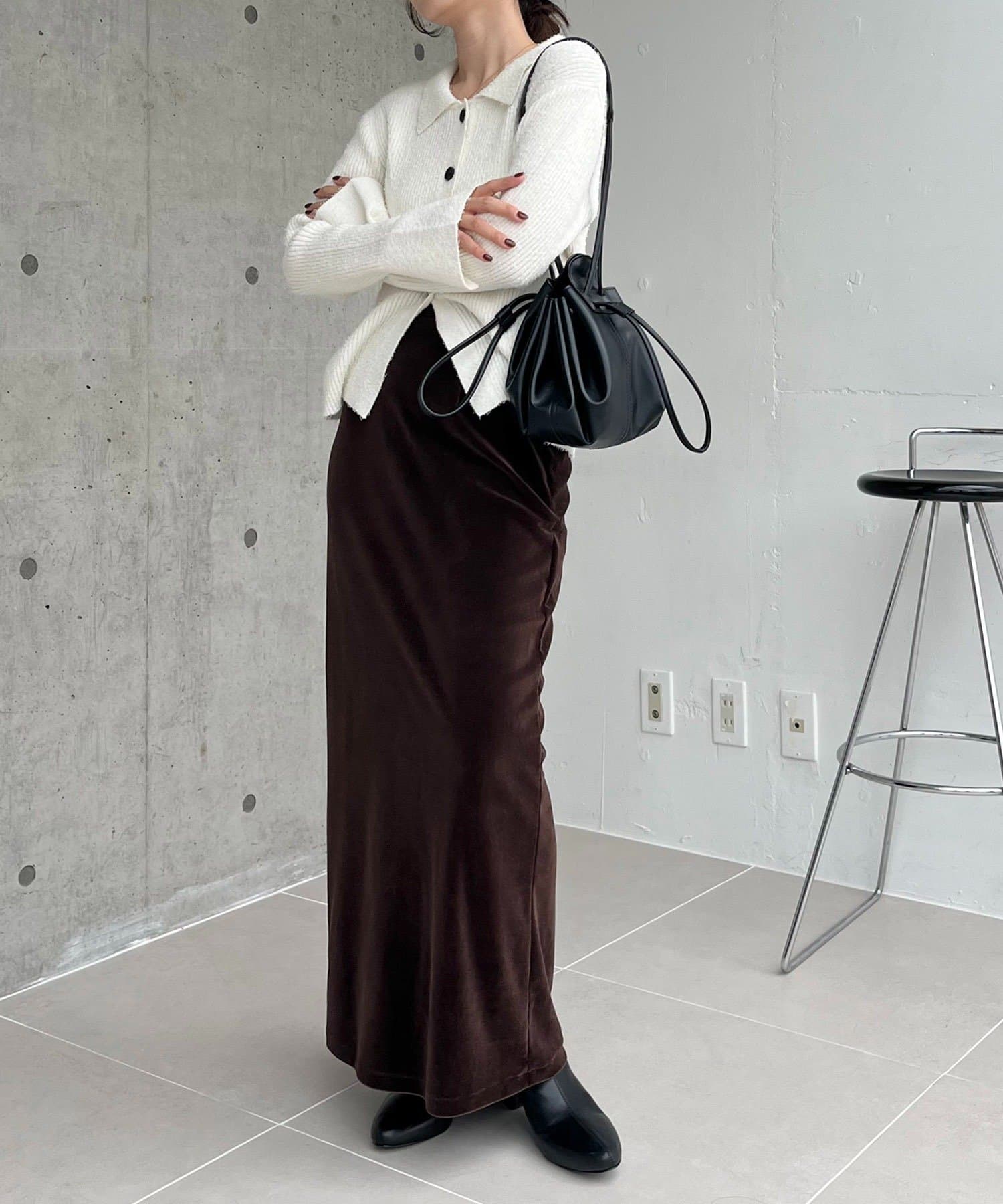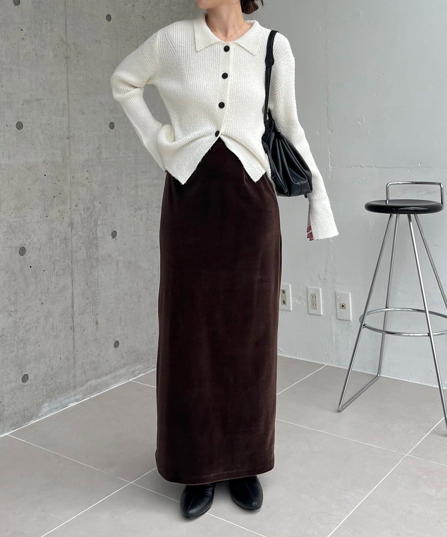【オフホワイト着用アイテム】ベロアIラインスカート