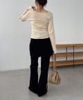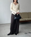 【ライトベージュ着用アイテム②】skirt:コーデュロイ台形スカート、pants:コーデュロイフレアパンツ
