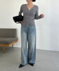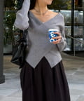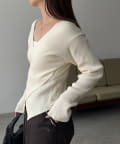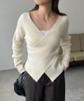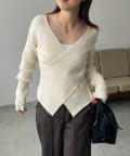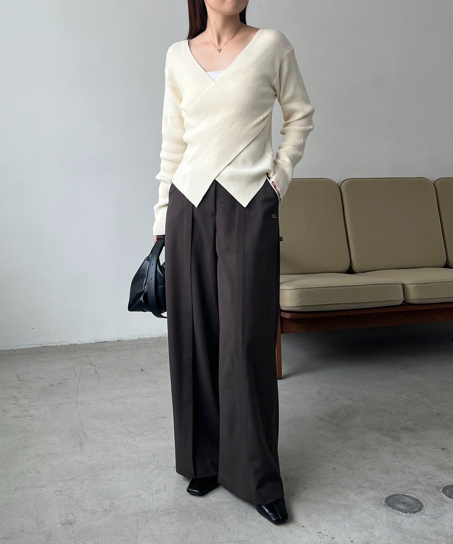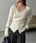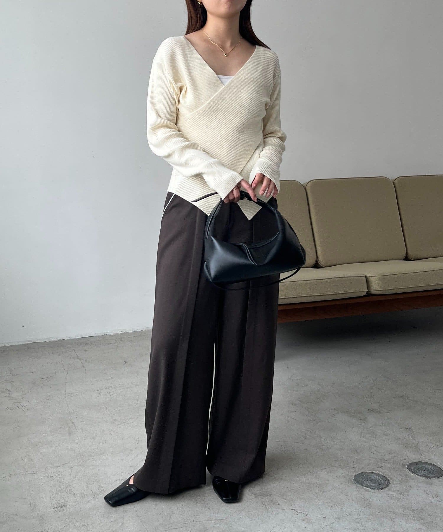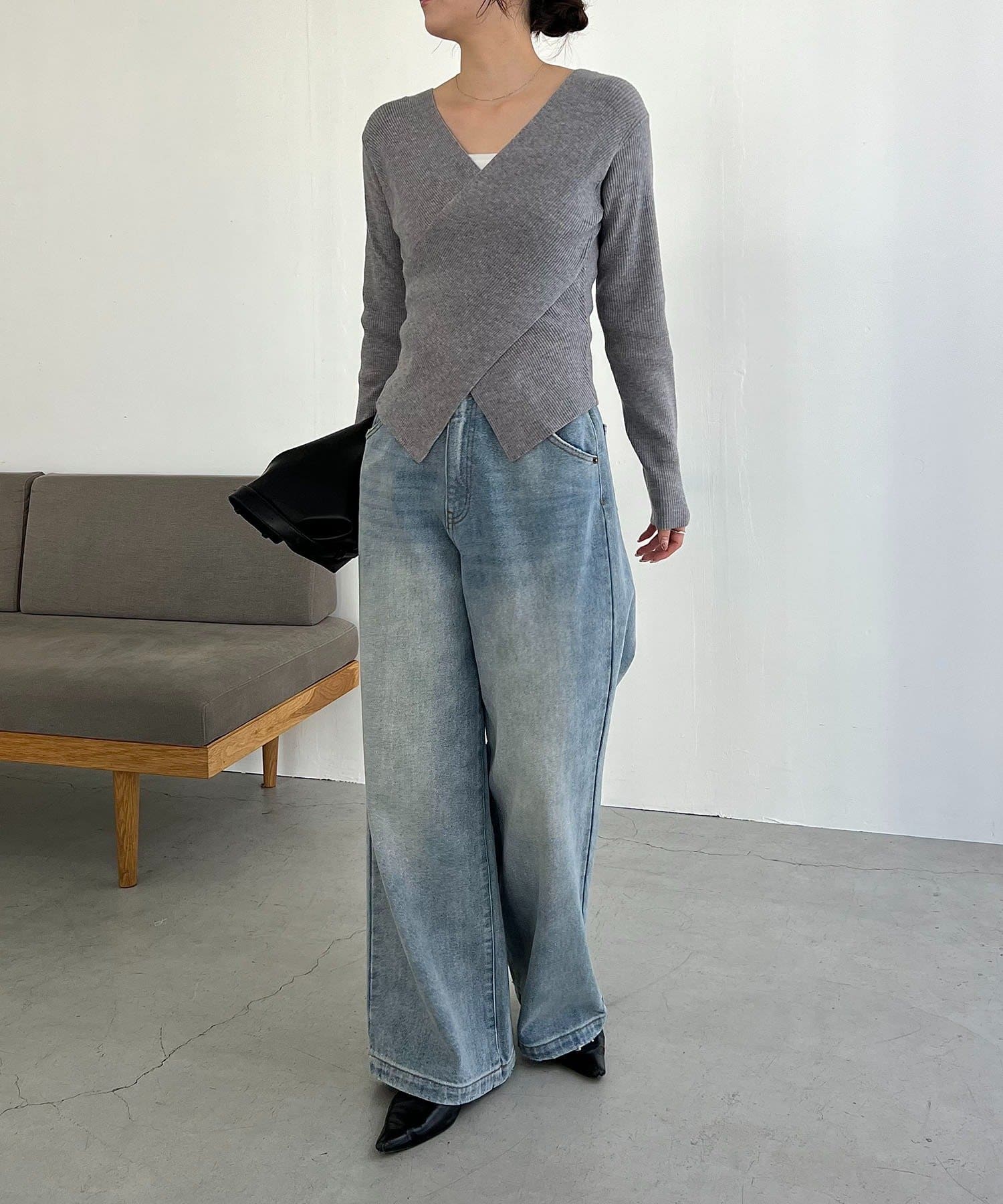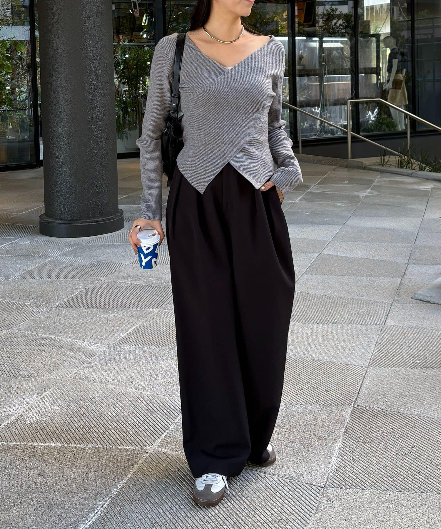 【新色/ライトベージュ・グレー】クロスVネックニット