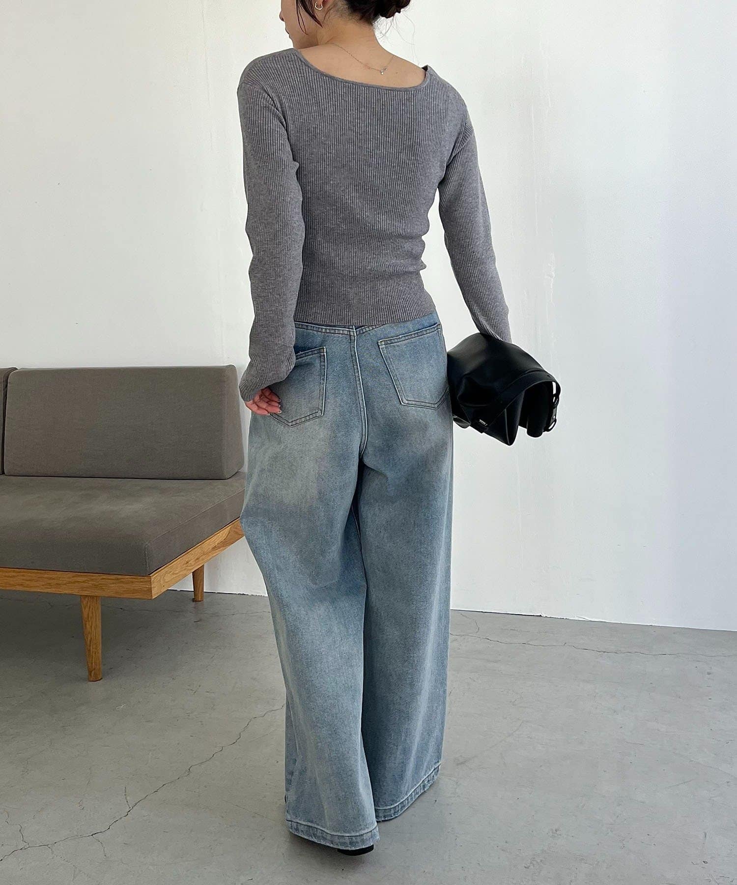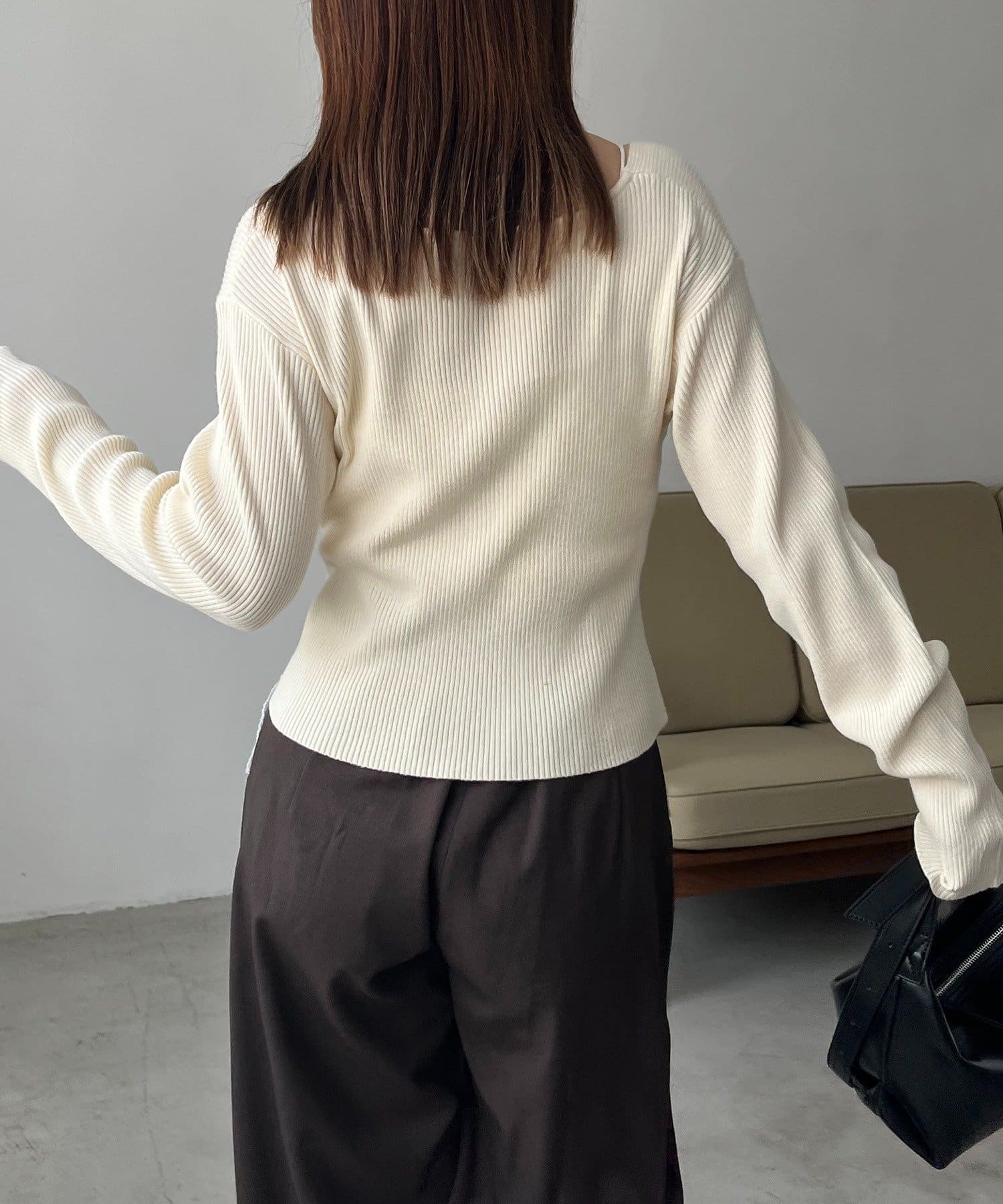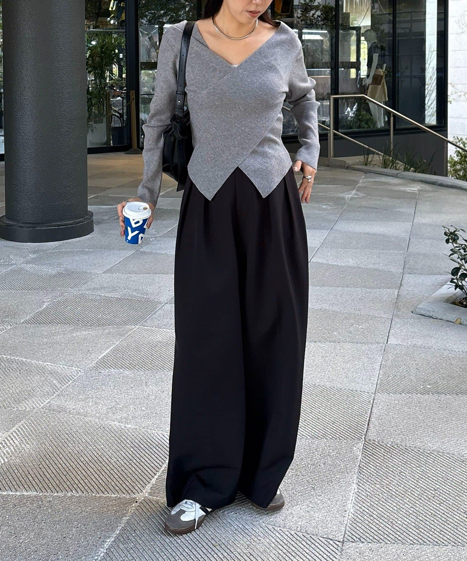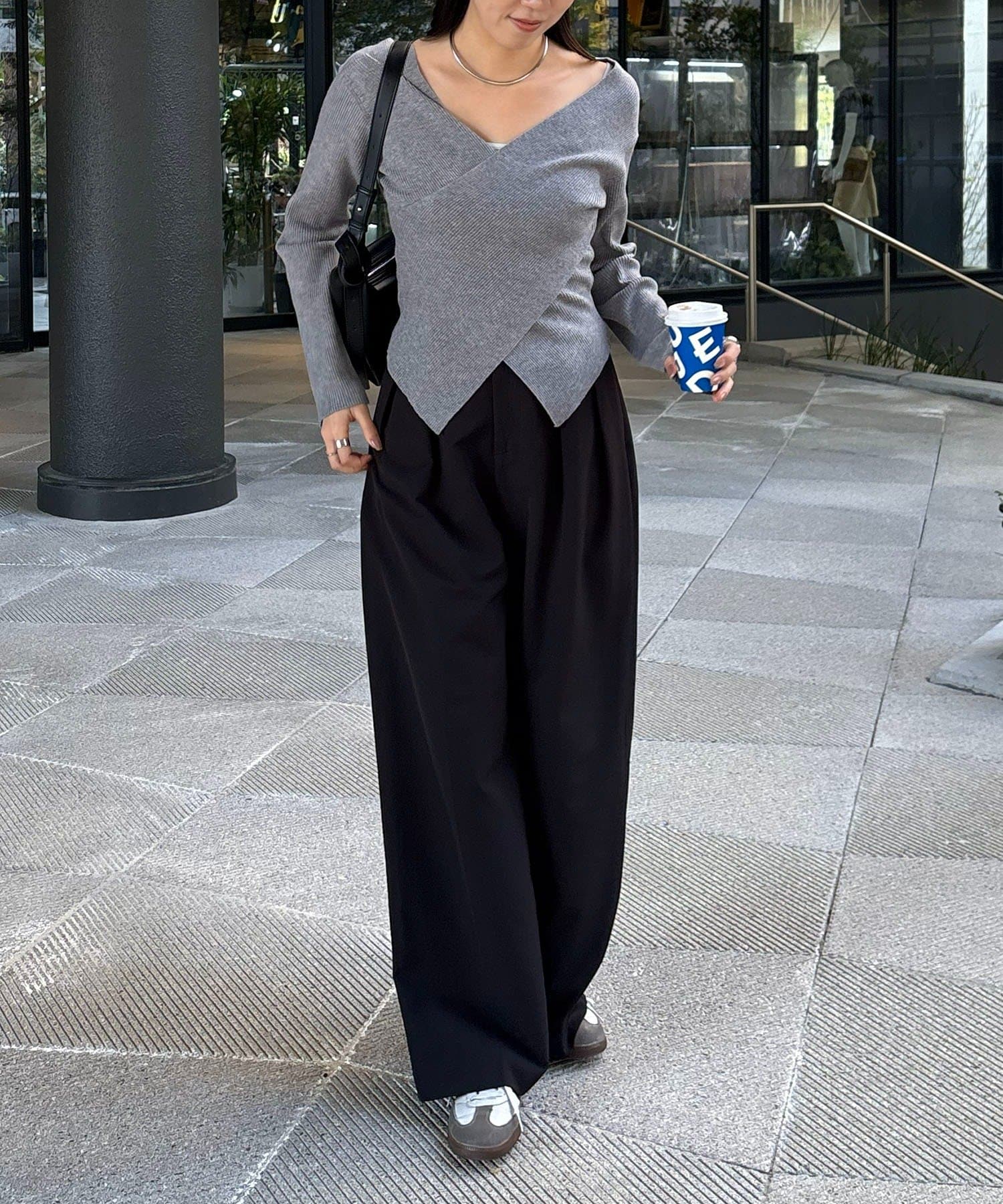 ・裾がVに開くことでインしなくても抜け感のあるコーデに