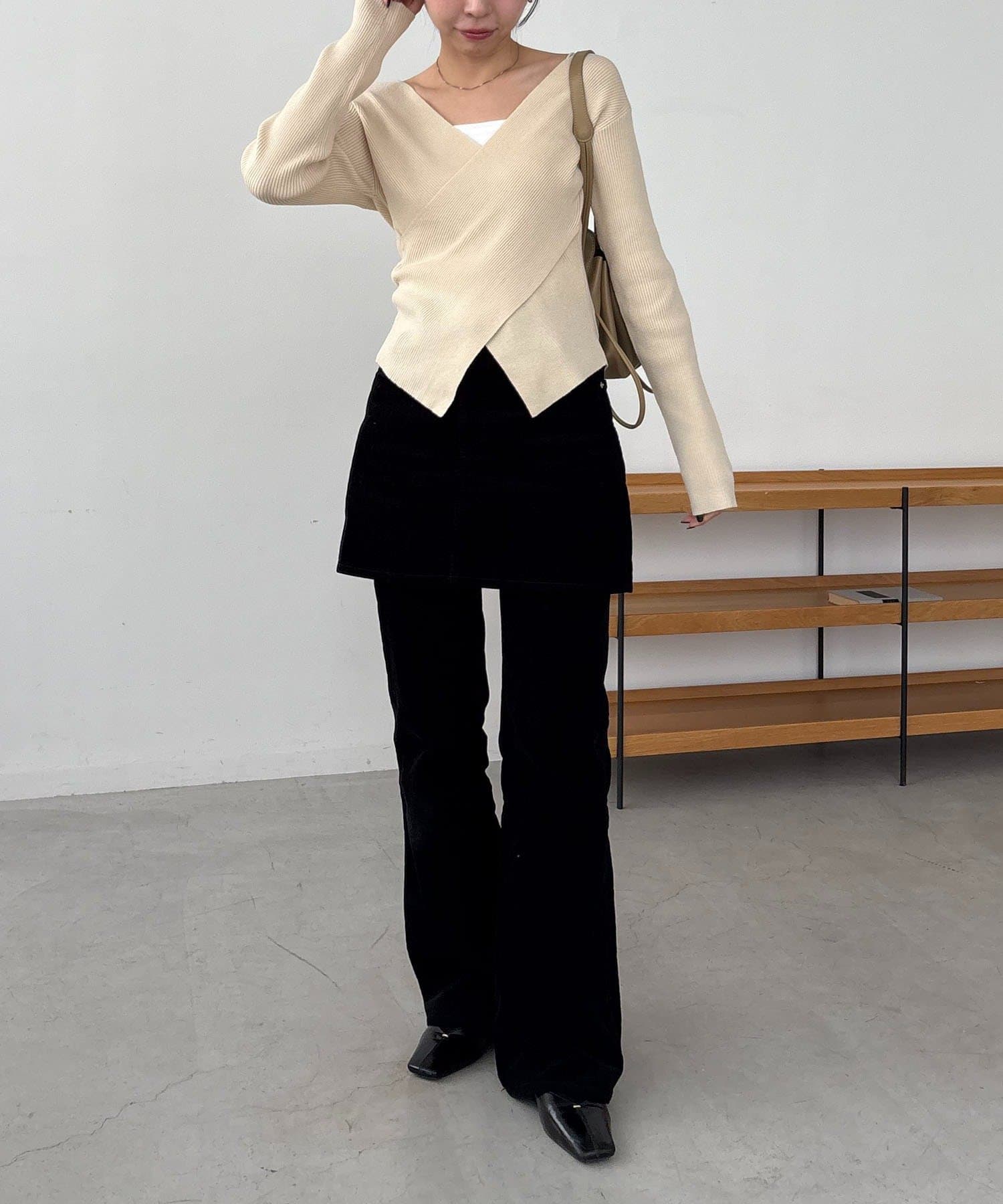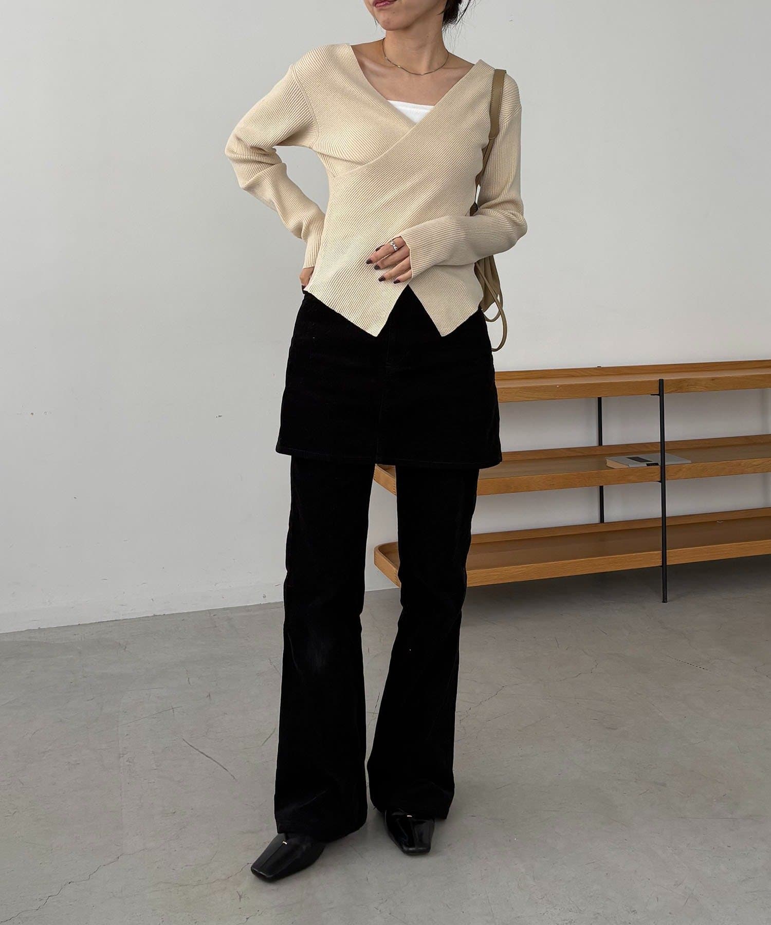 【ライトベージュ着用アイテム】skirt:コーデュロイ台形スカート、pants:コーデュロイフレアパンツ