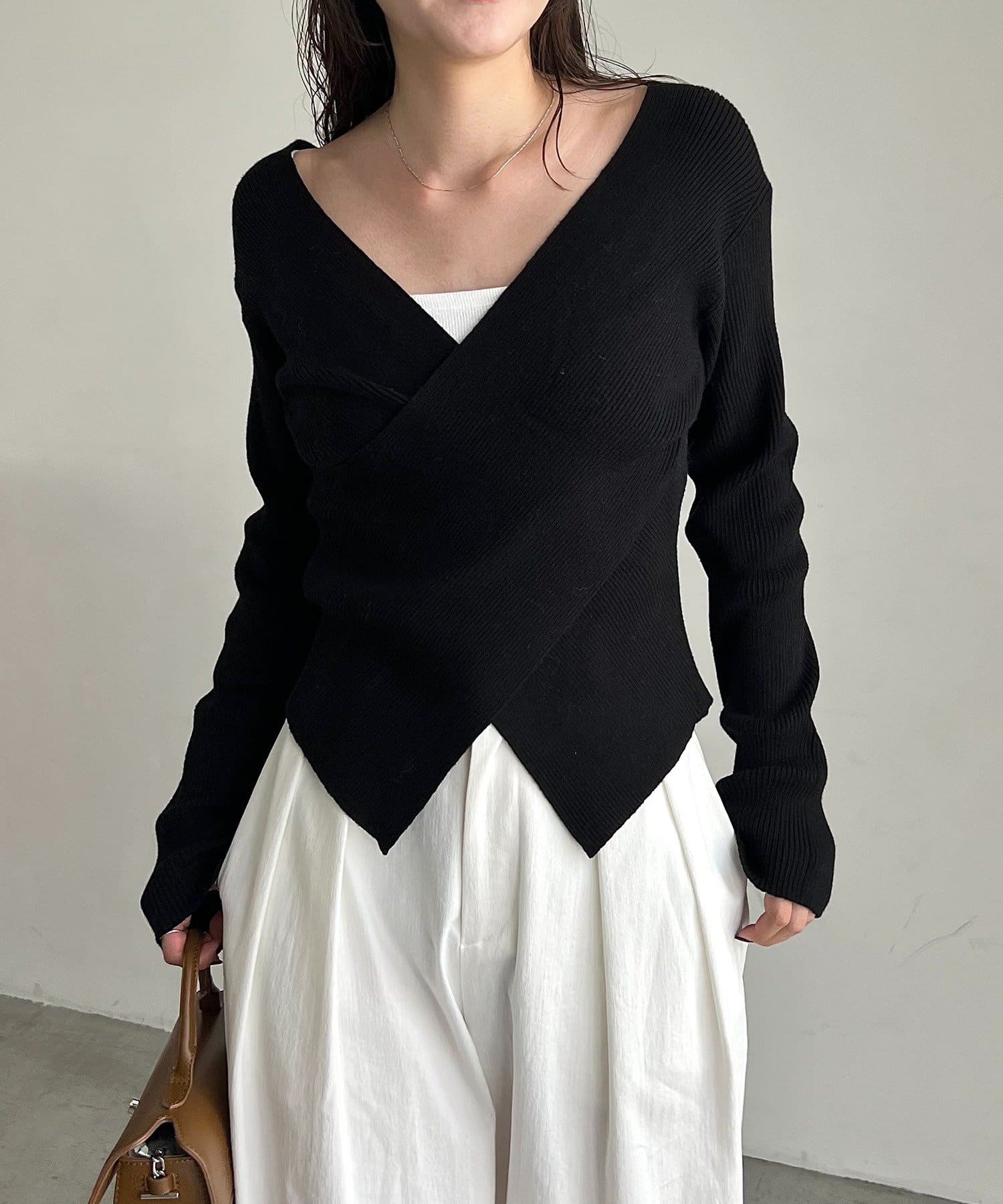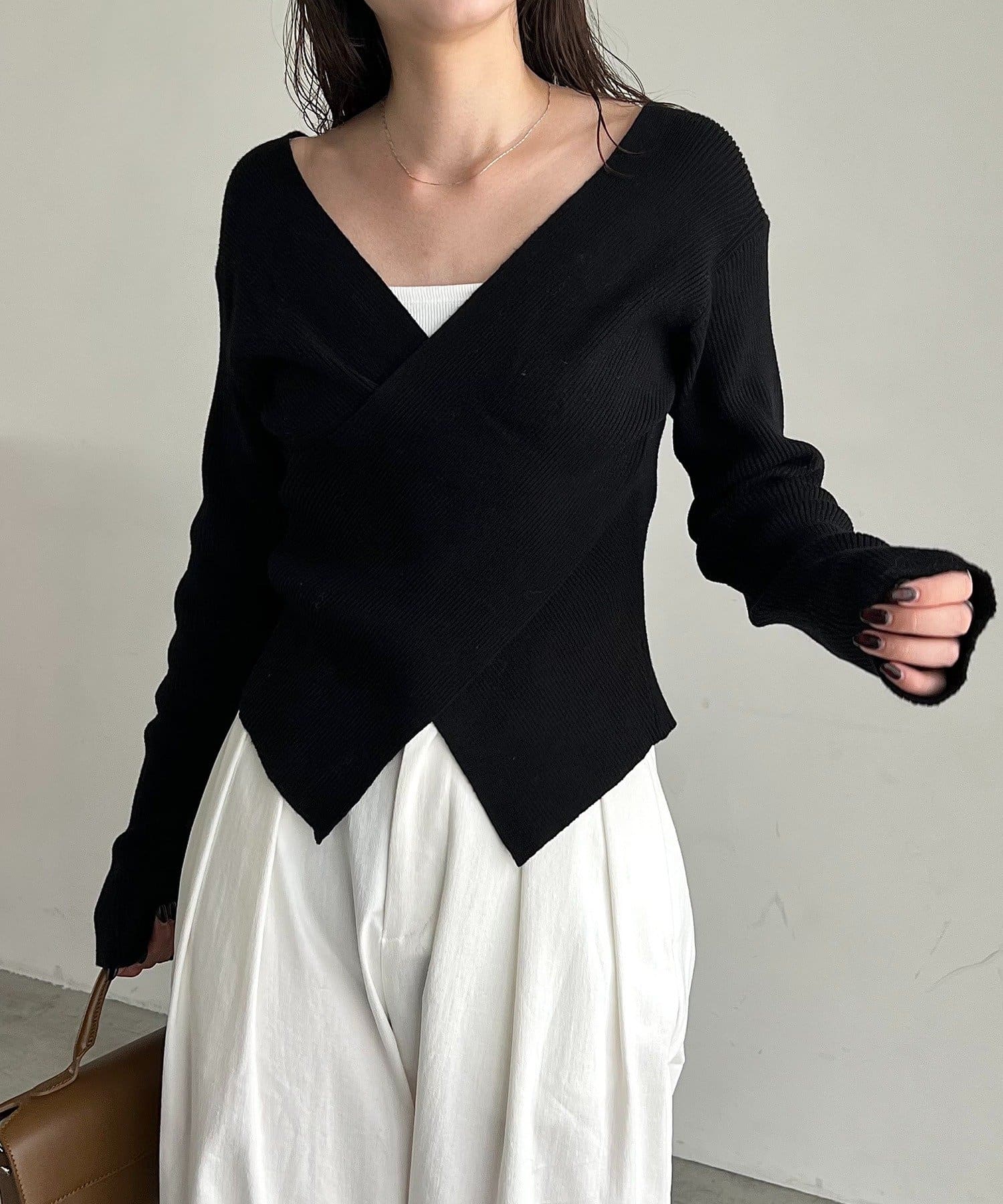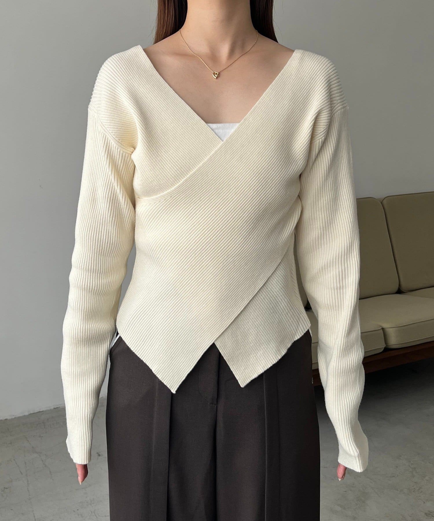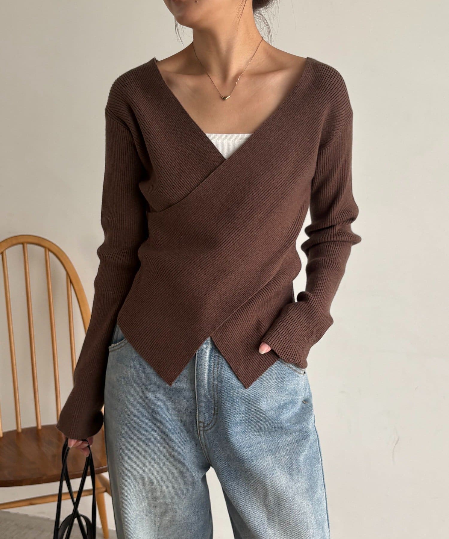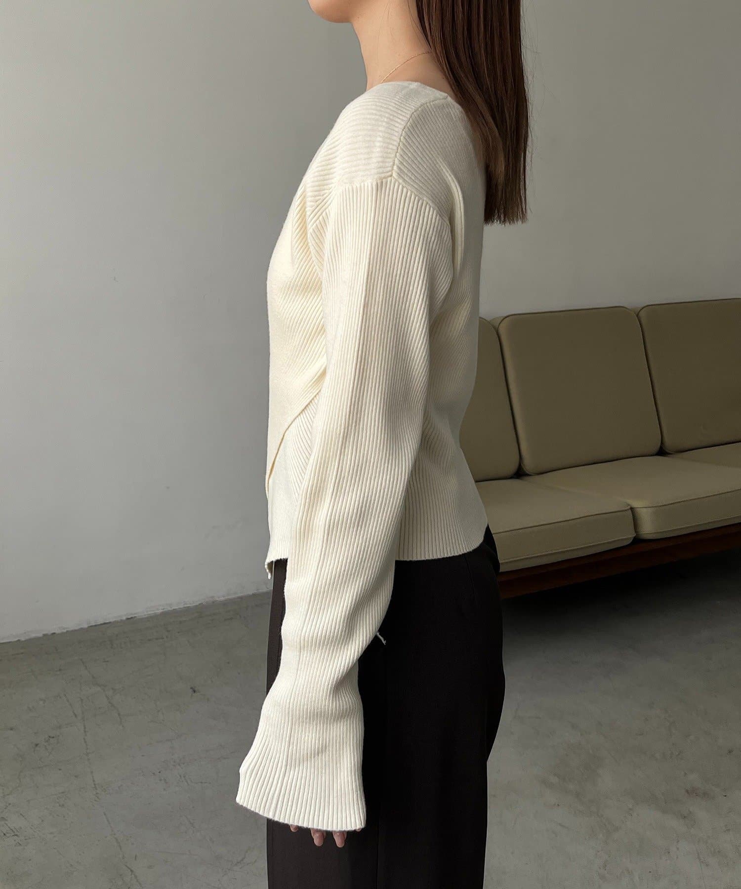 【華奢見えが叶う】クロスVネックニット