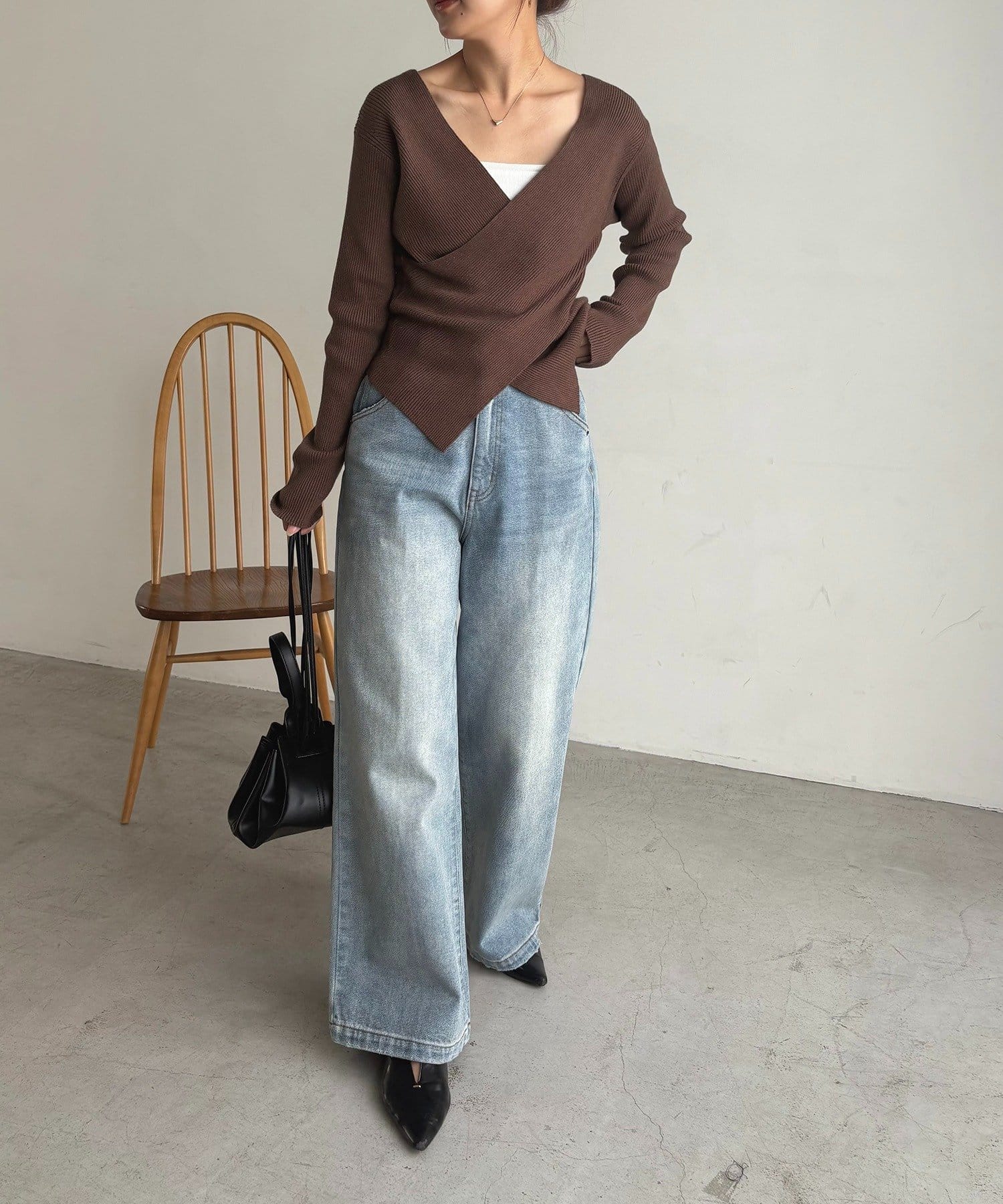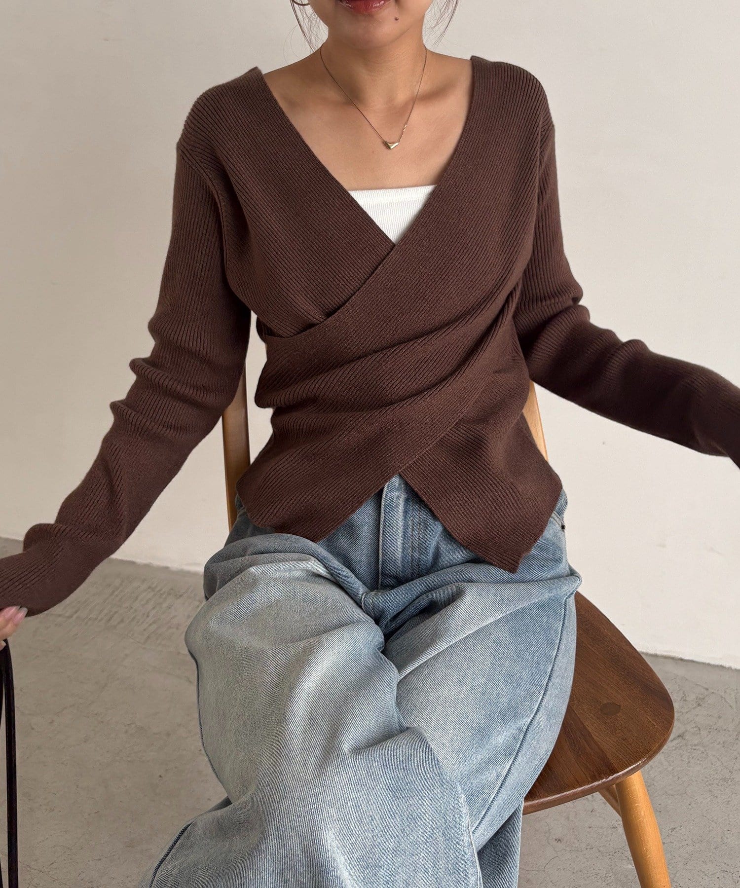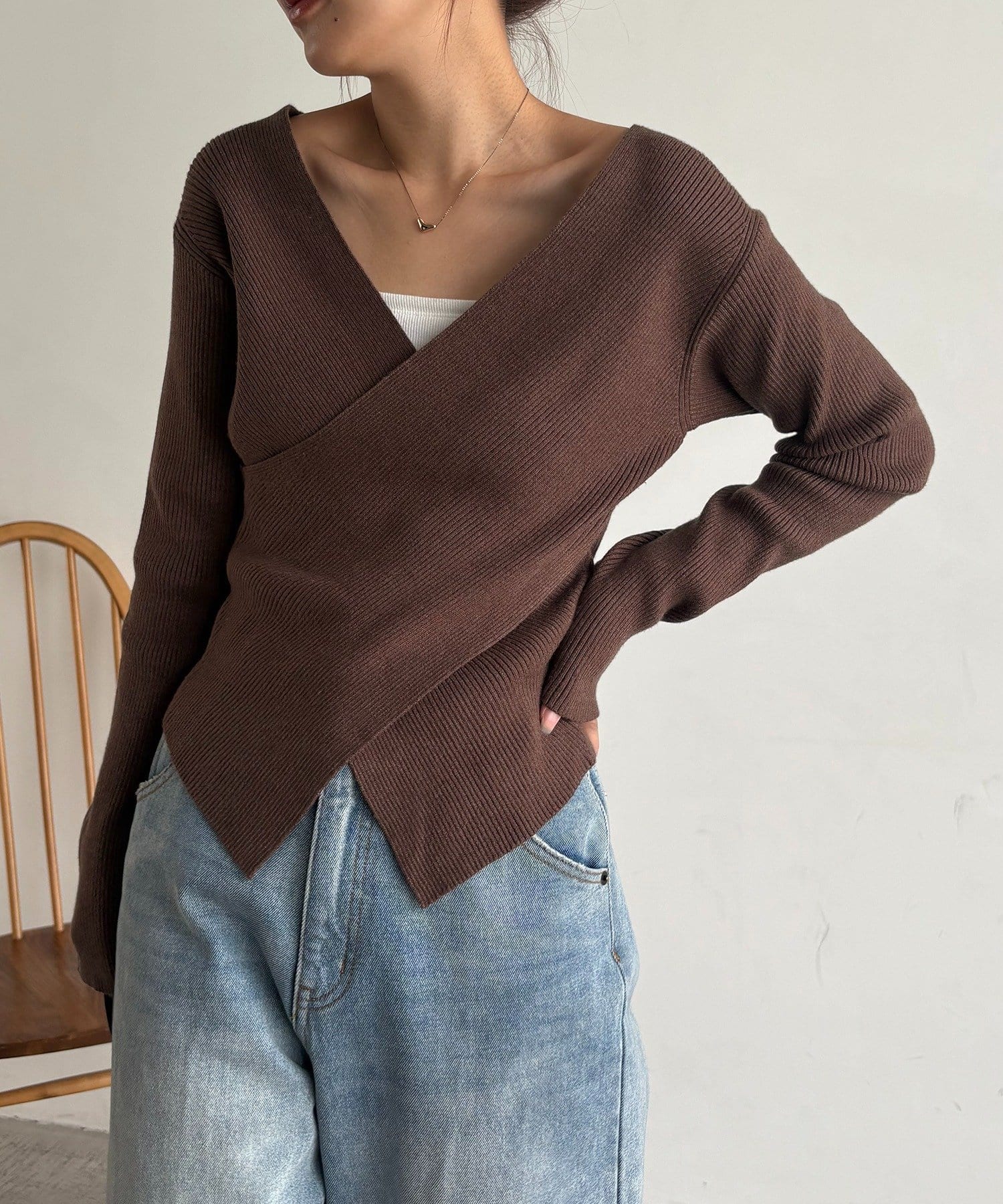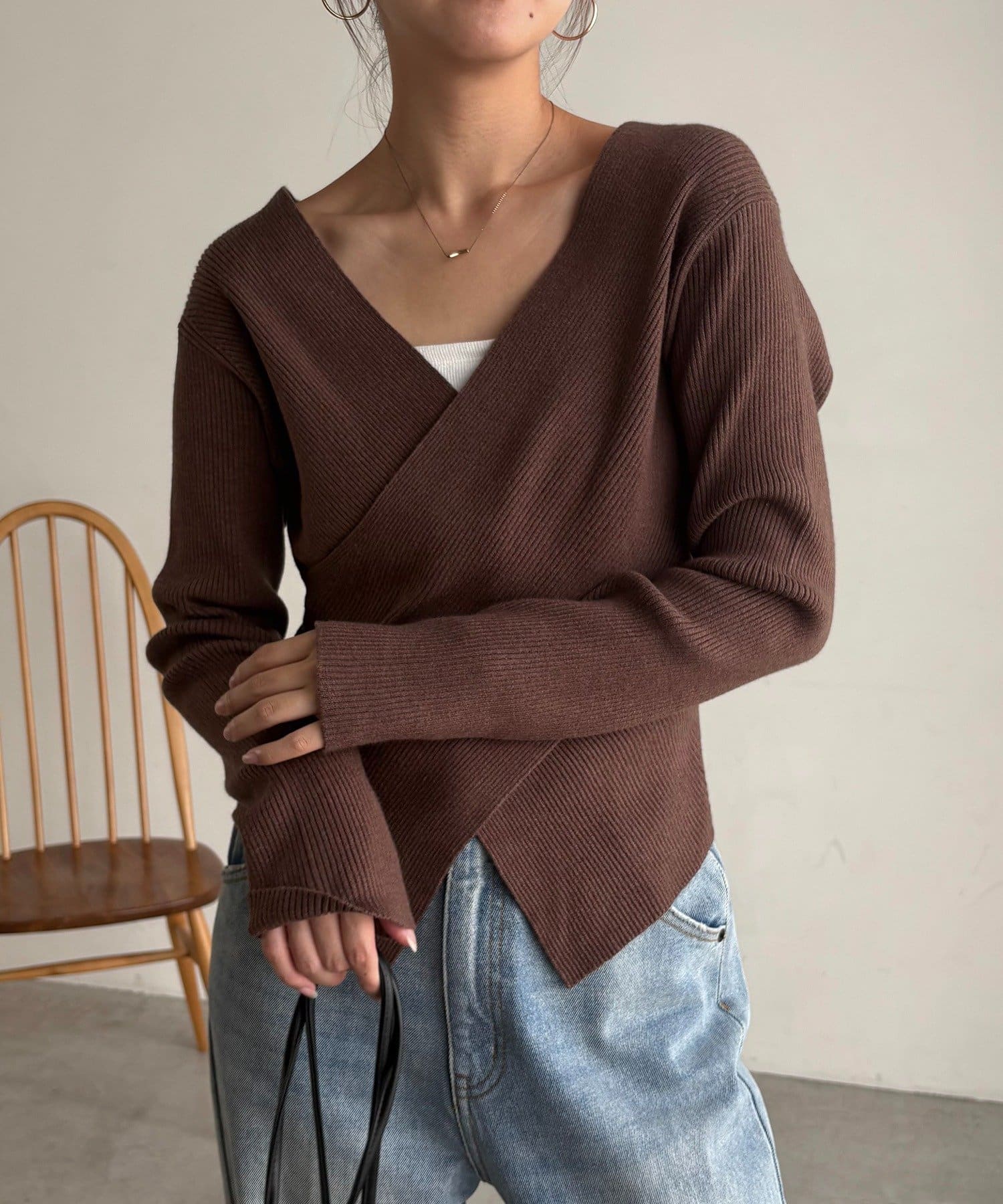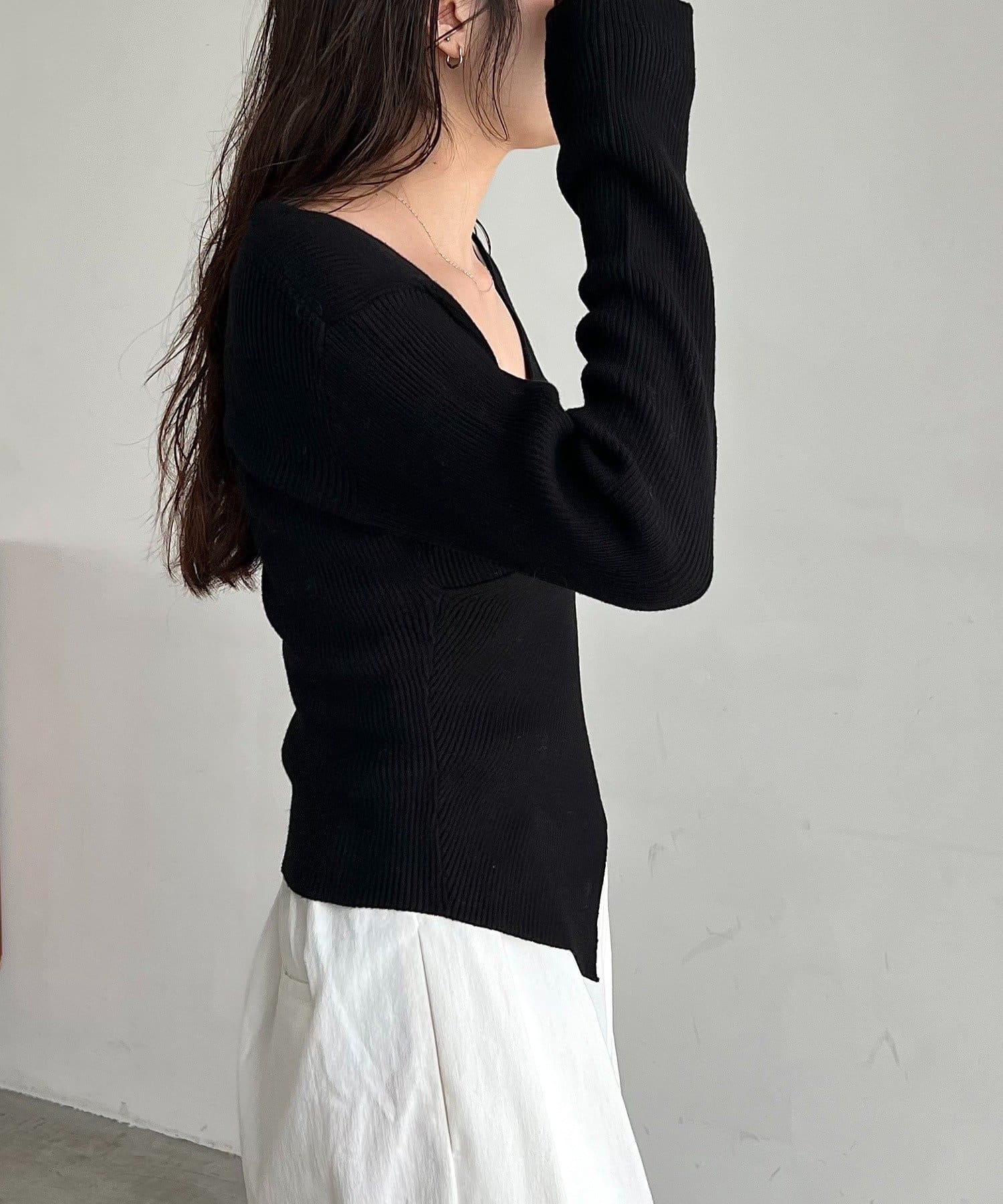 【華奢見えが叶う】クロスVネックニット