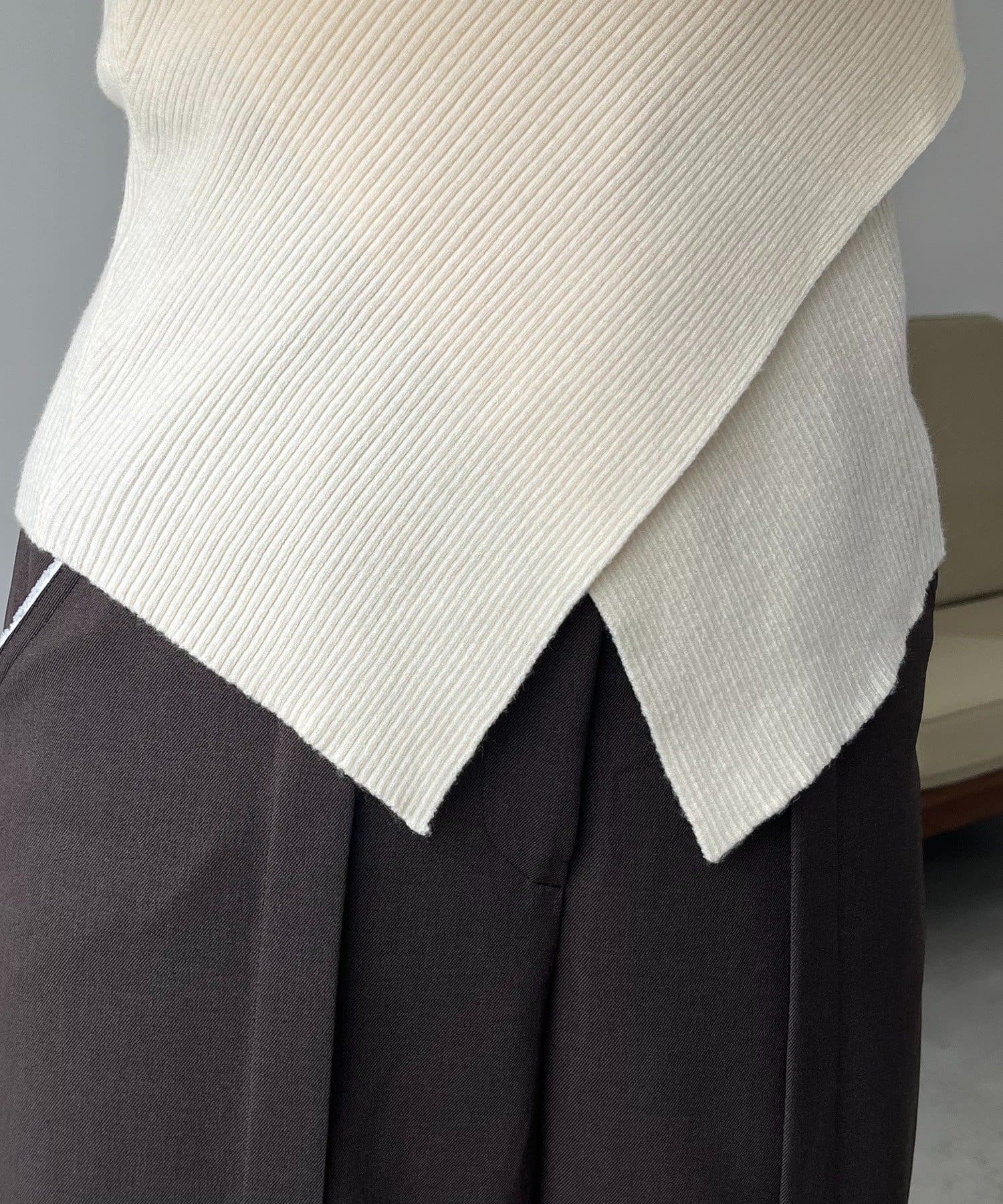 ・裾がVに開くことでインしなくても抜け感のあるコーデに