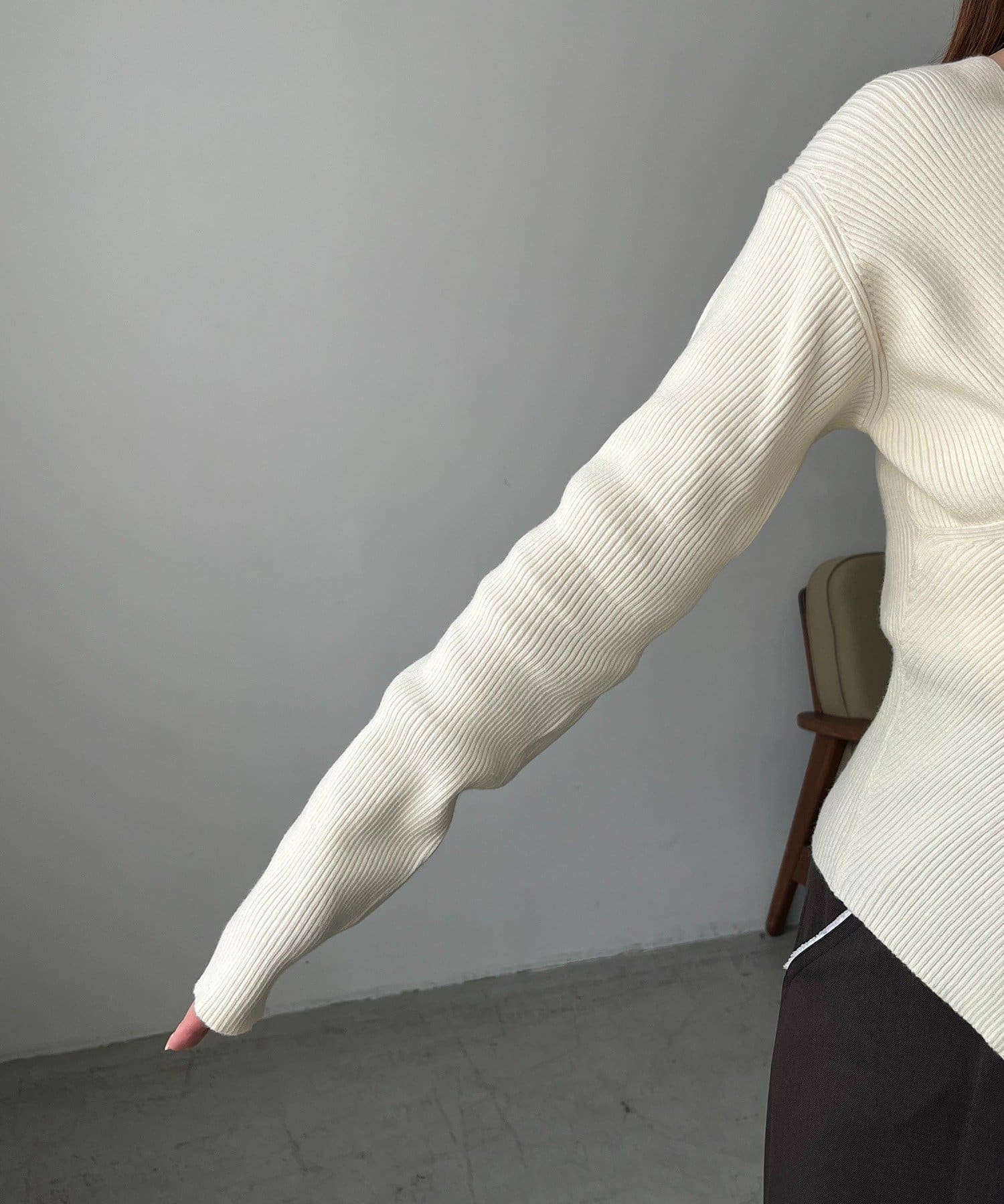 ・目の詰まったハイゲージニットで身体のラインを拾いにくい