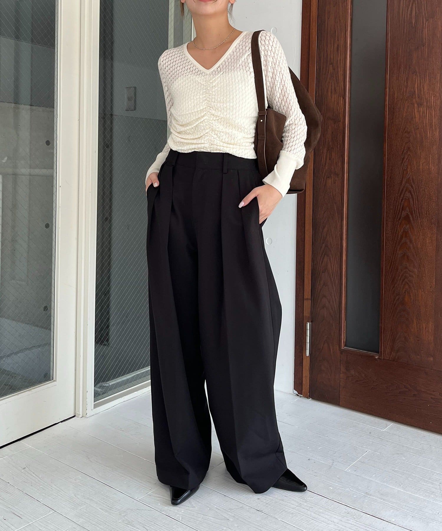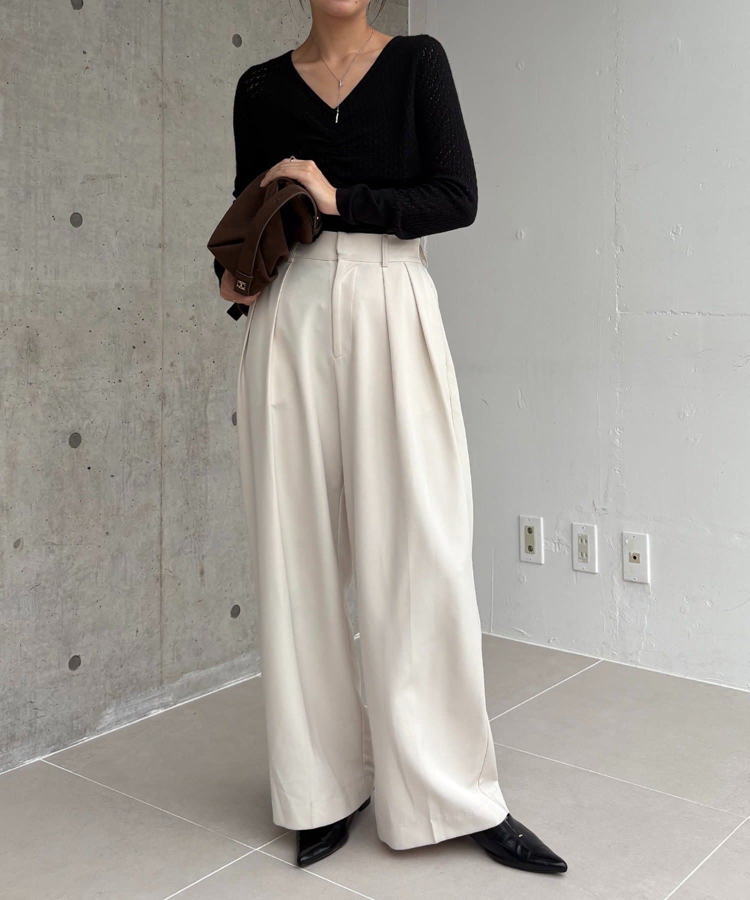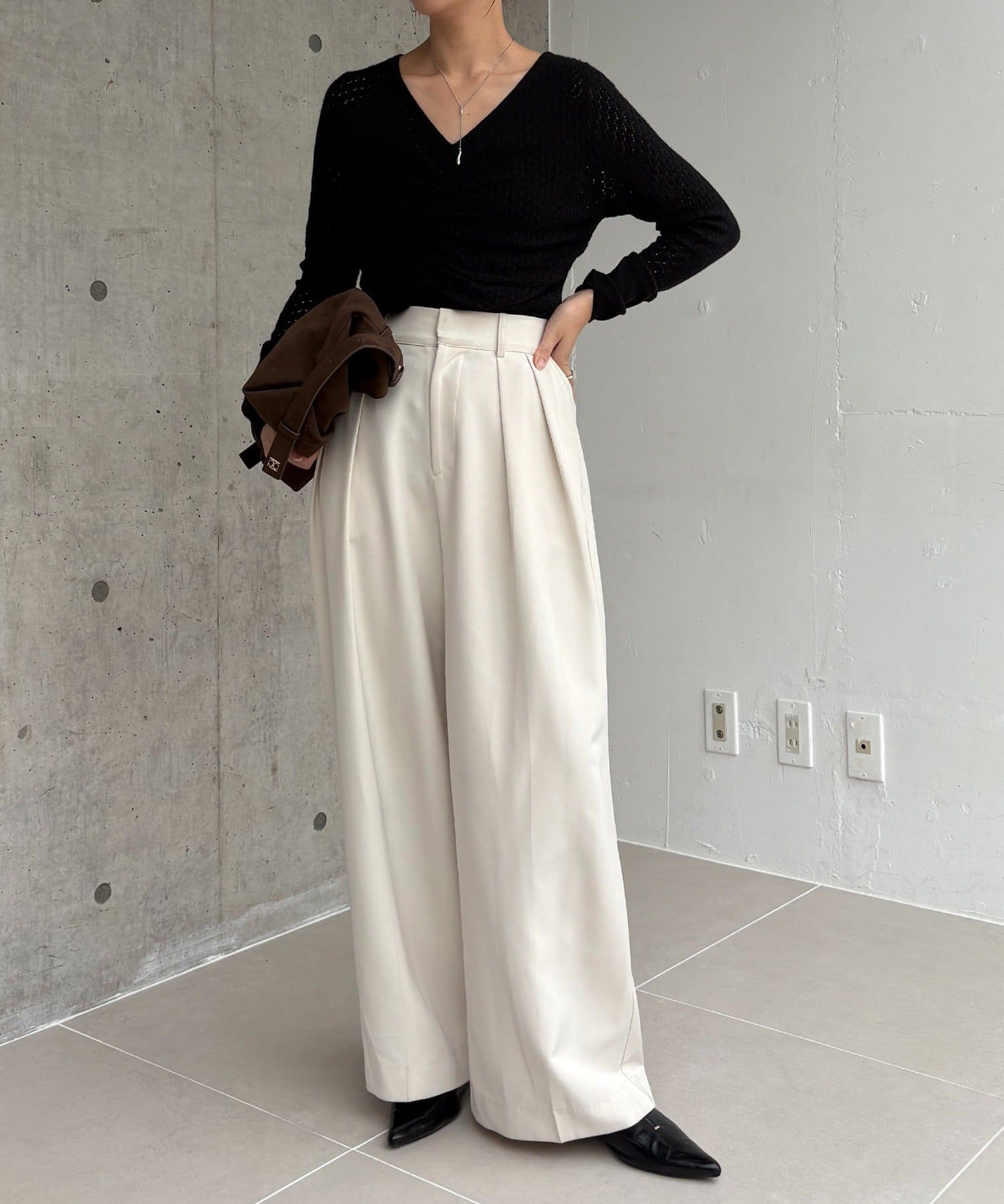 ・ワイドパンツ合わせのメリハリのあるスタイリングがおすすめ