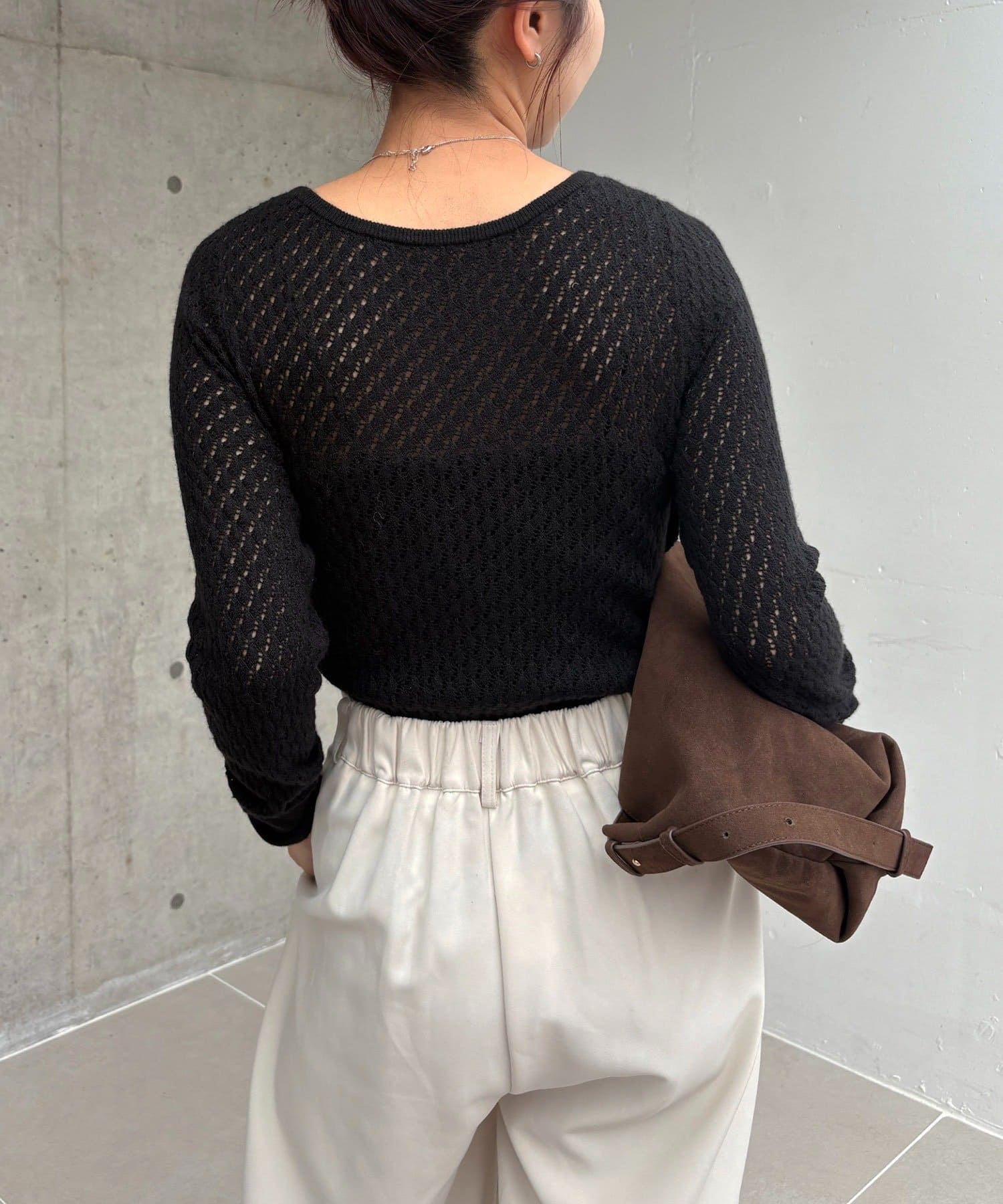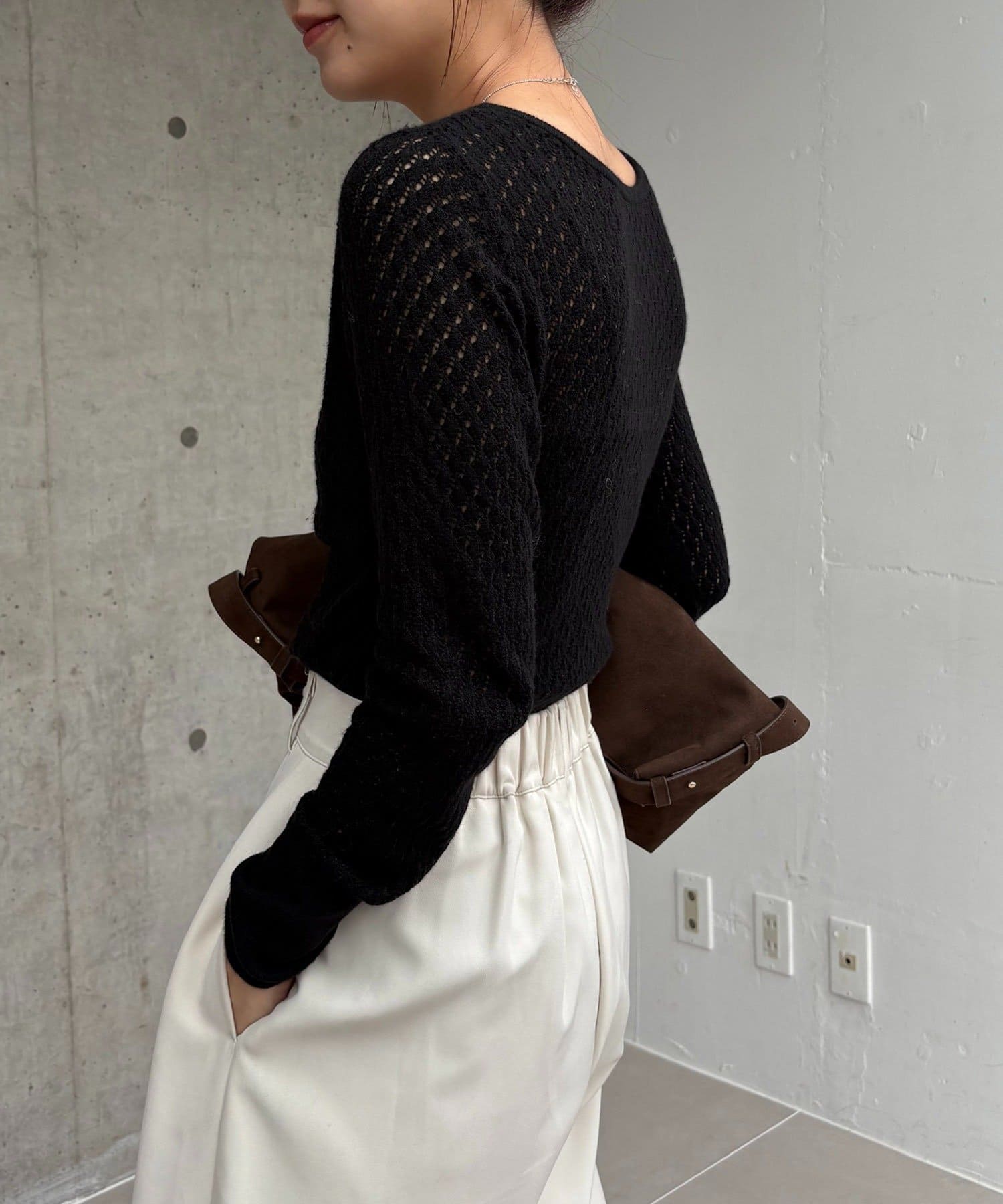 ・袖口はカフス部分のみ編地を切替え、さりげないポイントに