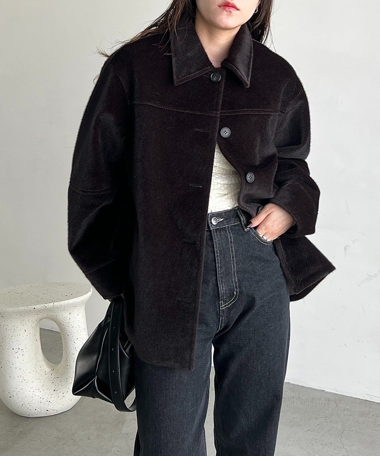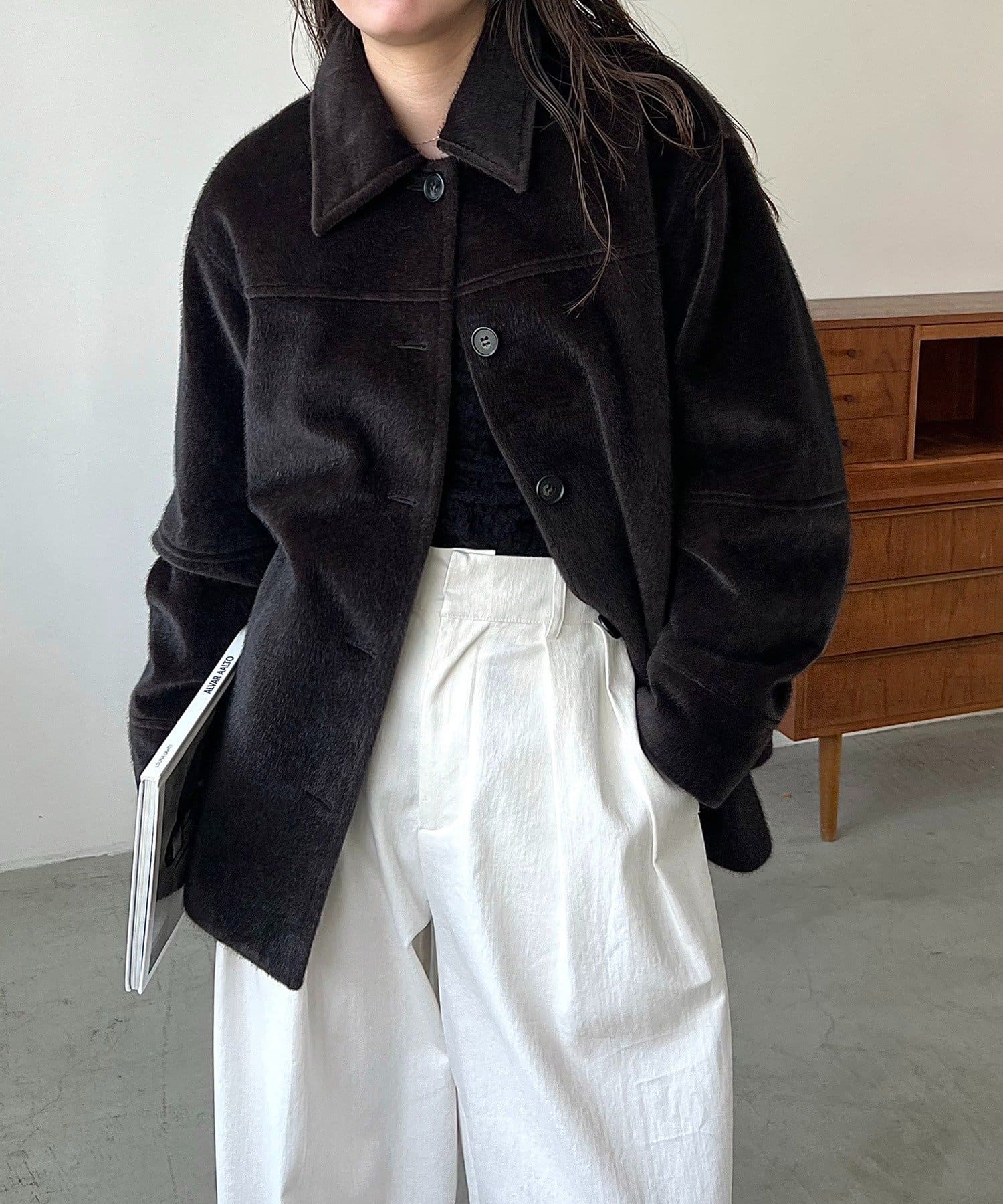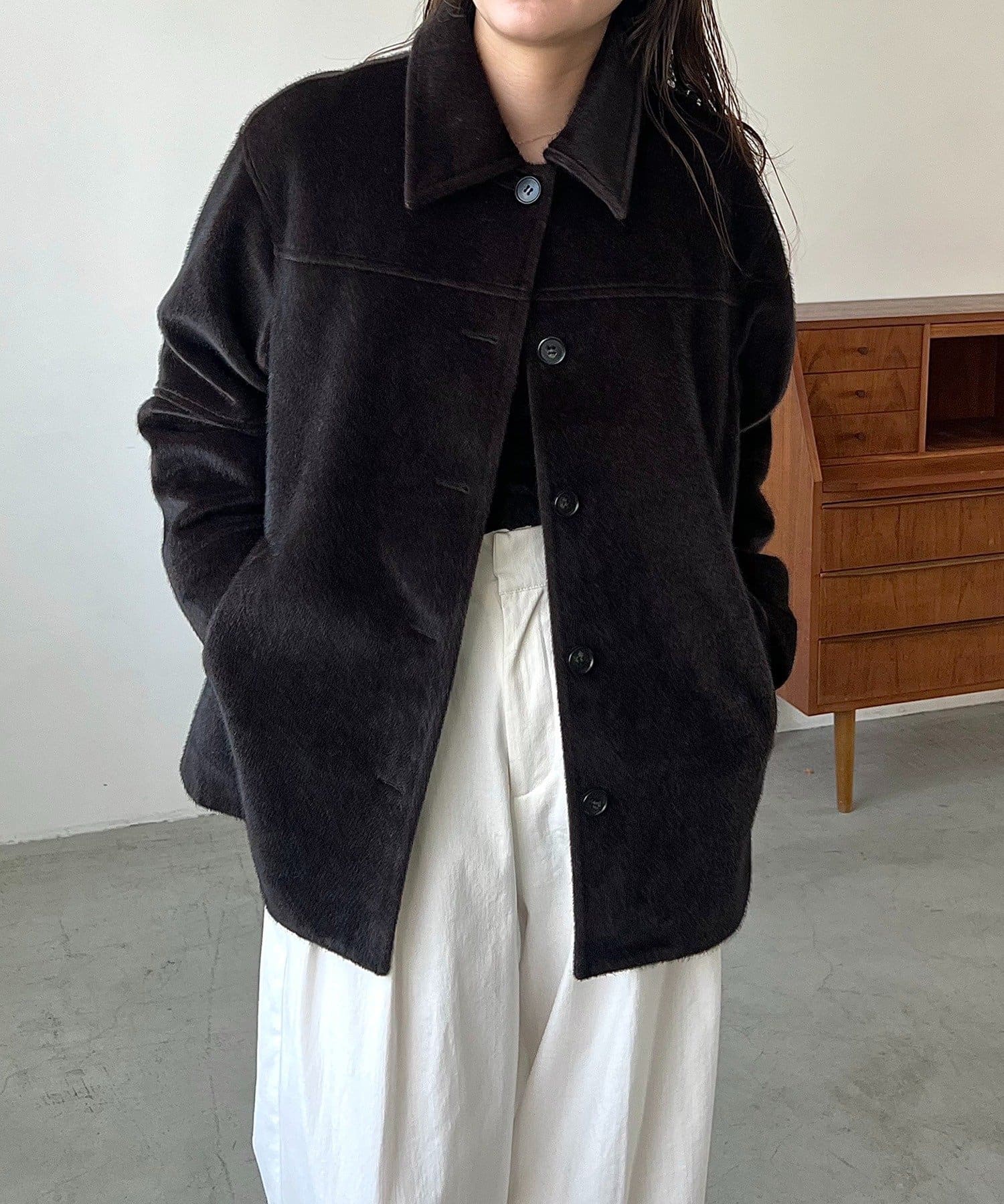 毛足の短い馬の毛並みのような素材が他にないハーフコート