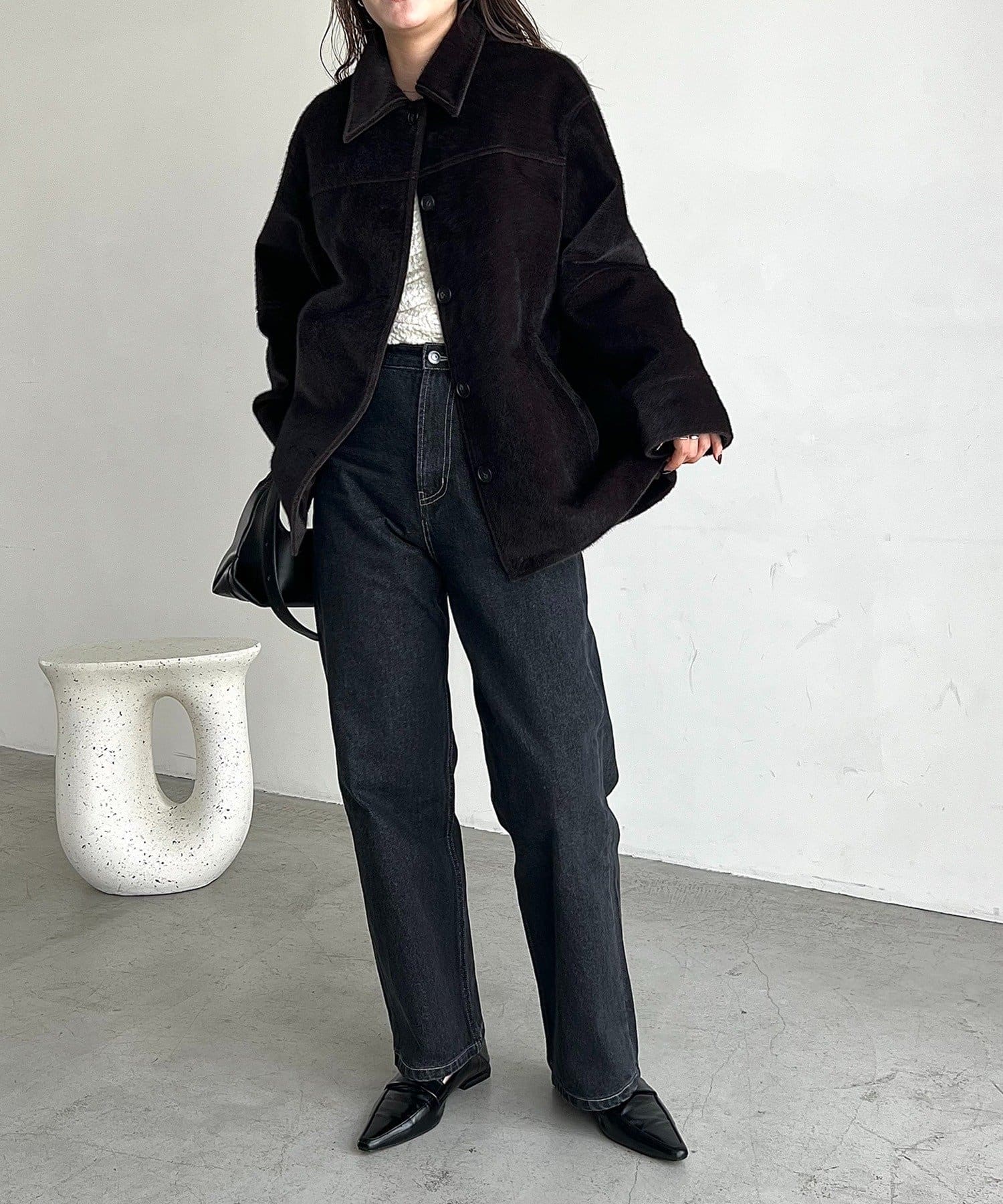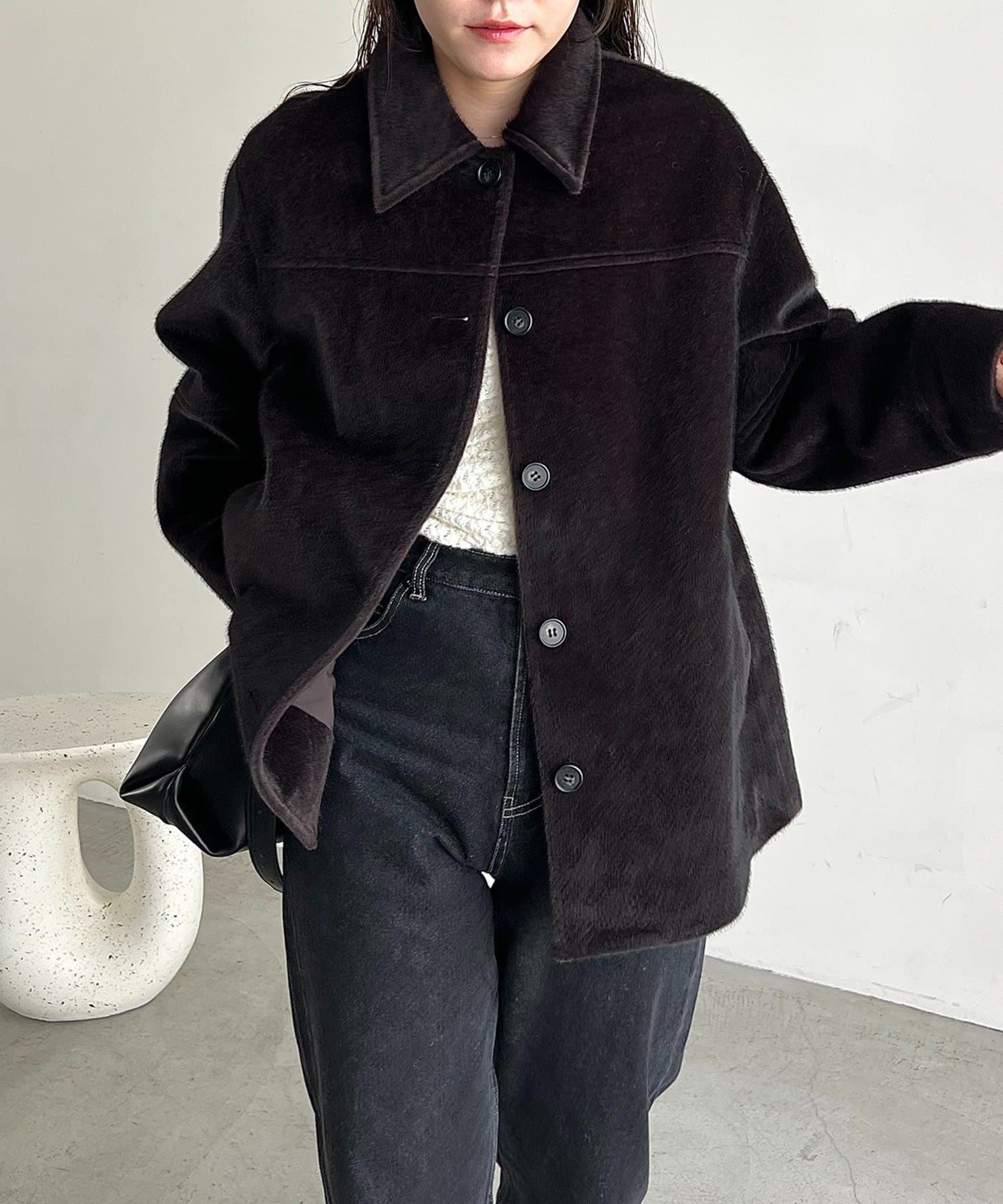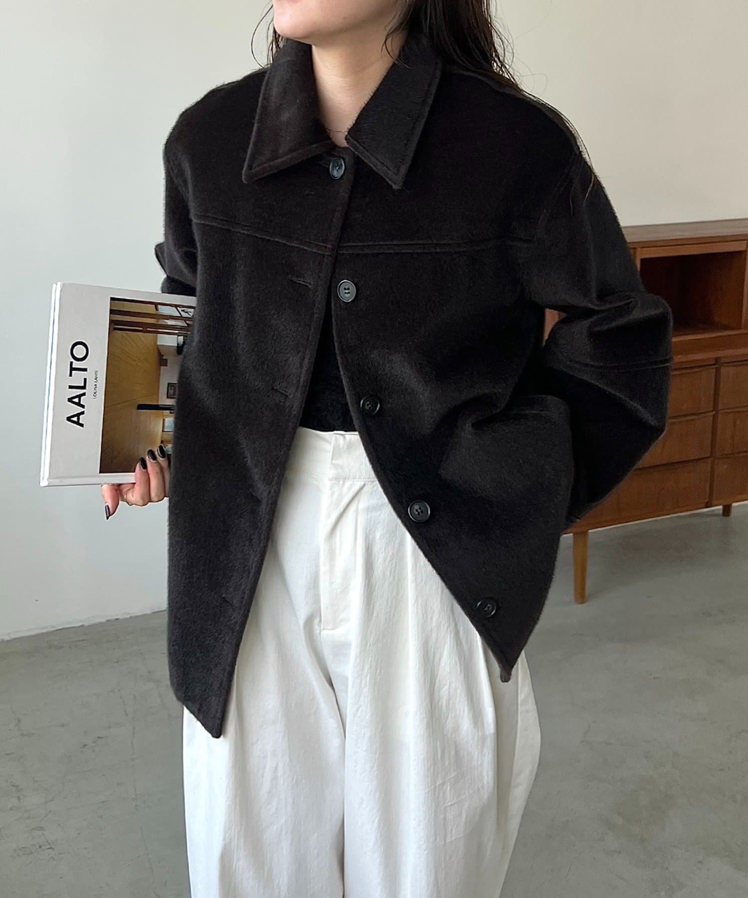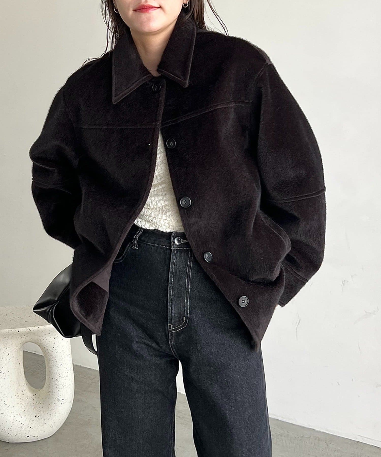 毛足の短い馬の毛並みのような素材が他にないハーフコート