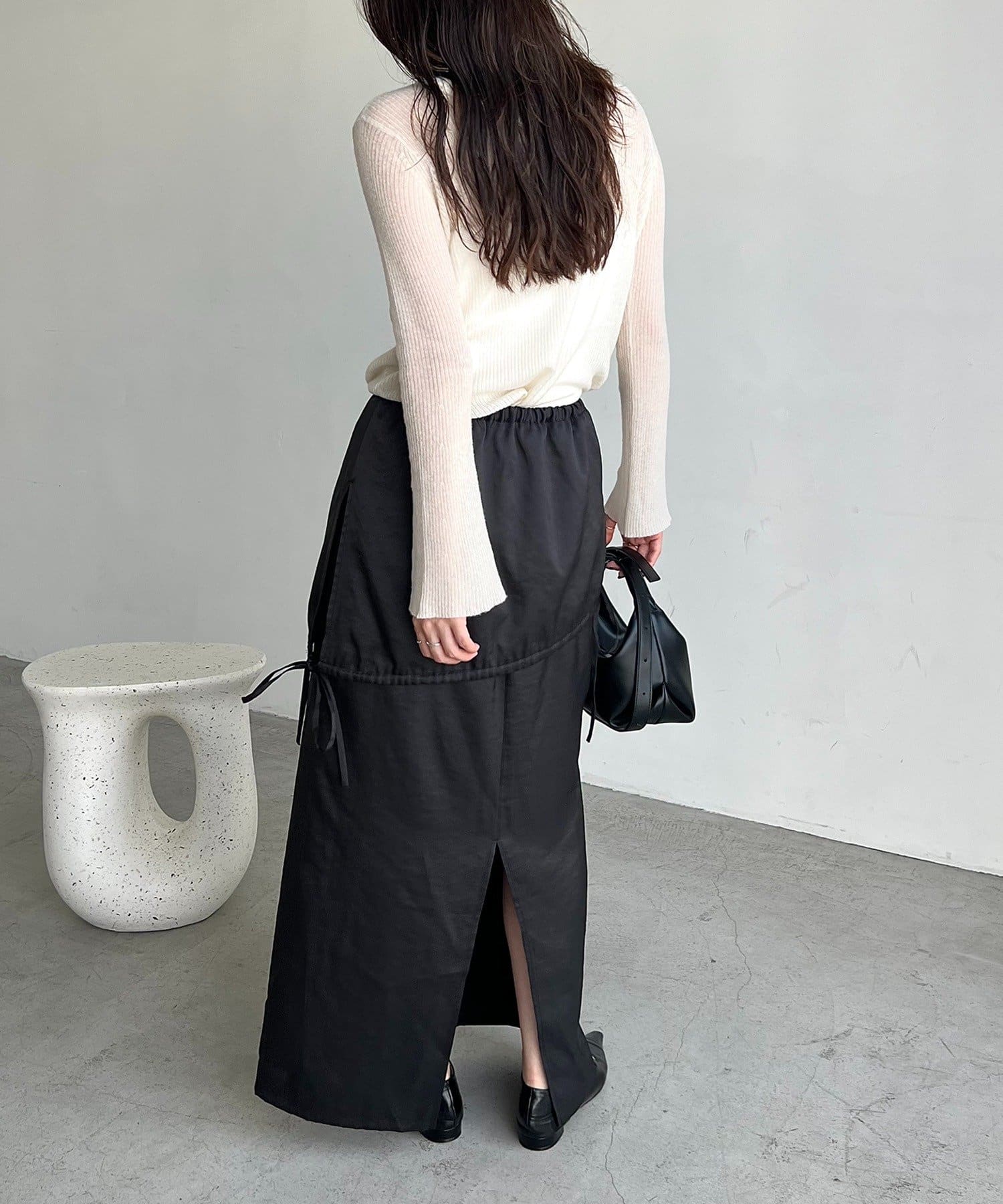 ・ウエスト部分に紐が入っており自分のウエストに合わせて調節可能