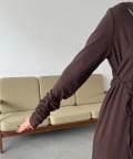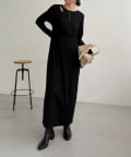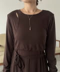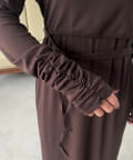 ・ウエストのリボンがくびれを作りスタイルアップ