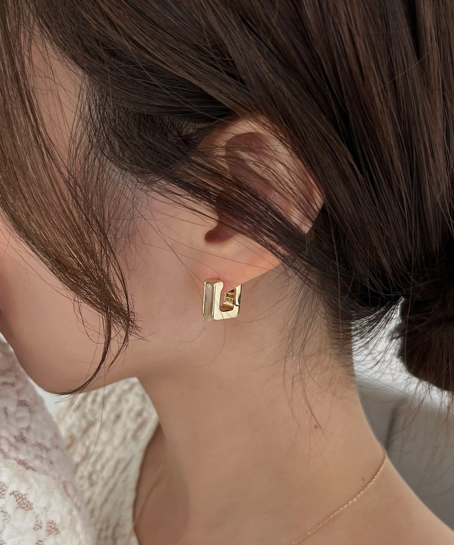 モード感漂うスクエアシルエットのピアス