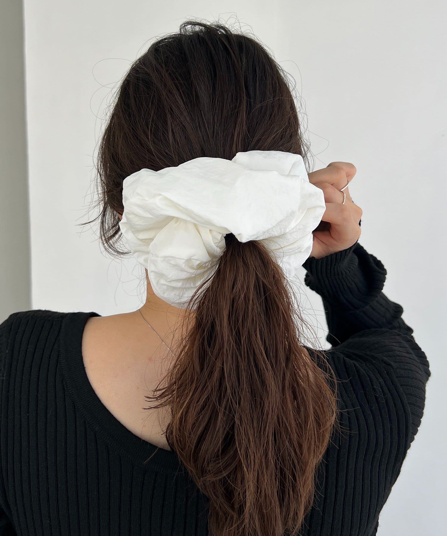 カジュアルな素材感で幅広いスタイリングにマッチするシュシュ。