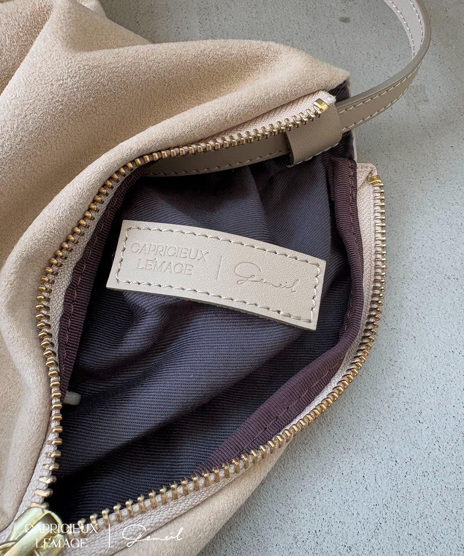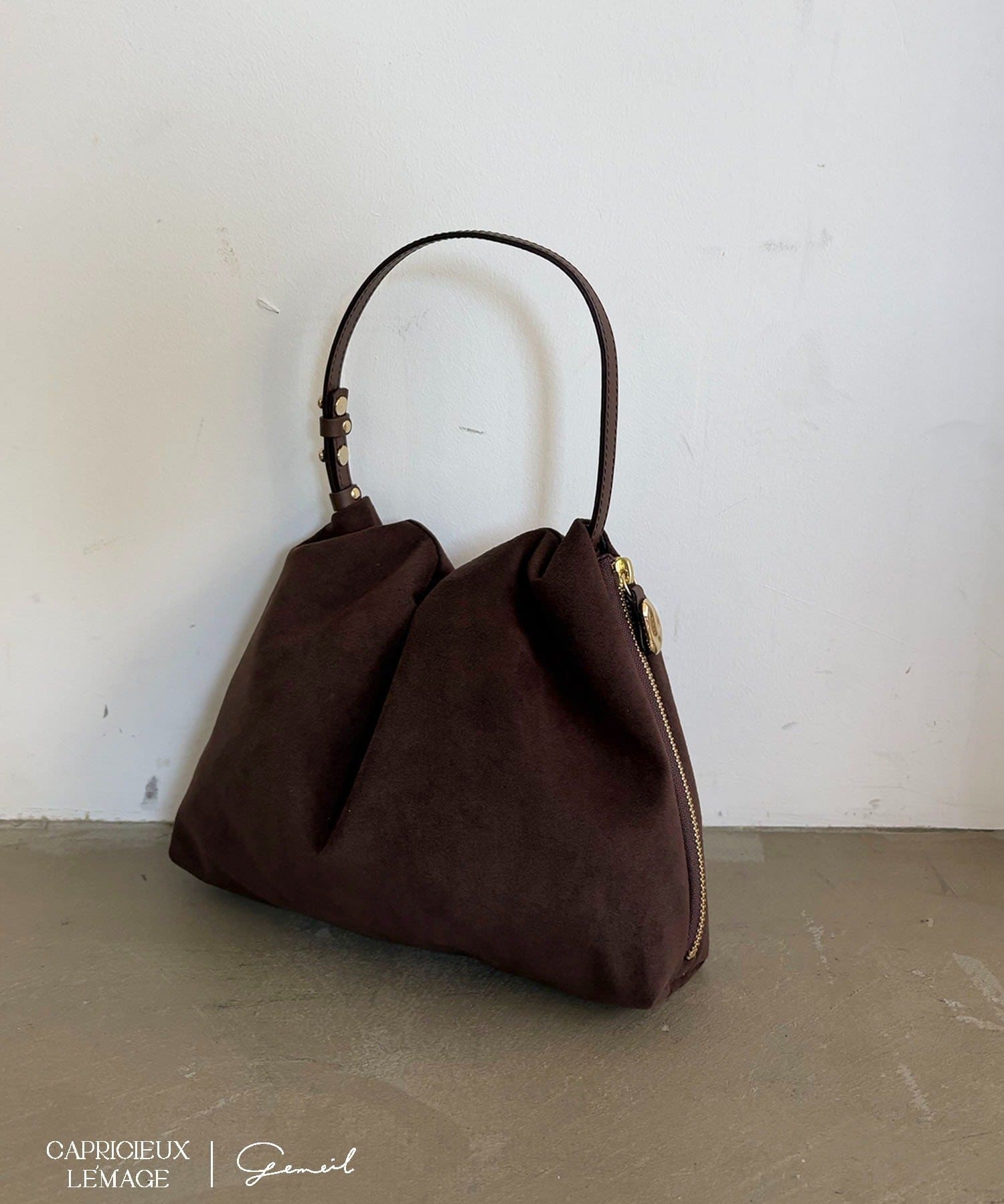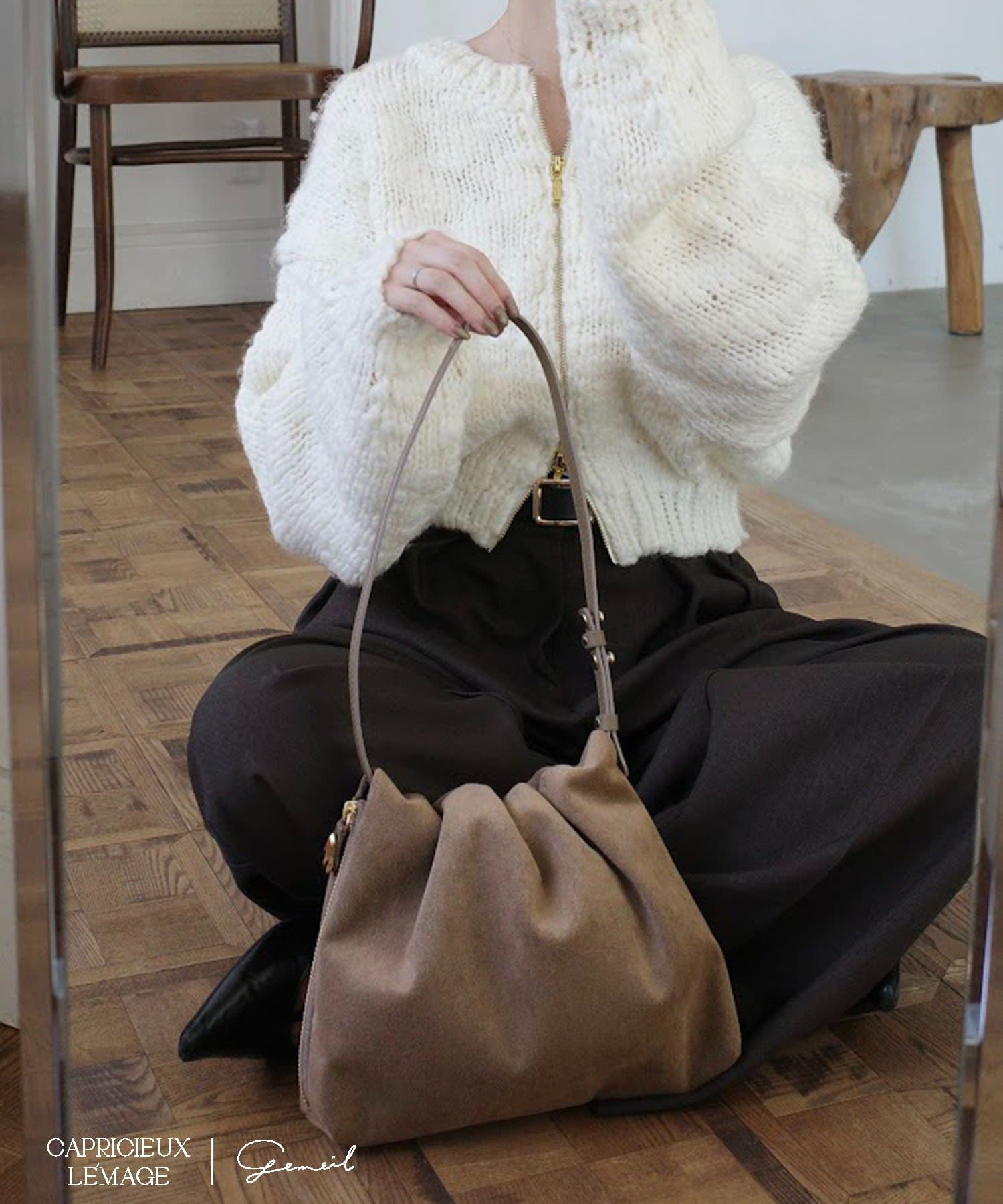 gemeilの人気NO.1アイテム "レザーワンハンドルバッグ" のスエードバージョン