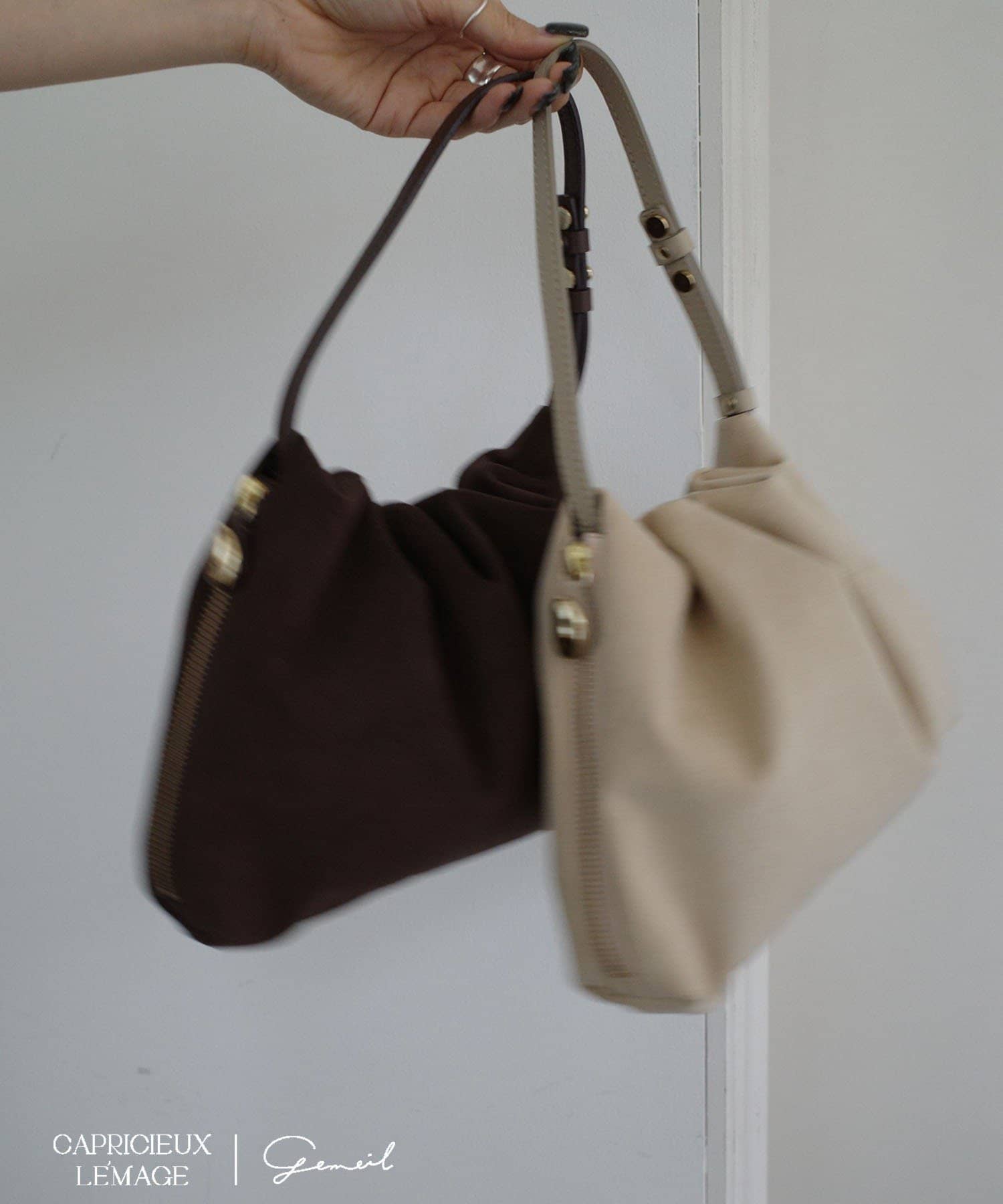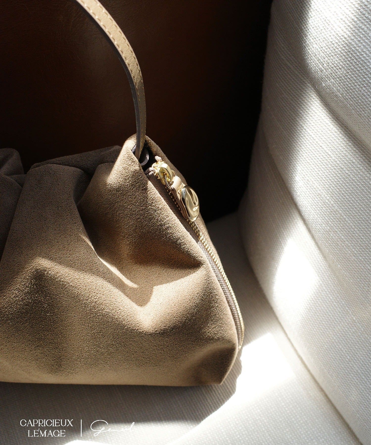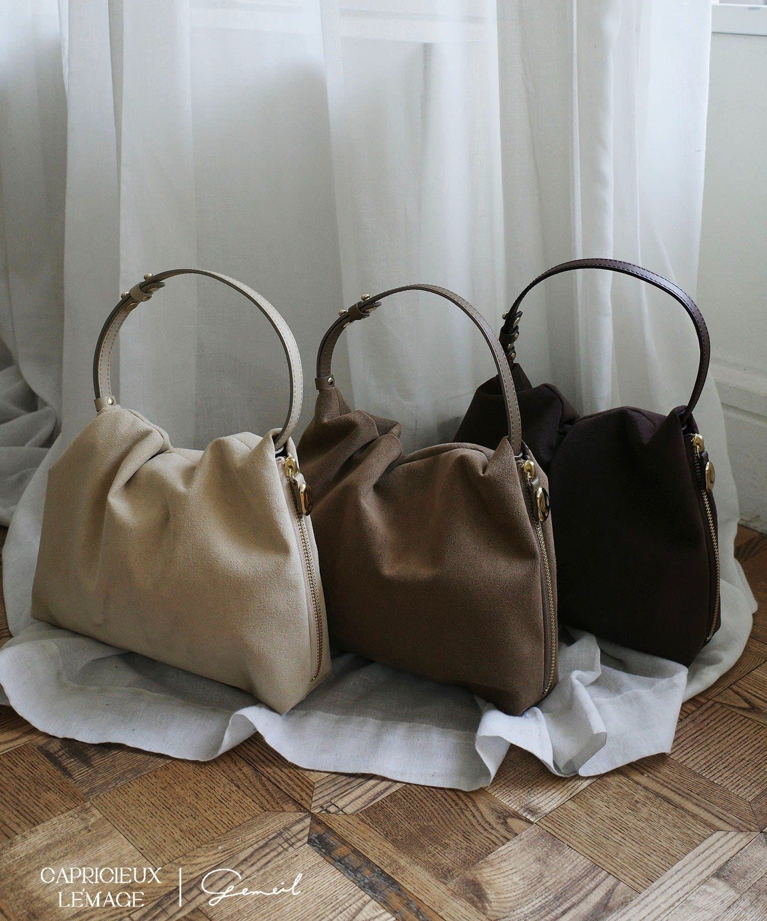 gemeilの人気NO.1アイテム "レザーワンハンドルバッグ" のスエードバージョン