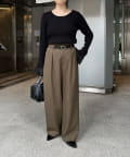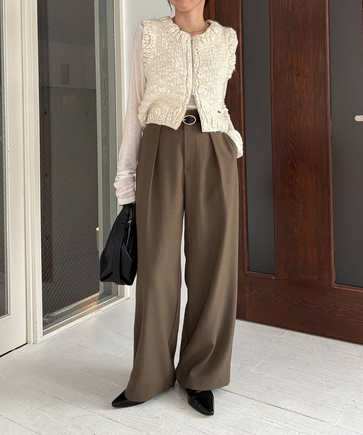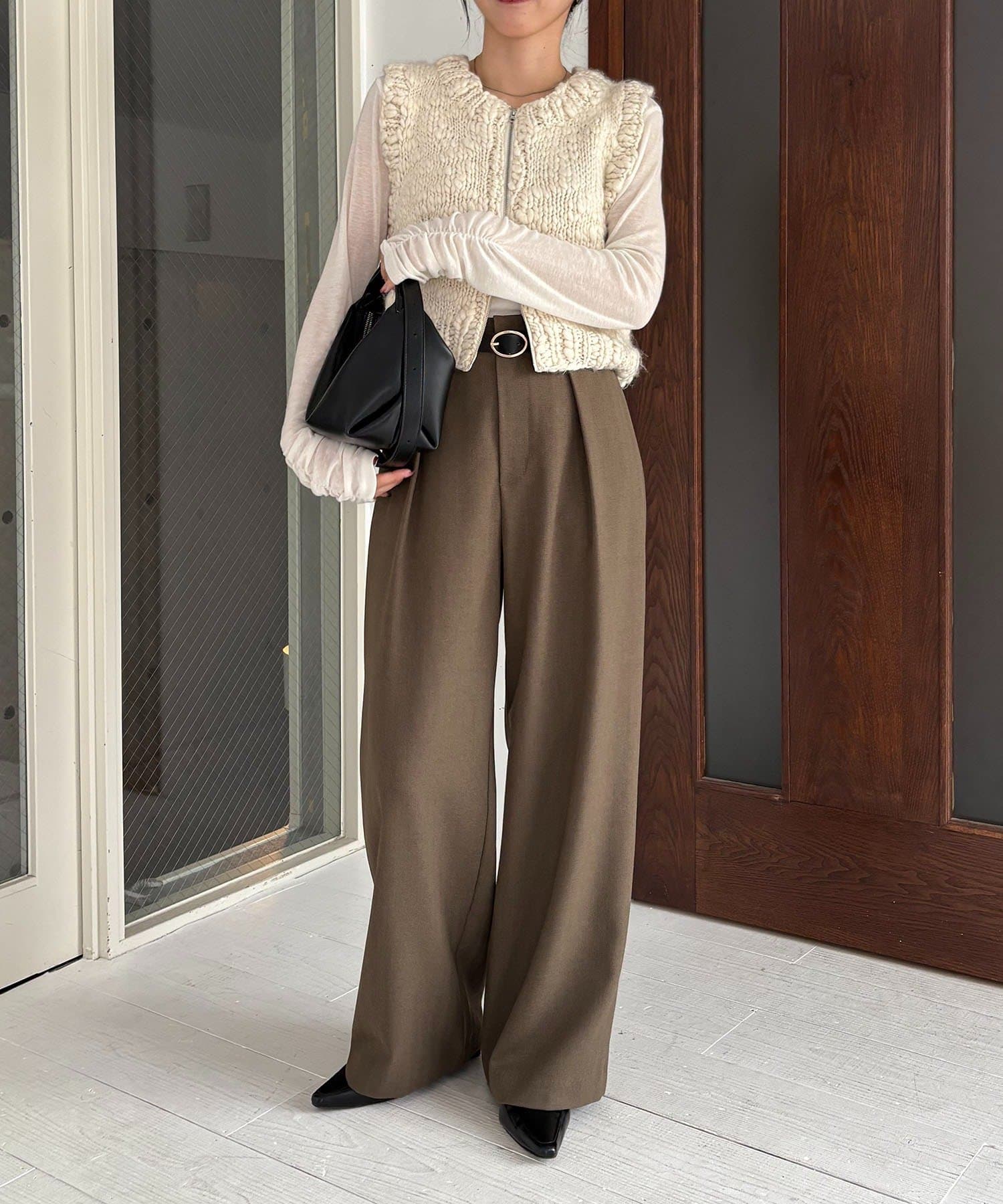 【ブラウン着用サイズ①】inner:テンセルウール袖ギャザーロンT・vest:ハンドニットベスト
