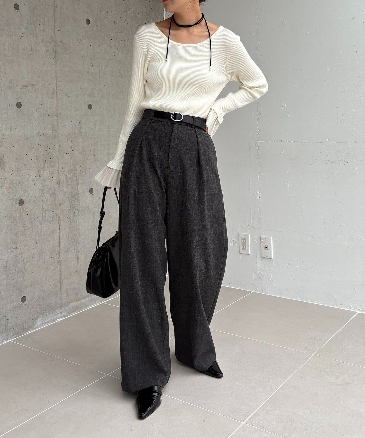 【チャコールグレー着用サイズ①】フレアカフスニット