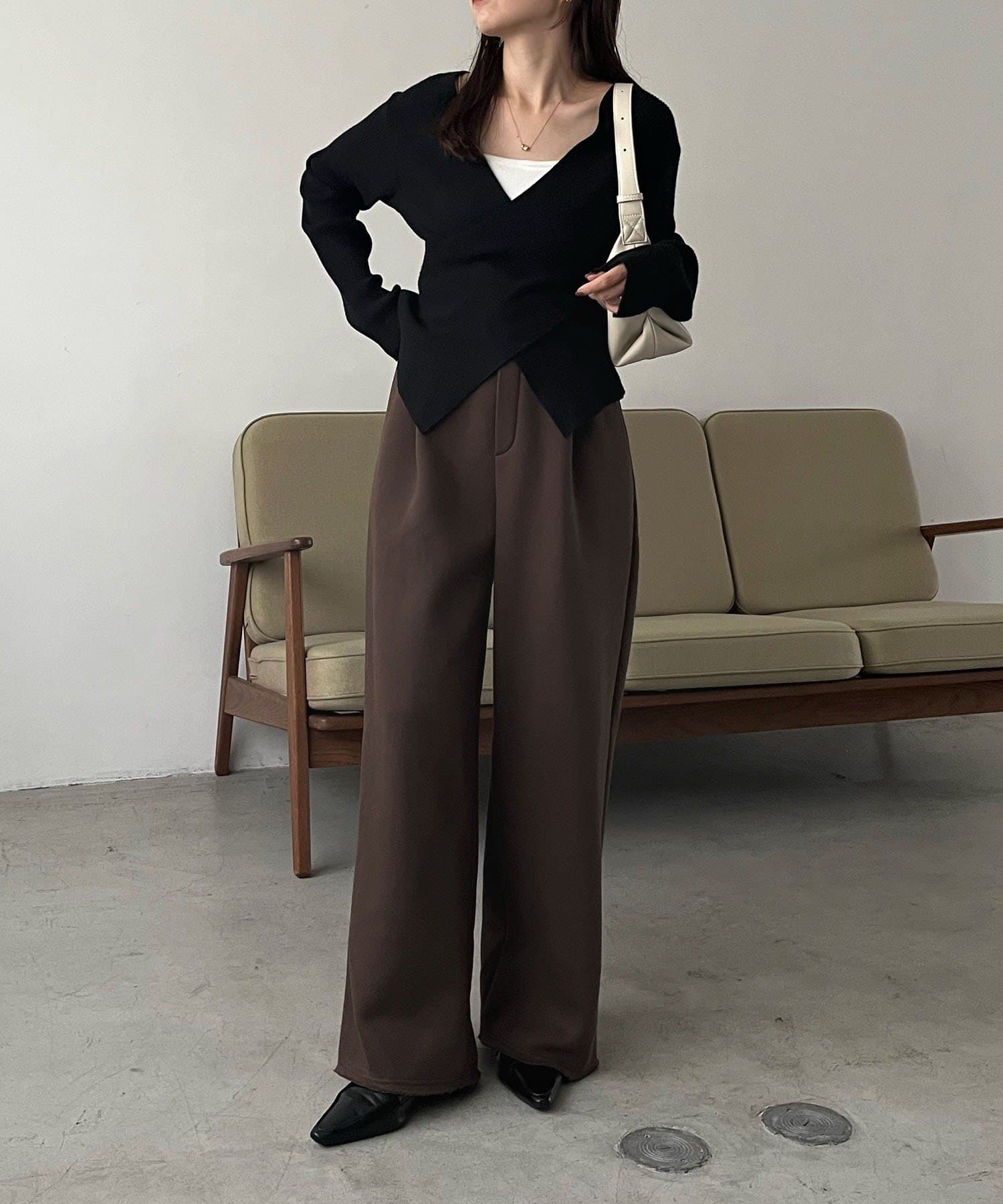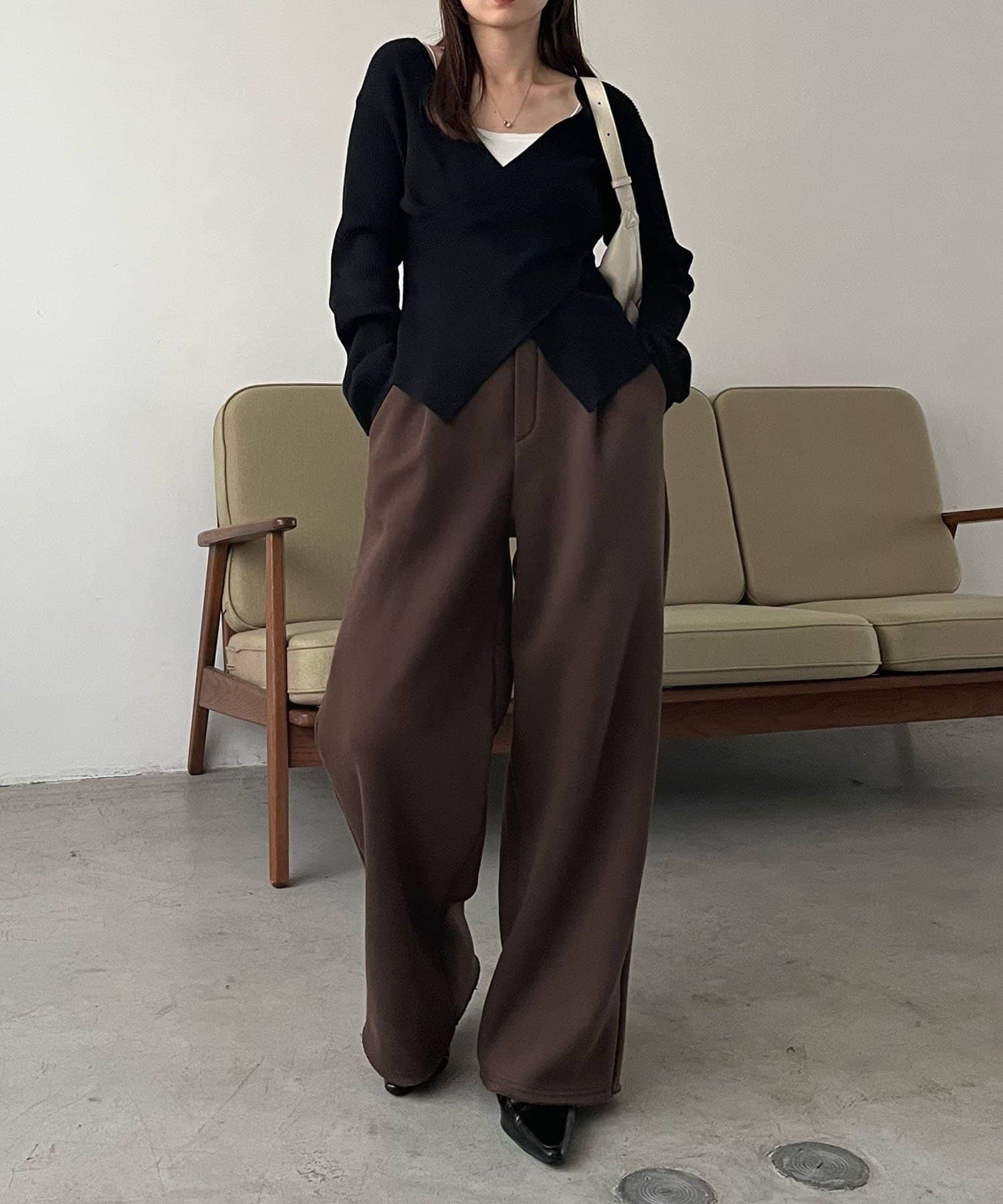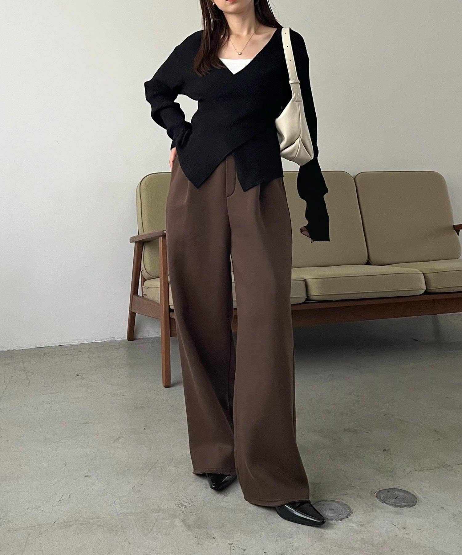 【ブラウン着用アイテム①】クロスVネックニット