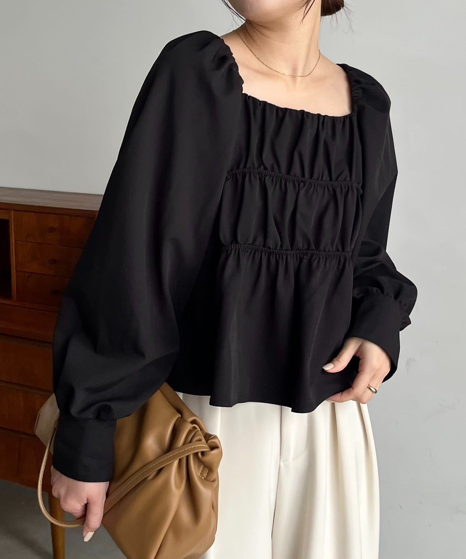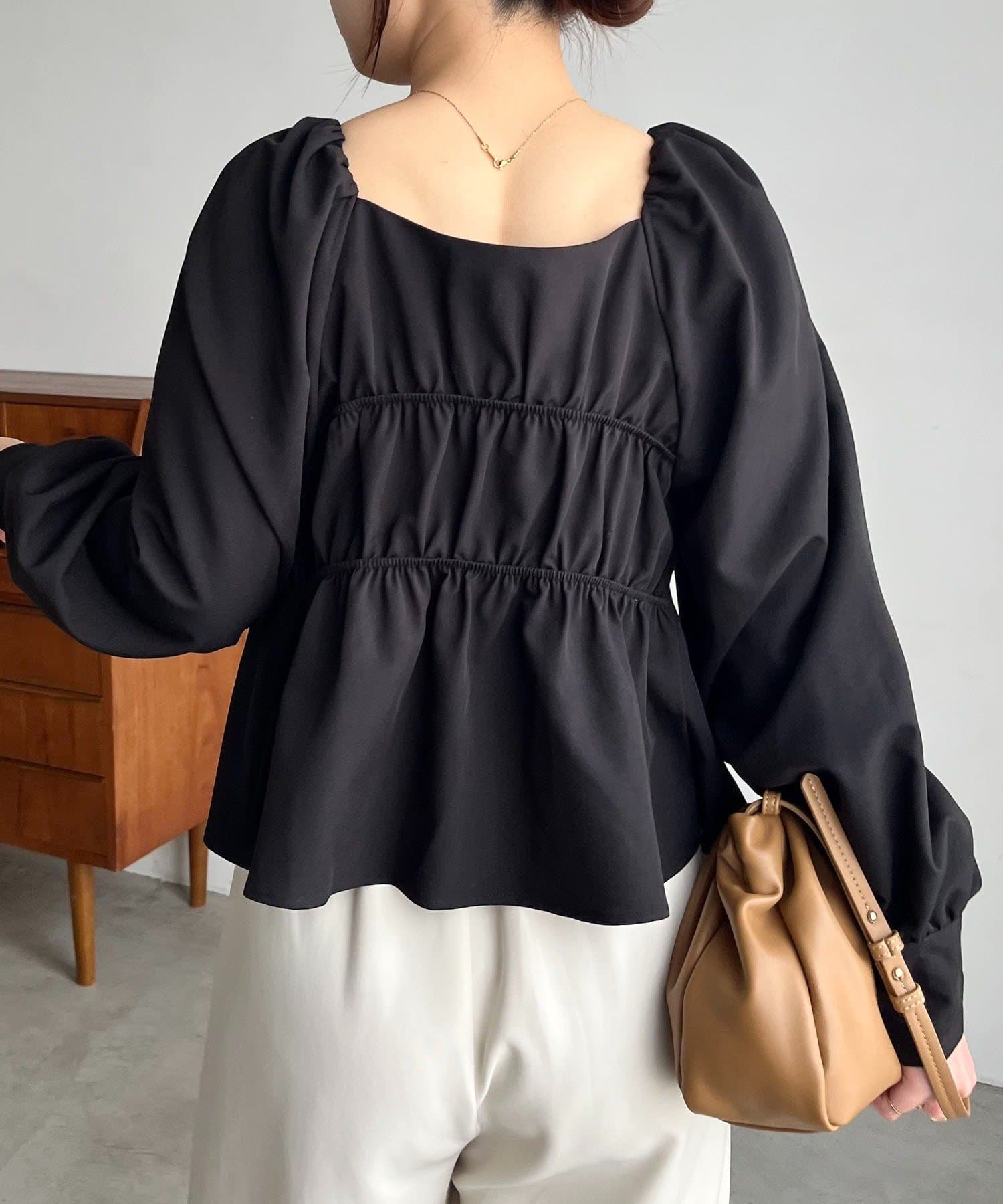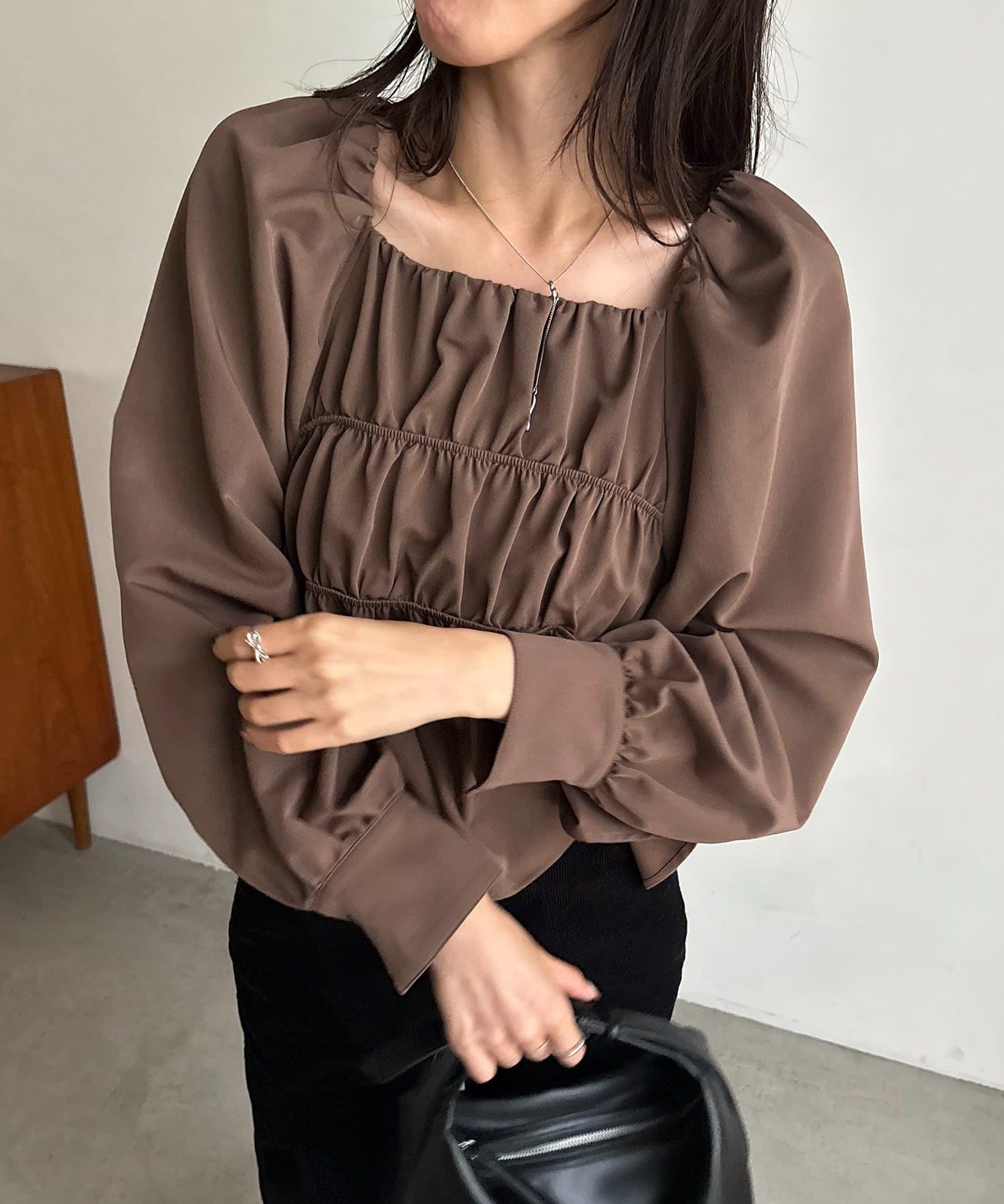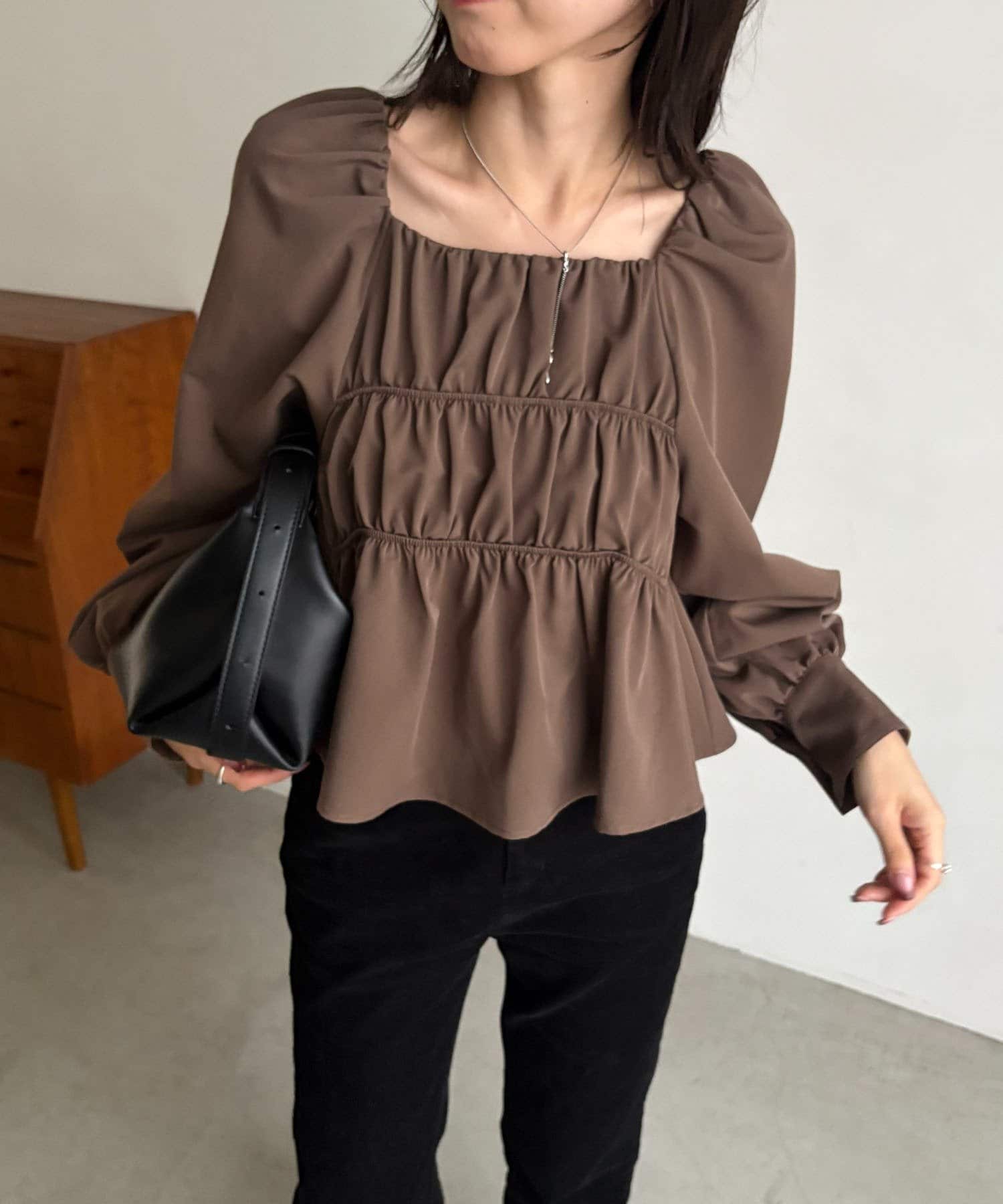 きれいめ見えするスクエアネックのブラウス