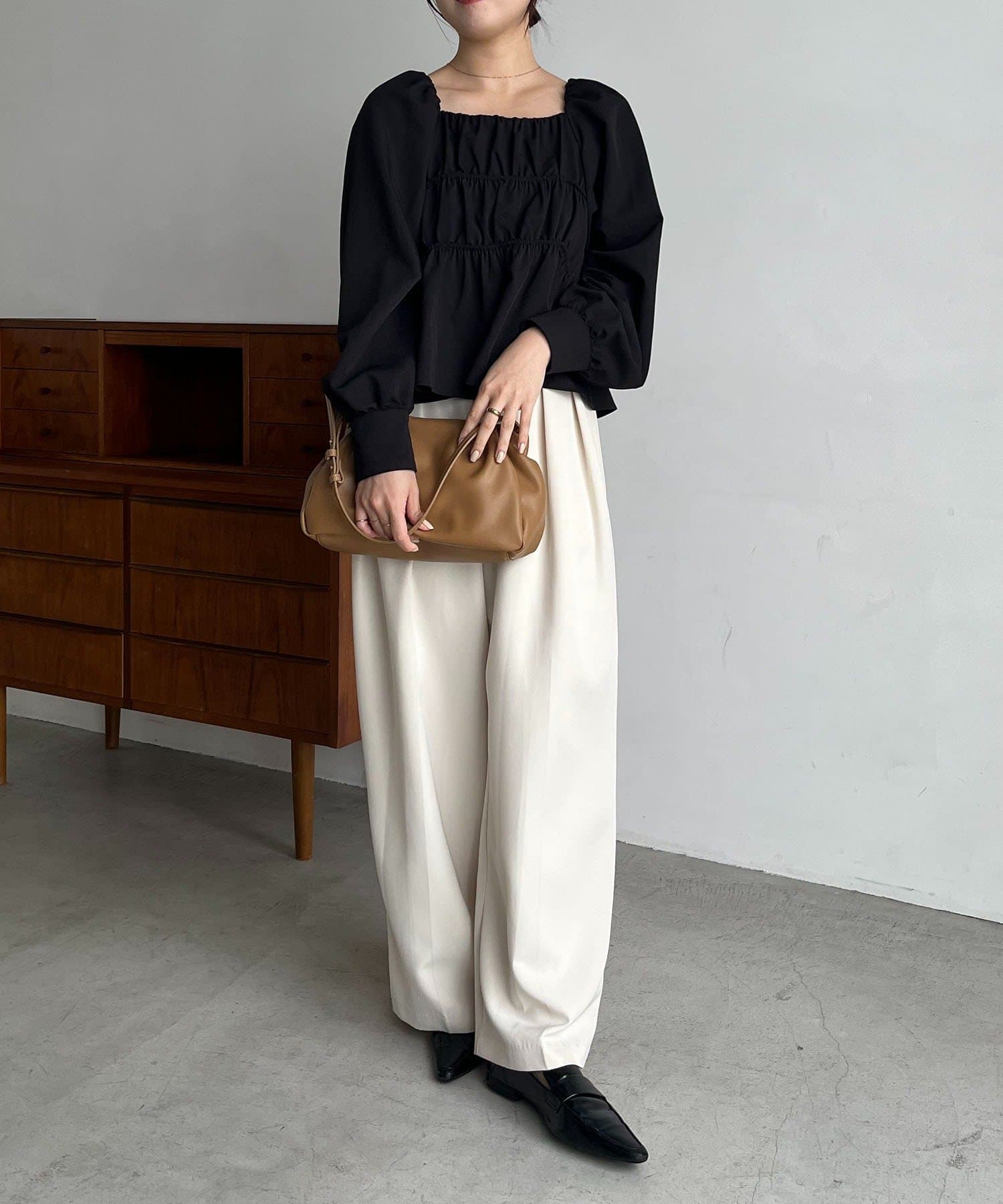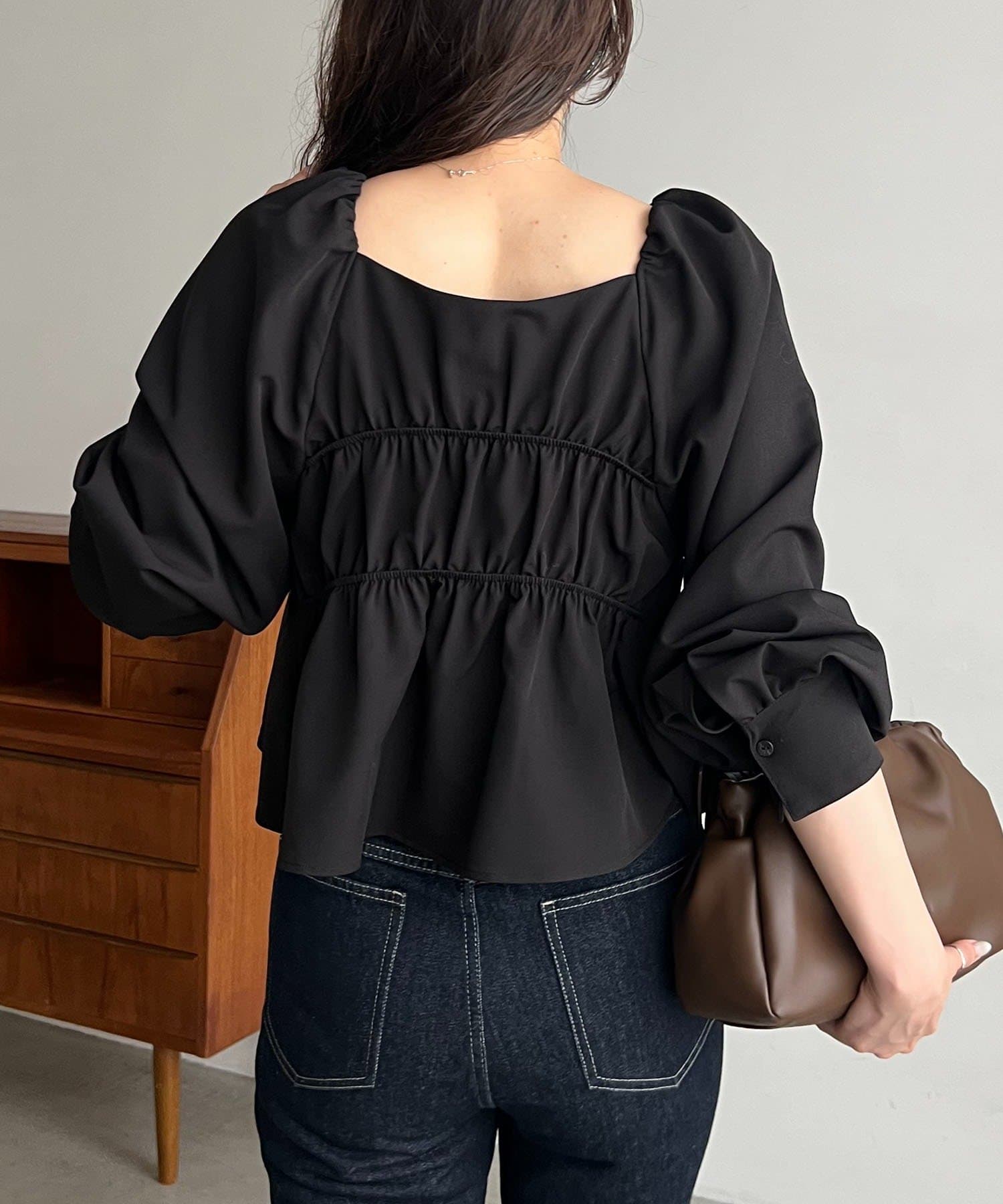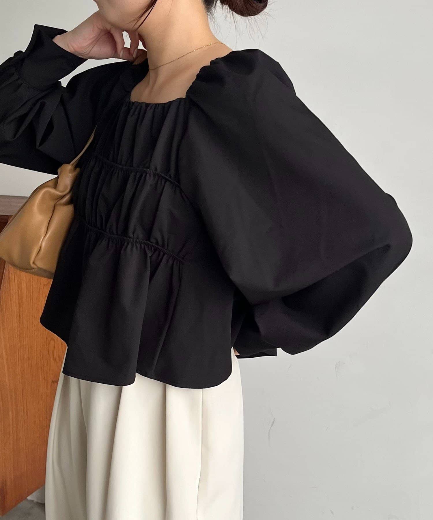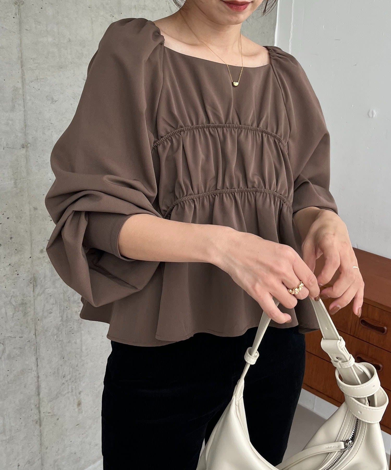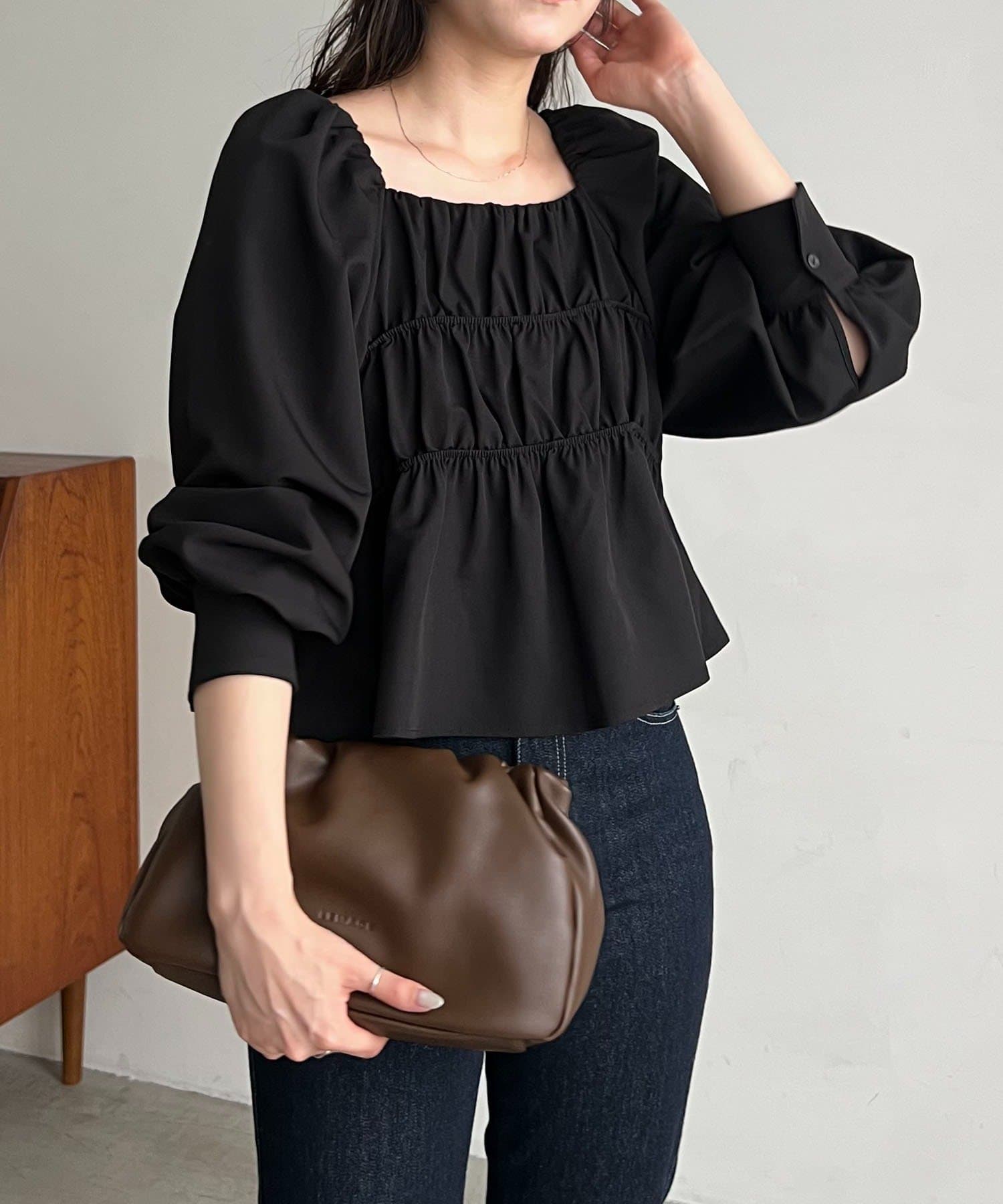 きれいめ見えするスクエアネックのブラウス