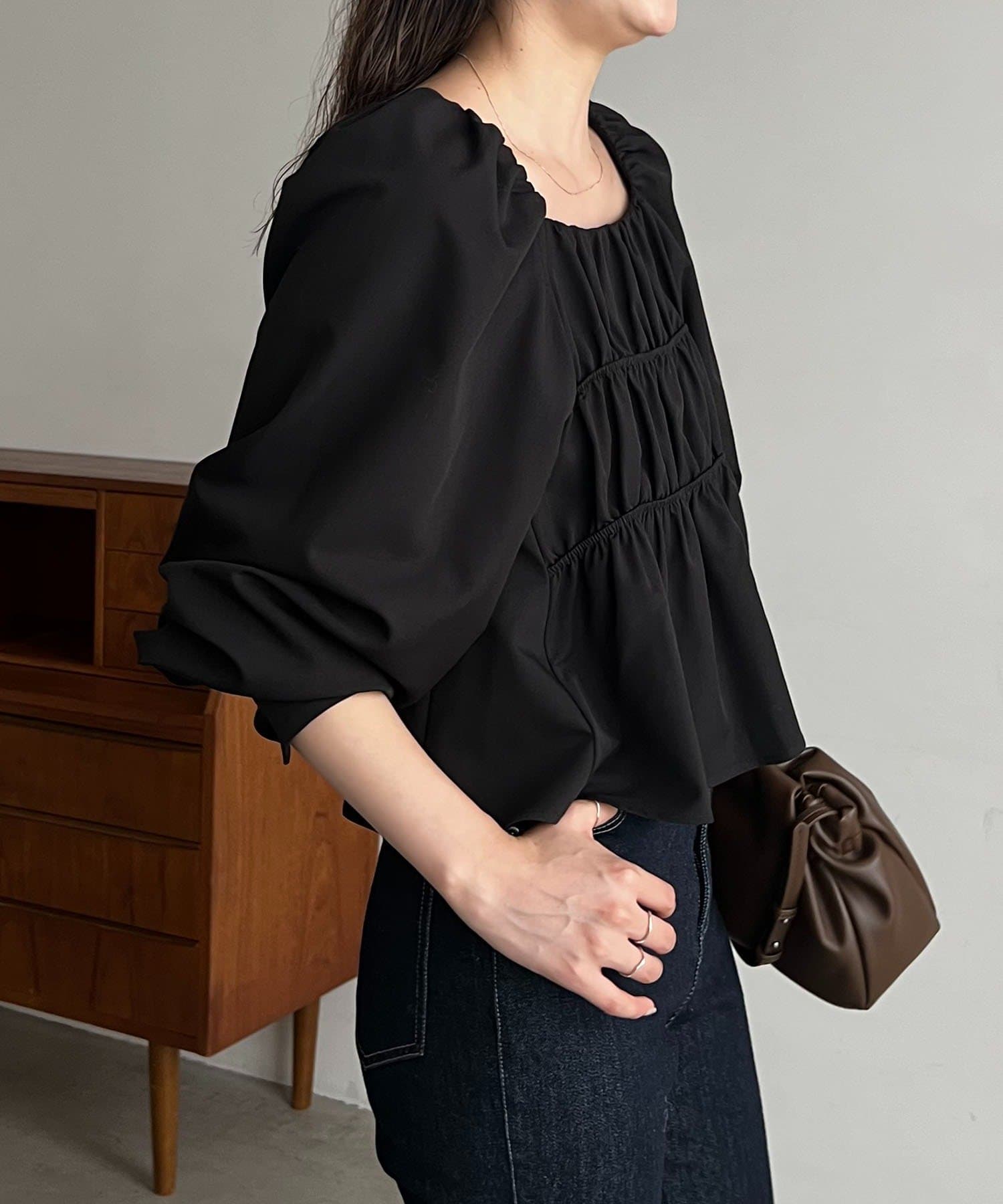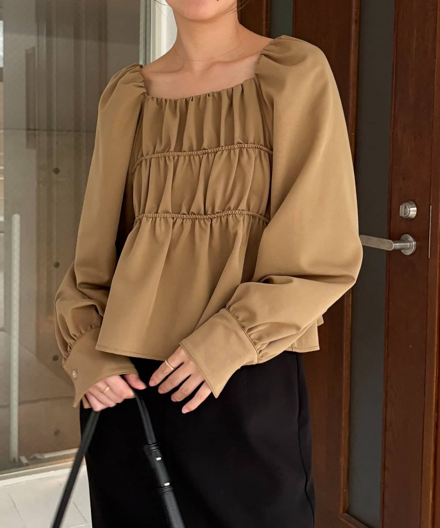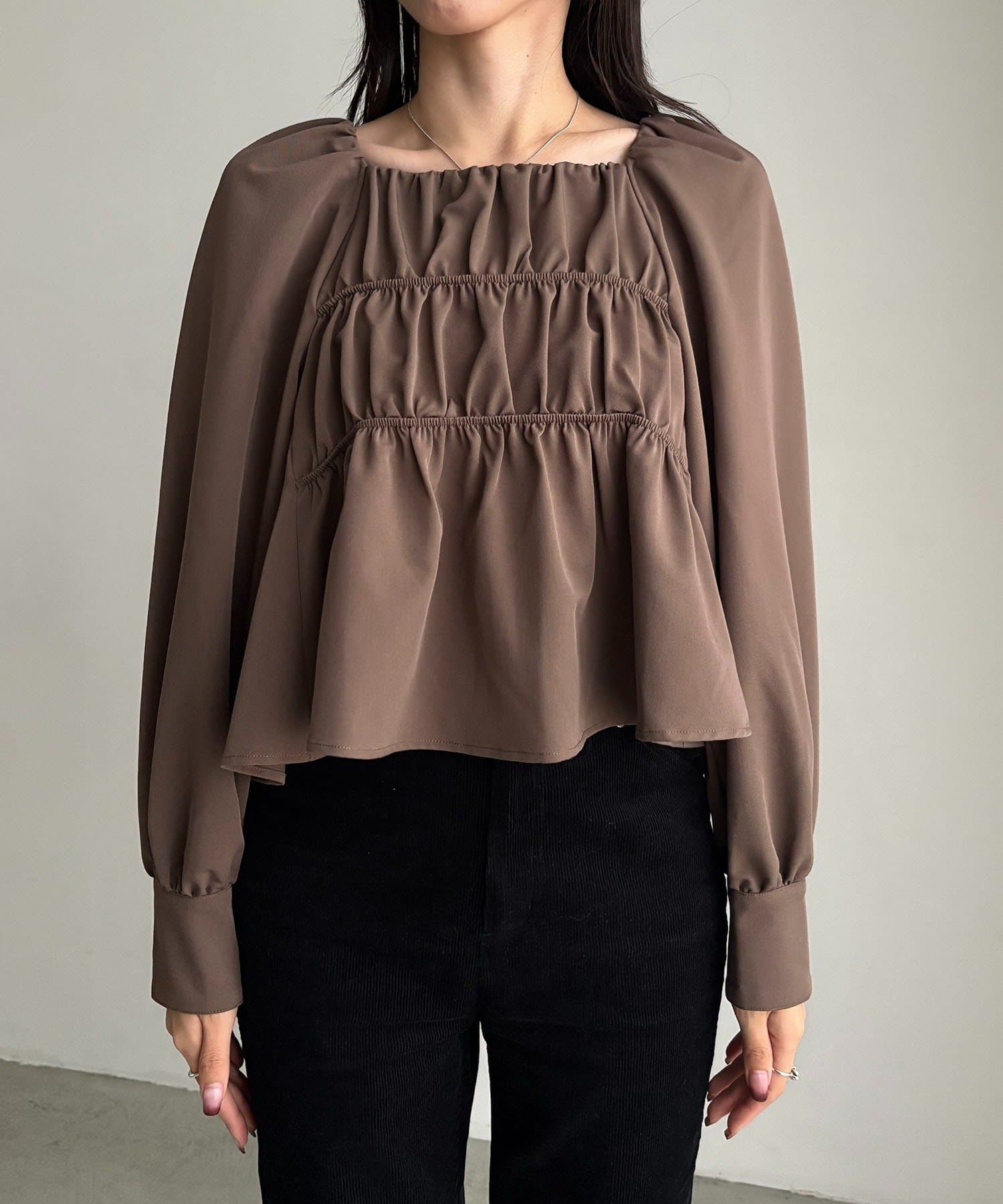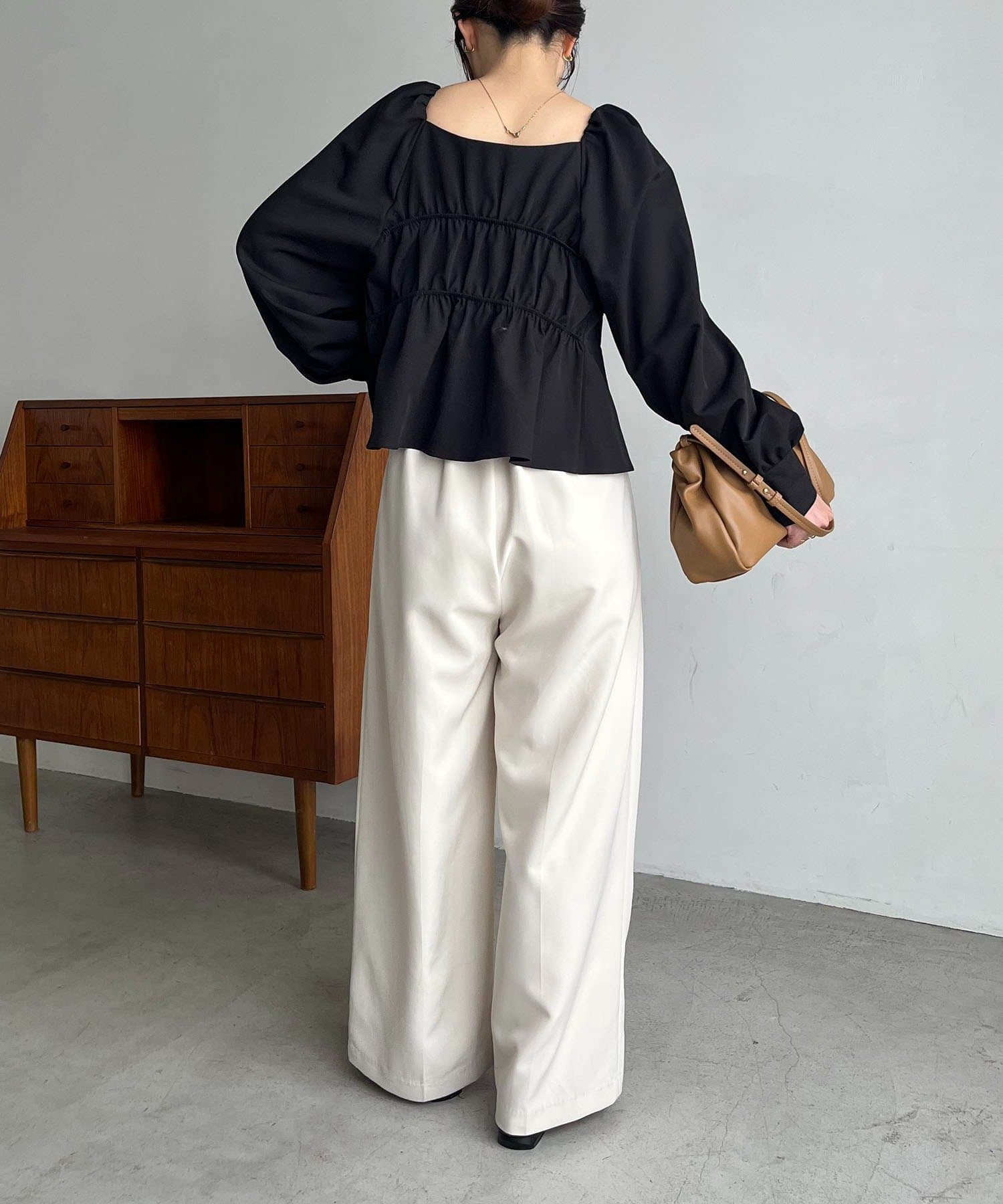 きれいめ見えするスクエアネックのブラウス