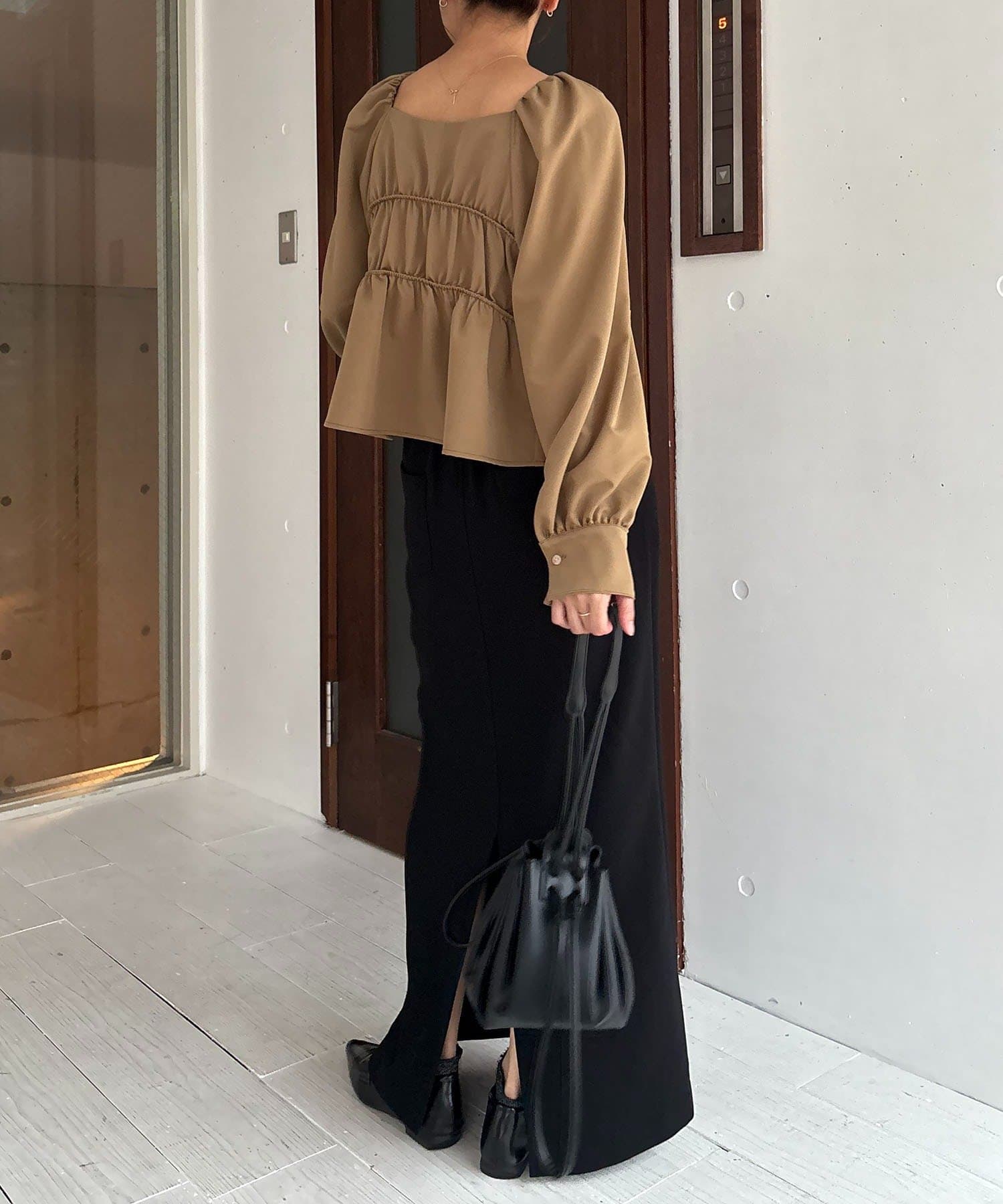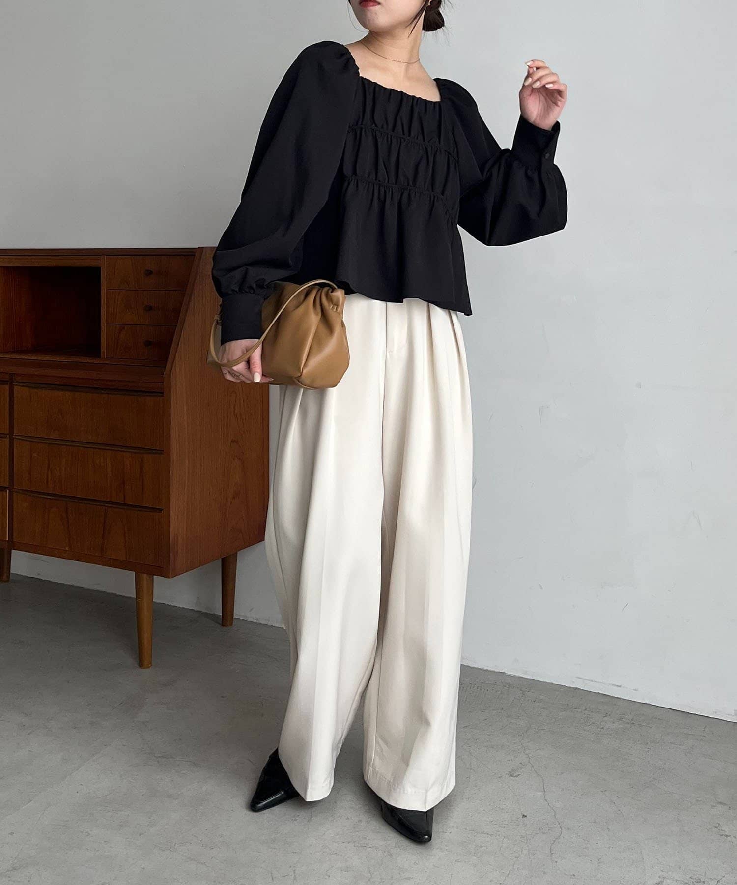 ・パフスリーブのたっぷりした袖もポイントに