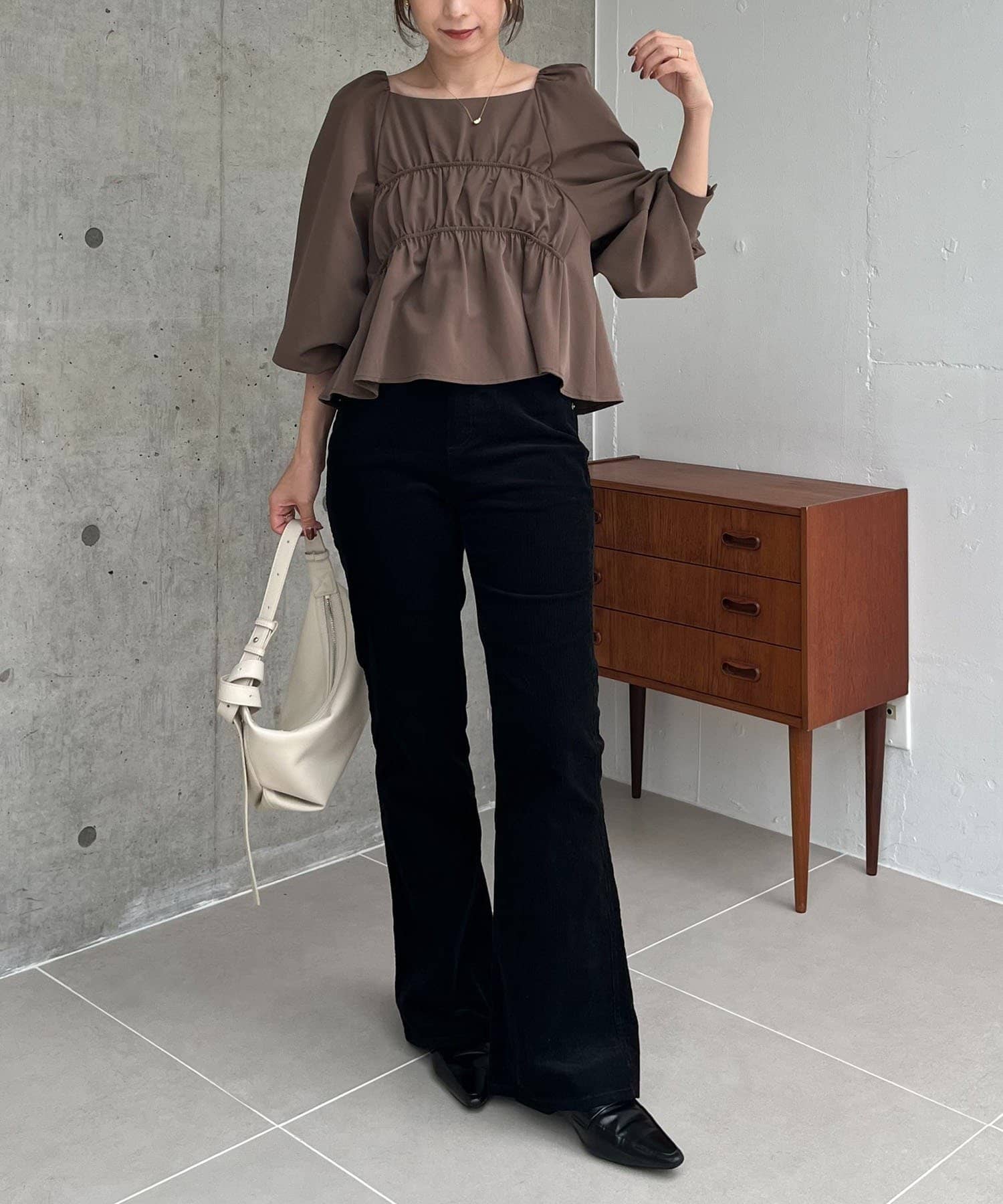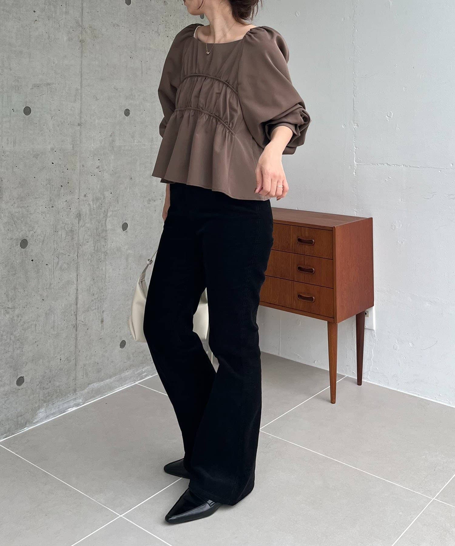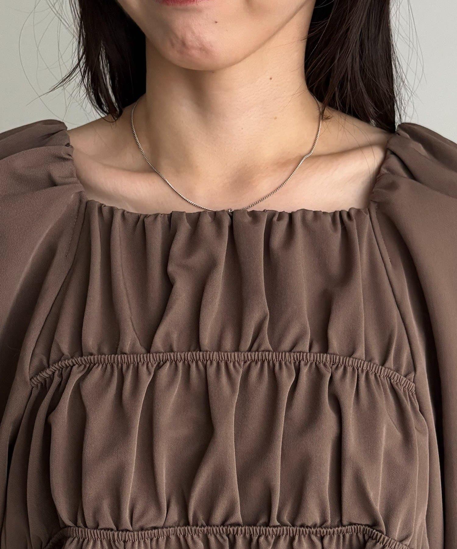 ・バストのギャザーでメリハリのあるシルエットに