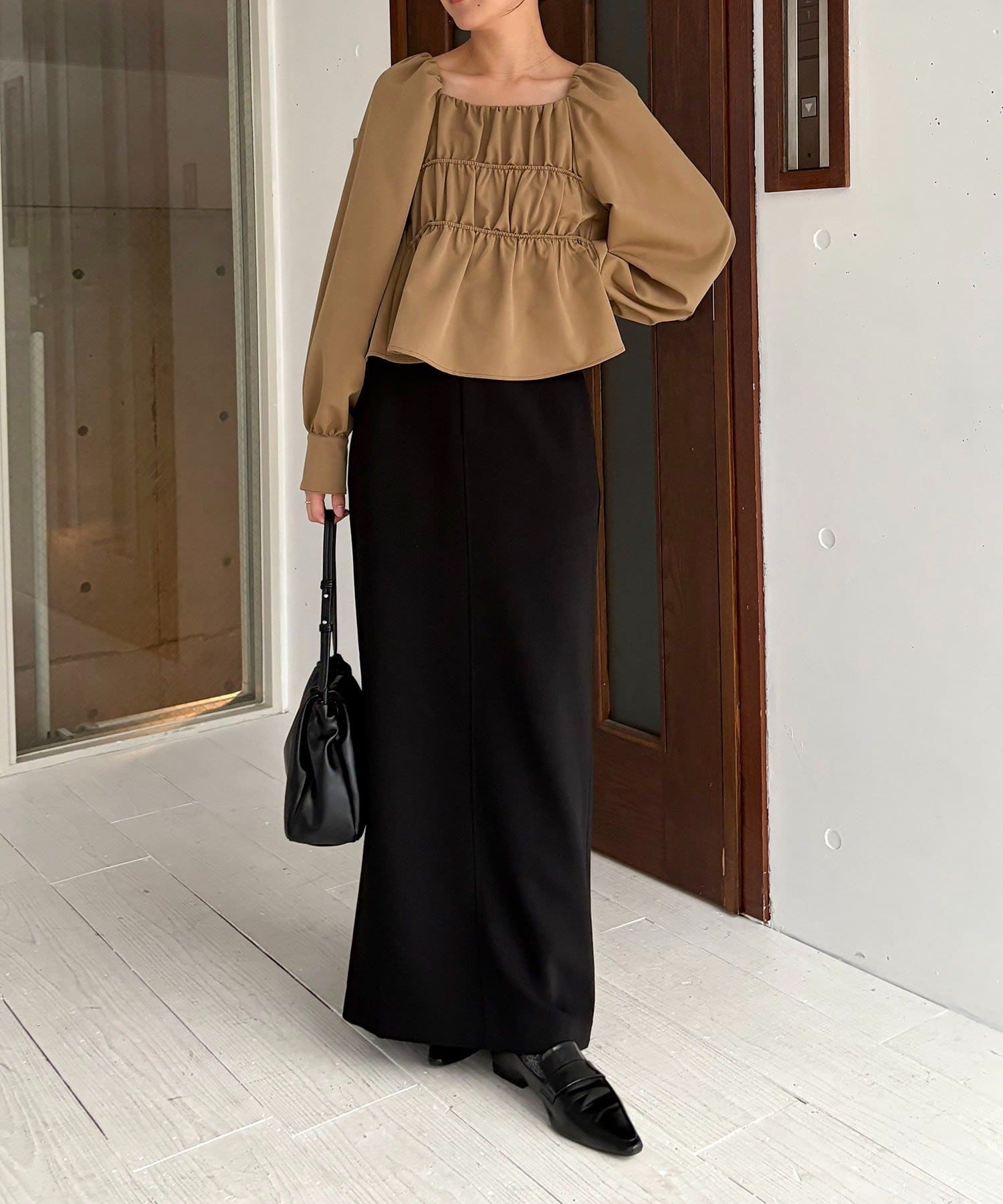 【ベージュ着用アイテム】マキシIラインスカート