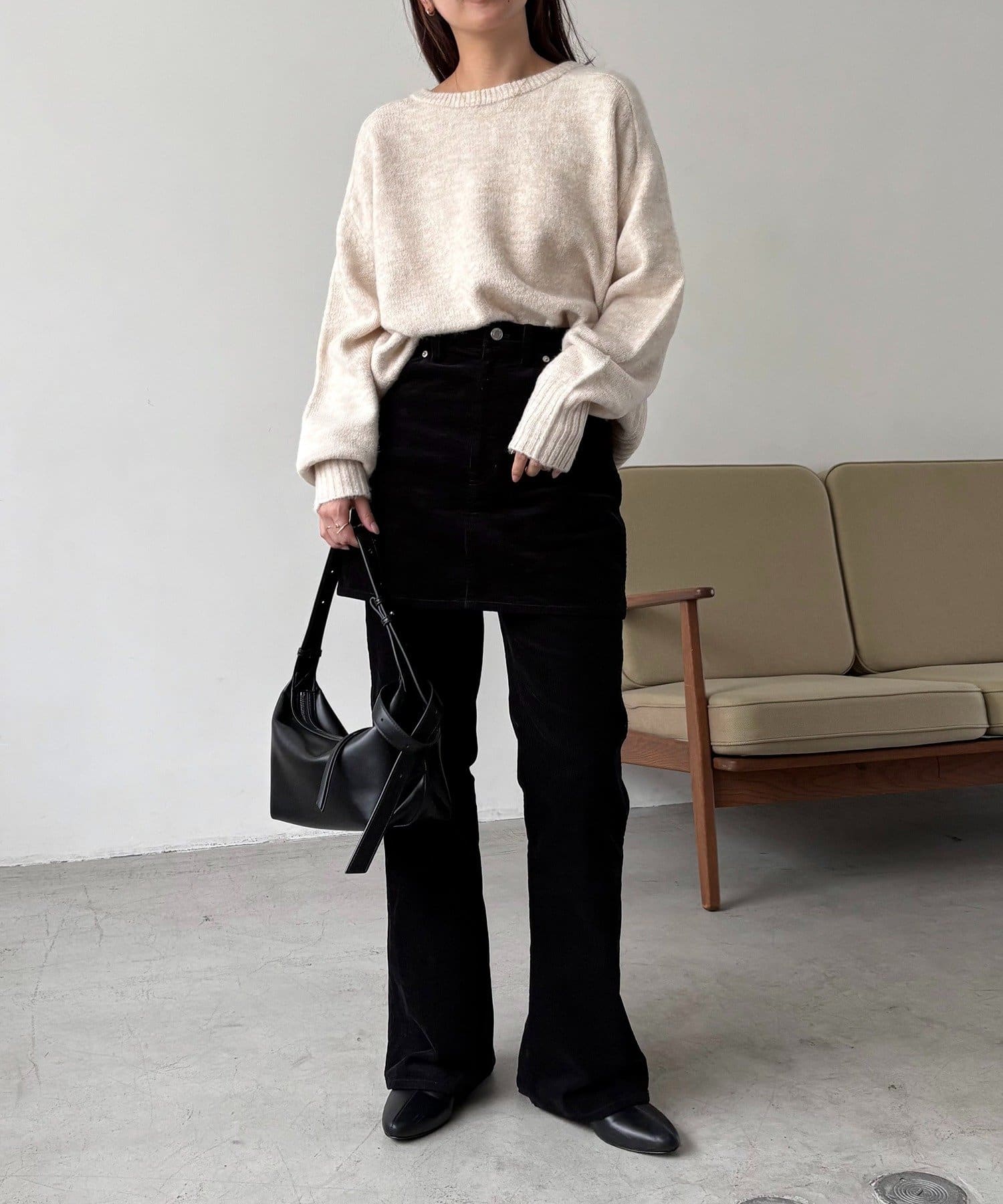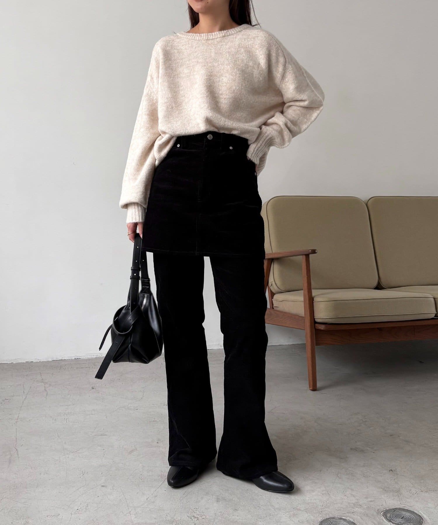 【アイボリー着用アイテム】コーデュロイフレアパンツ、コーデュロイ台形スカート