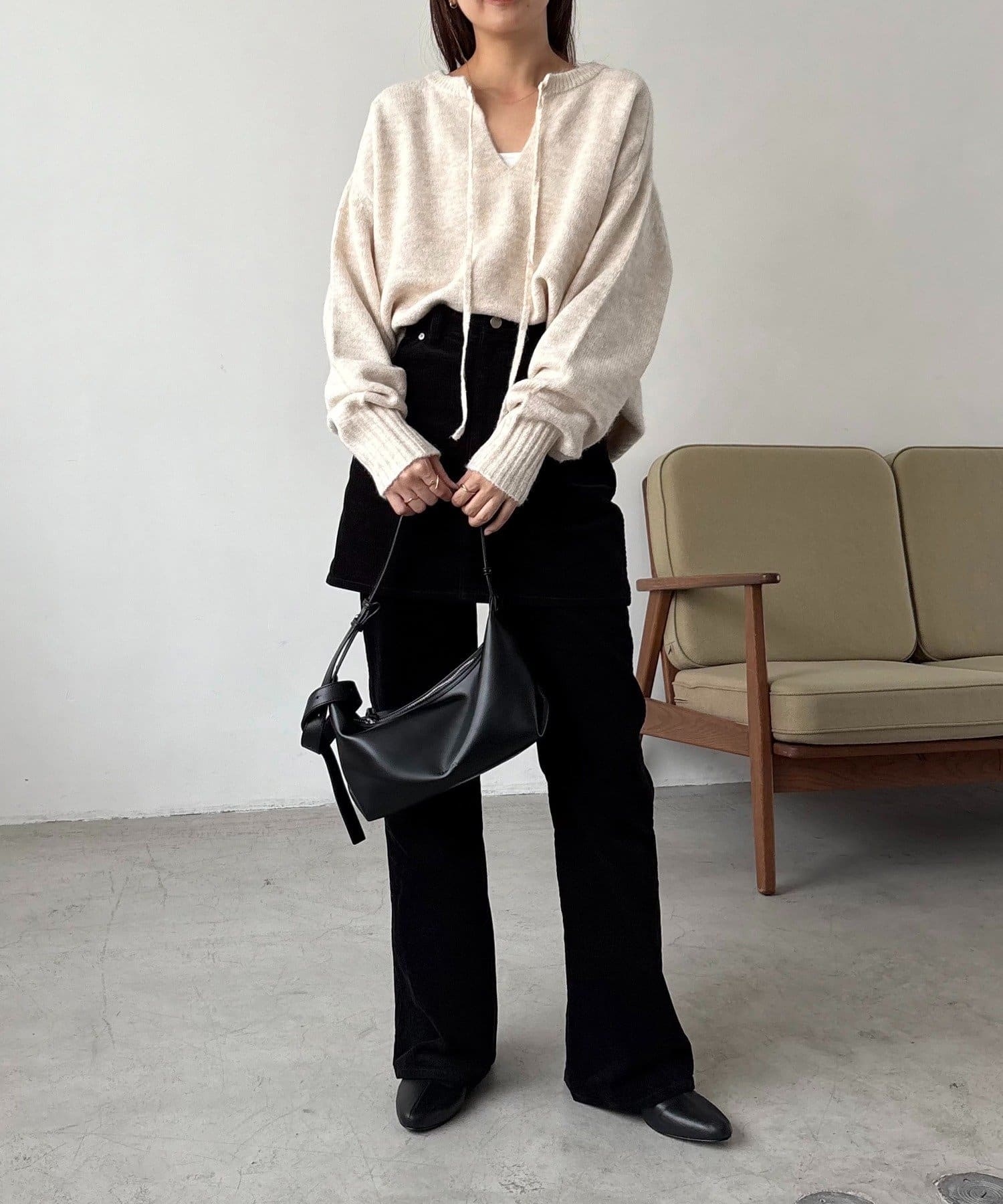 ・ワイドパンツやマキシスカートなどボトムを選ばずに着られる