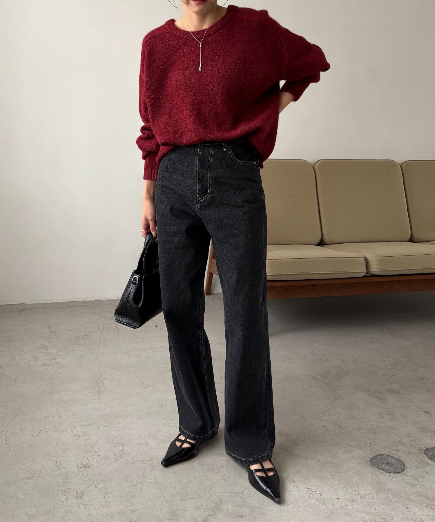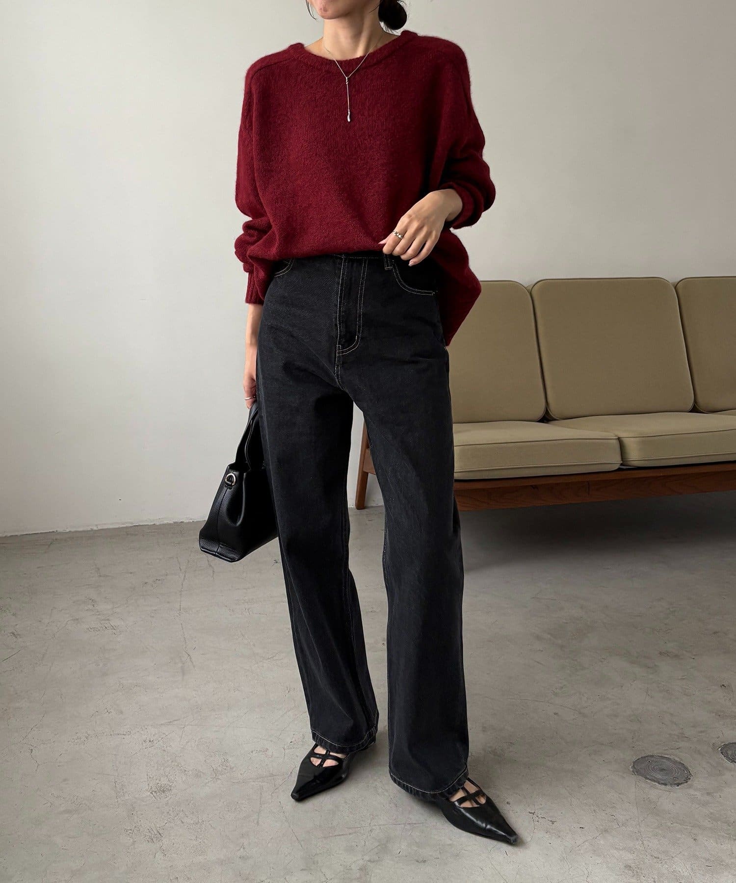 【ボルドー着用アイテム】13ozハイウエストストレートデニム