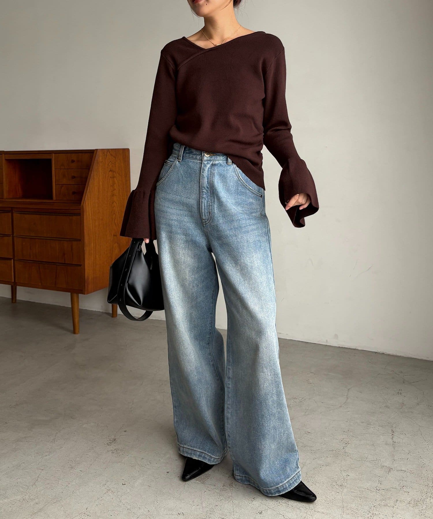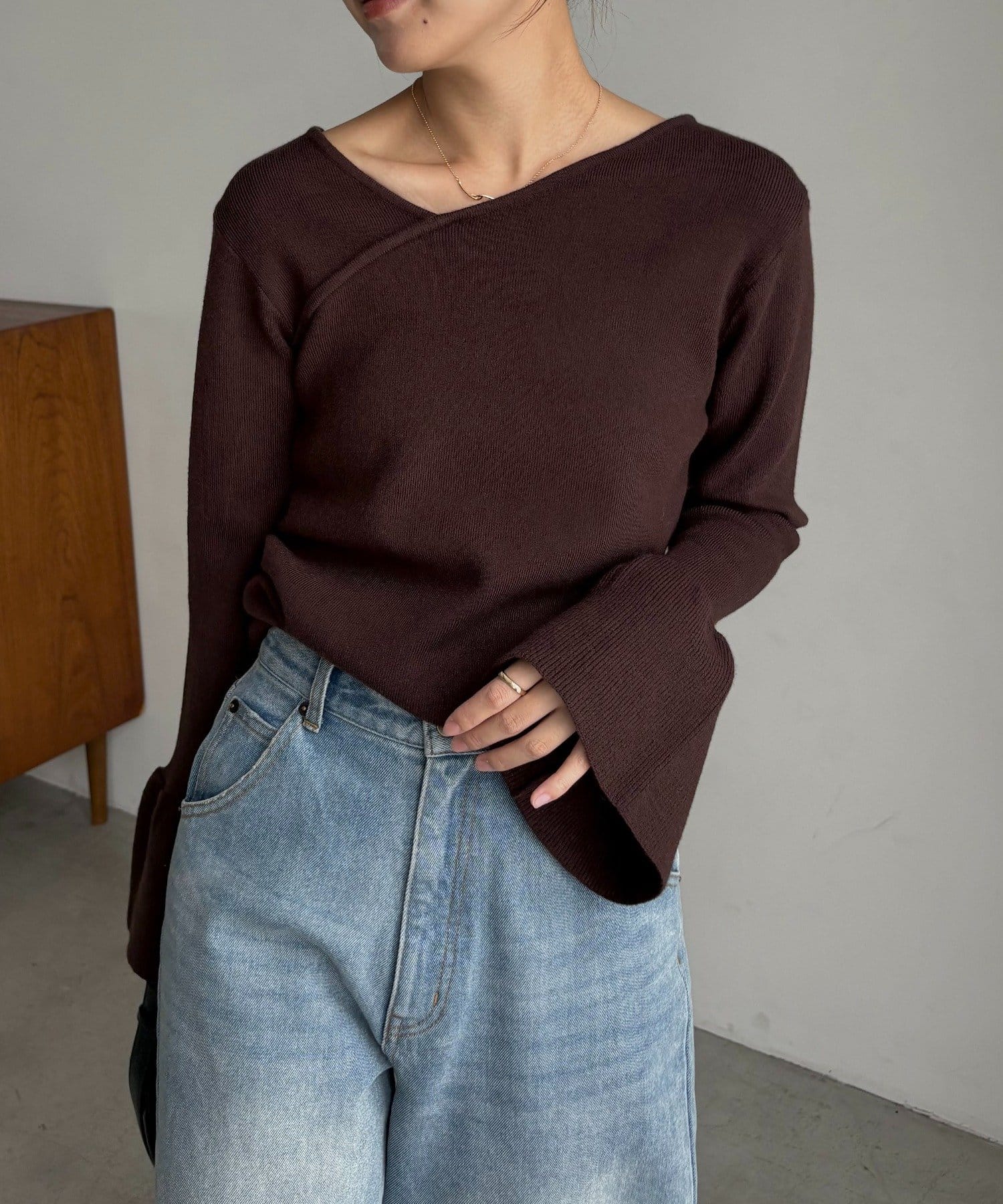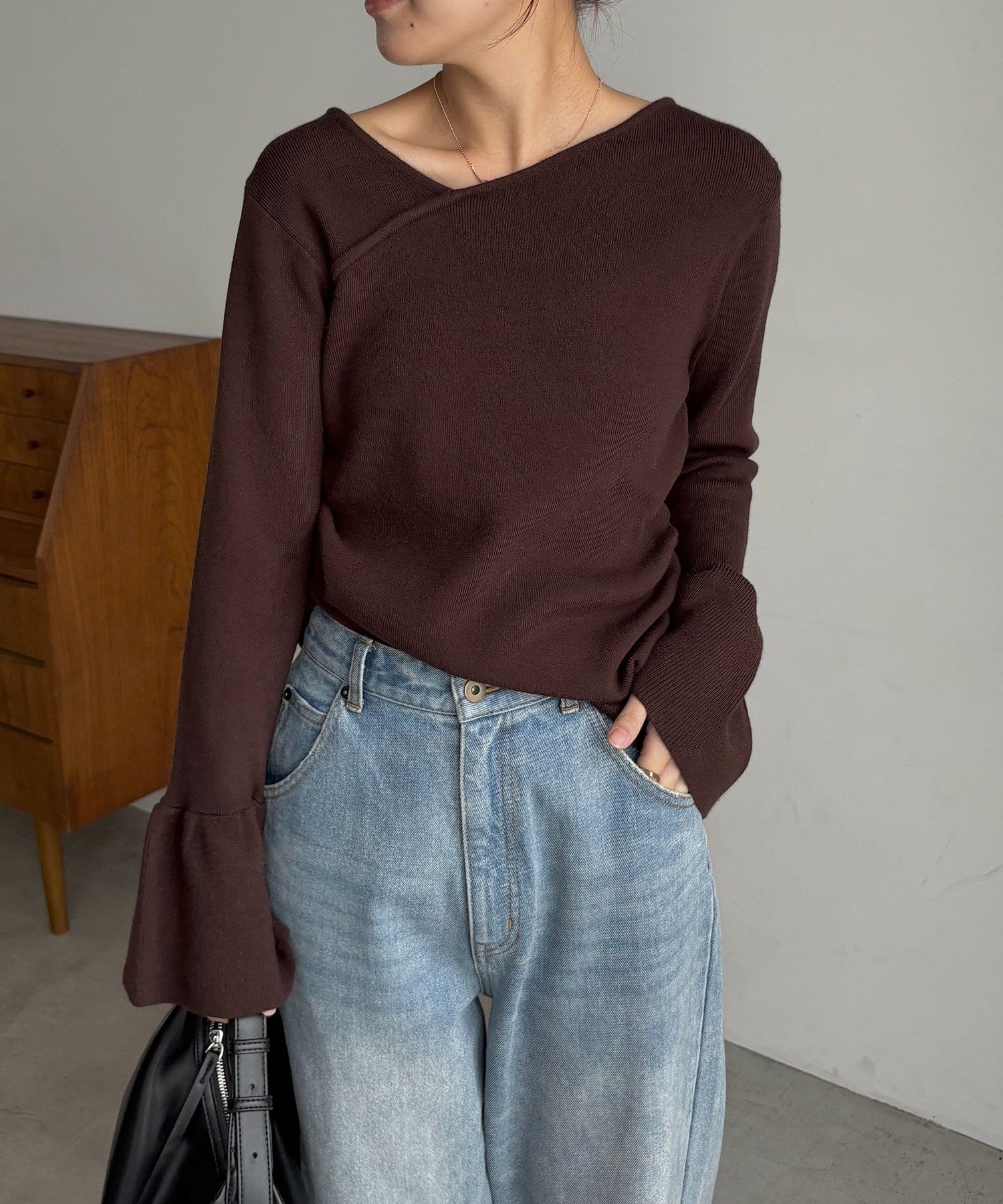 【CAPRICIEUX LE'MAGE】フレア袖アシメネックニット