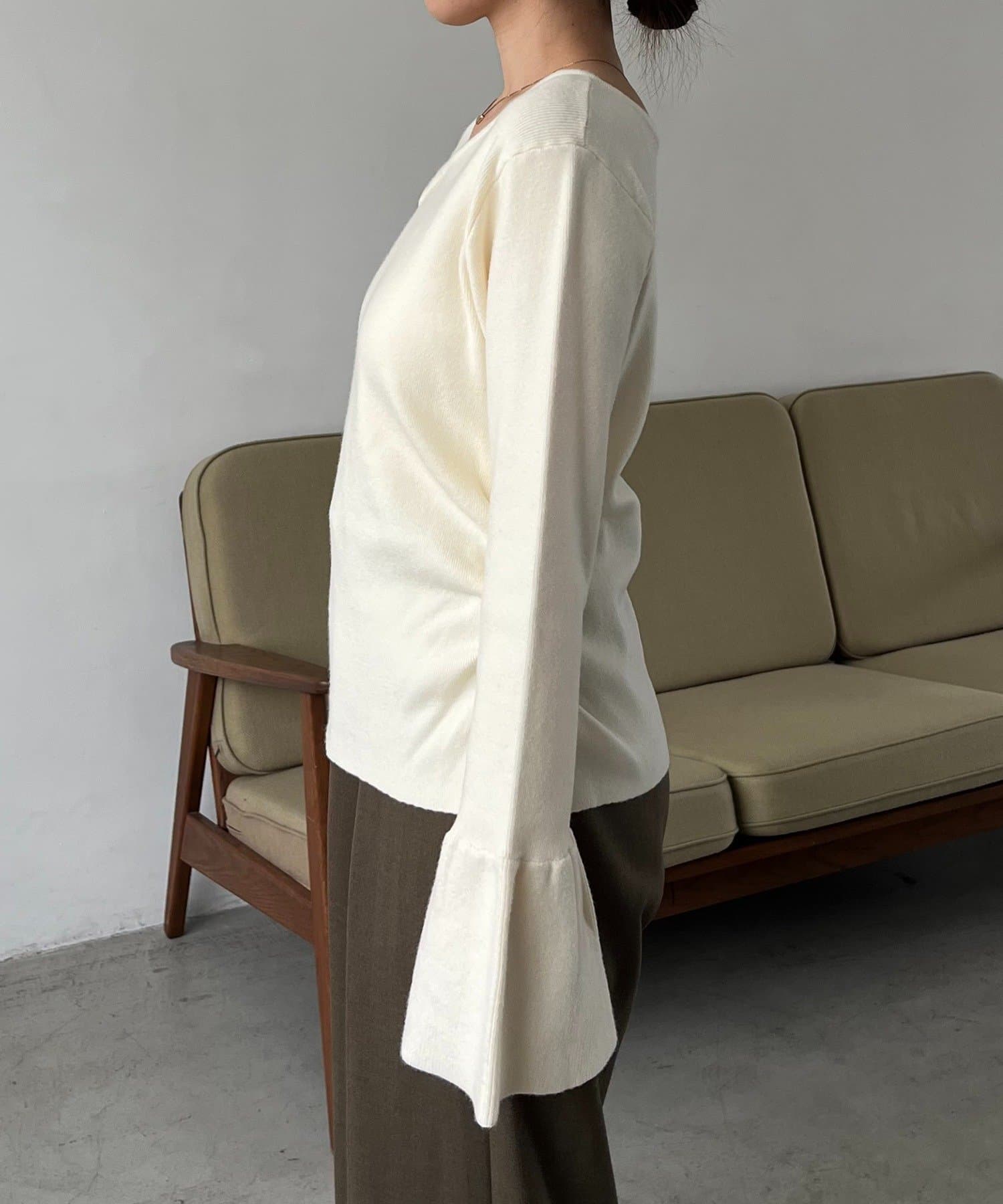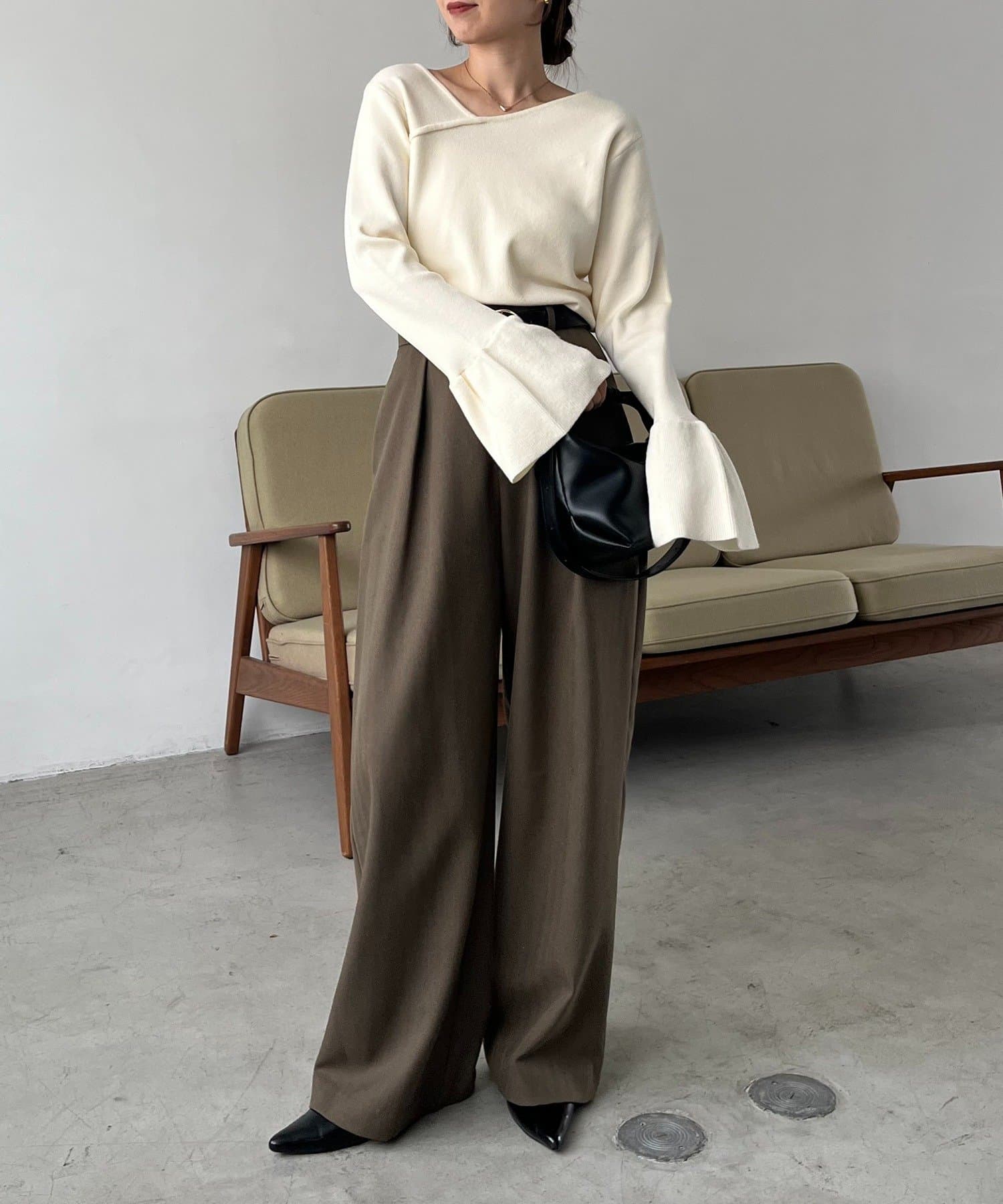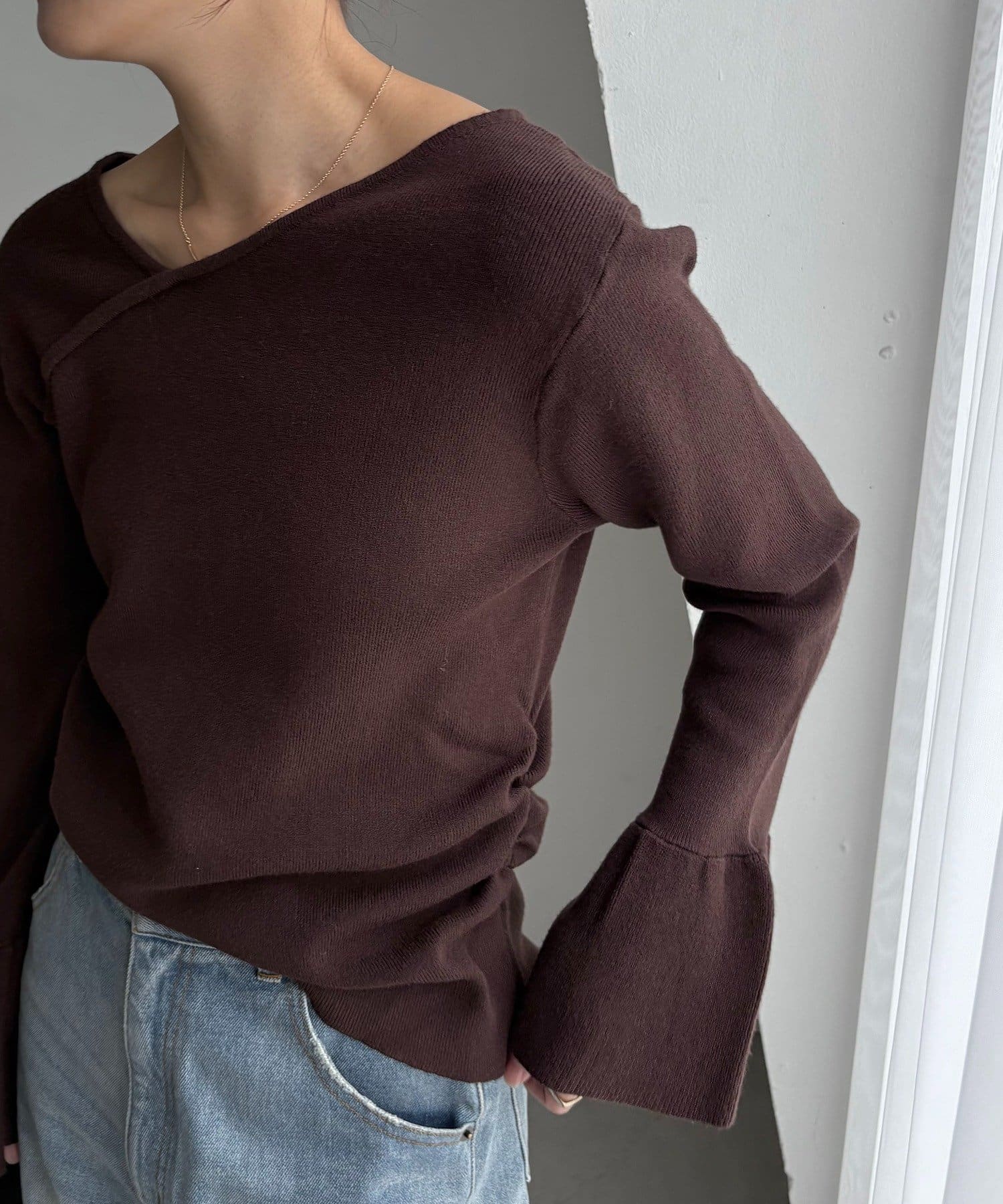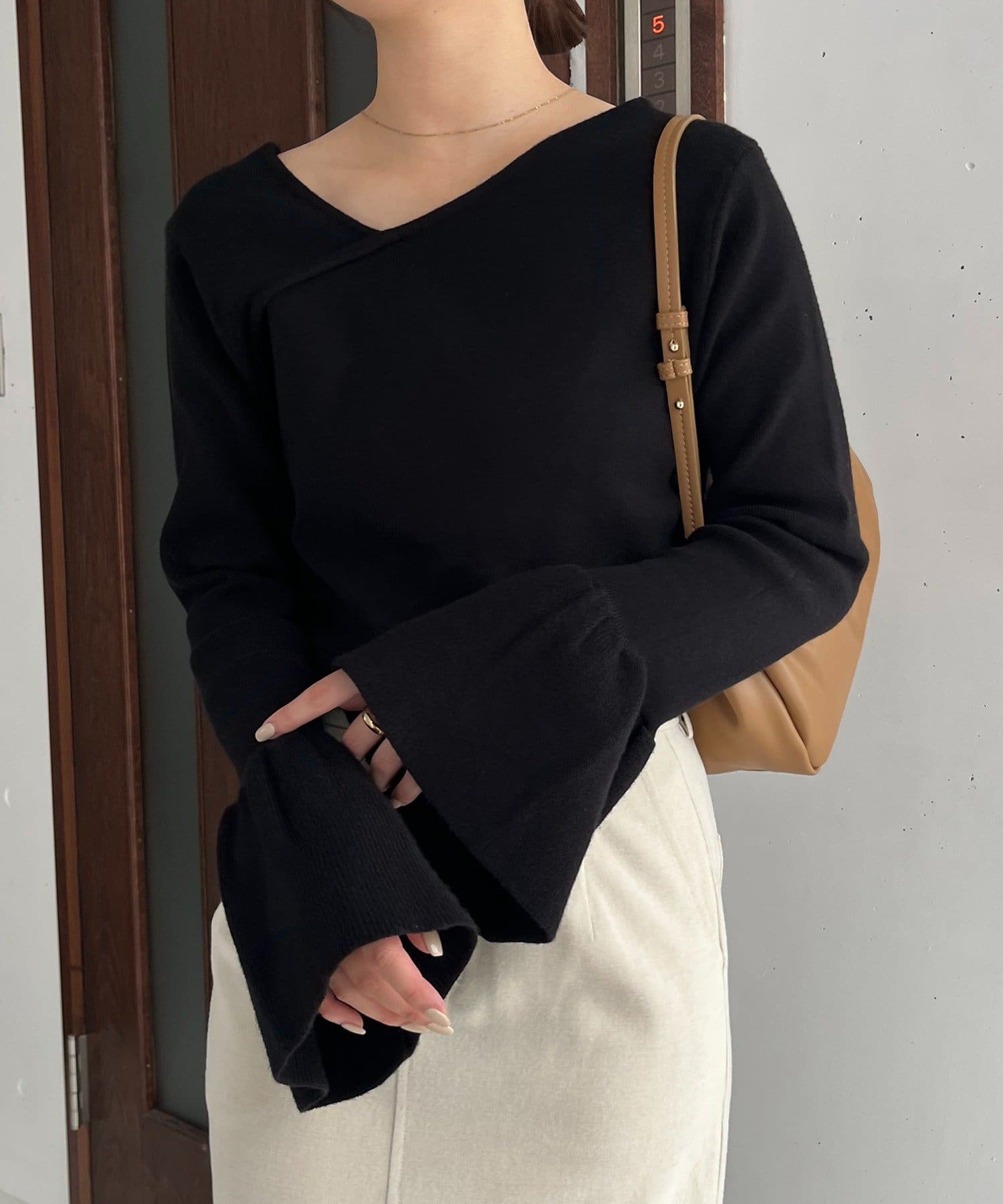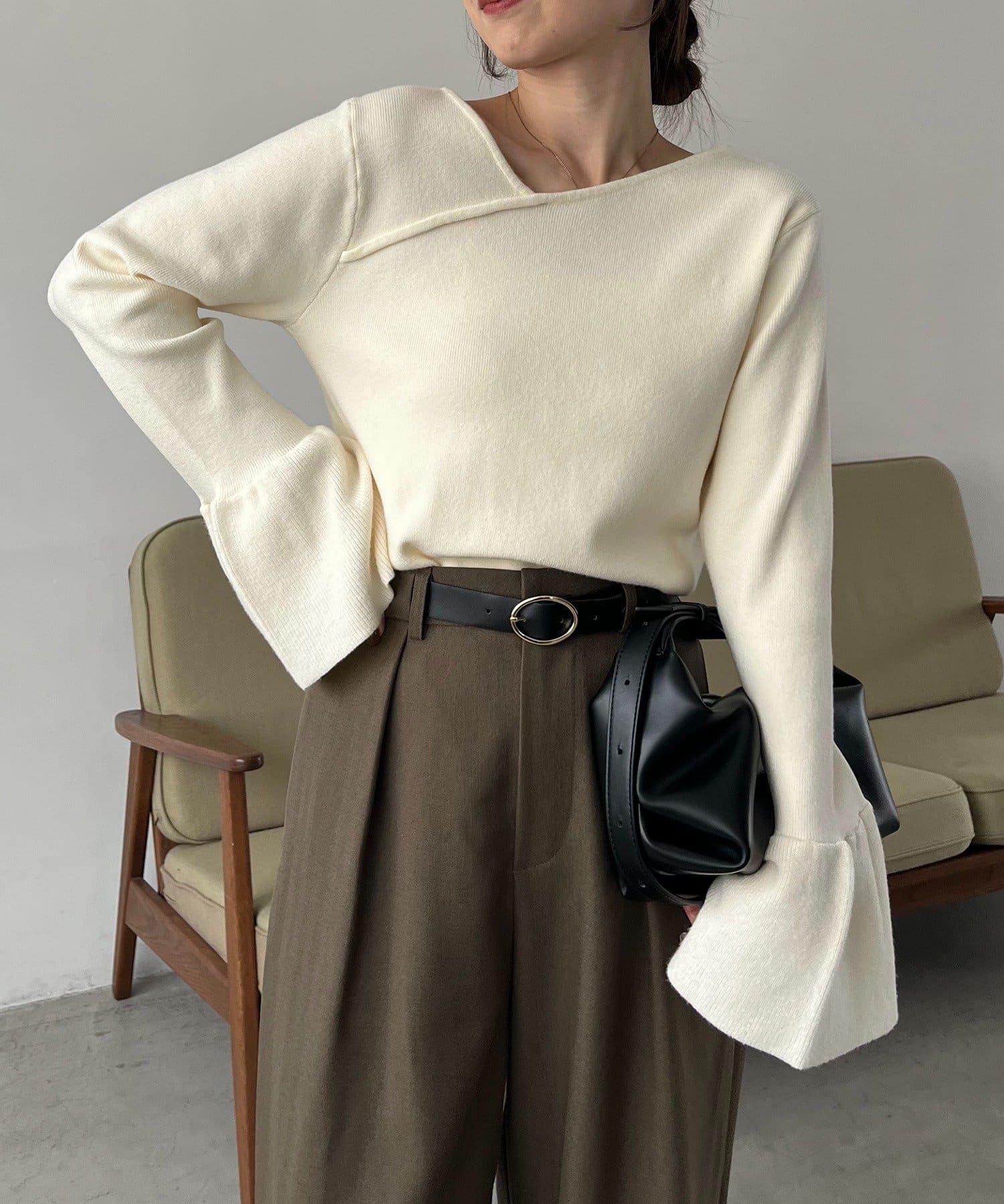 TOP > OUTLET > レディース > トップス > ニット/セーター > 【CAPRICIEUX LE'MAGE】フレア袖アシメネックニット