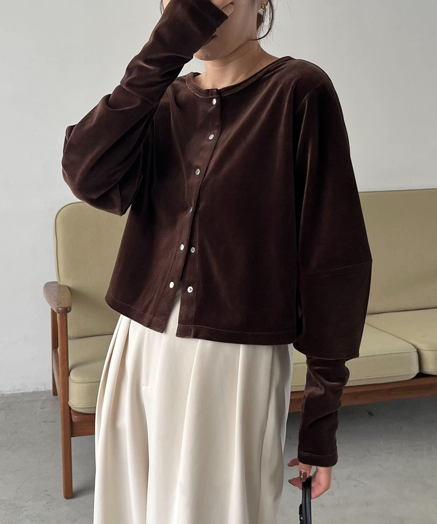 TOP > CAPRICIEUX LE'MAGE > レディース > トップス > Tシャツ/カットソー > 【HAPPY BAG対象】ベロアカーディガン