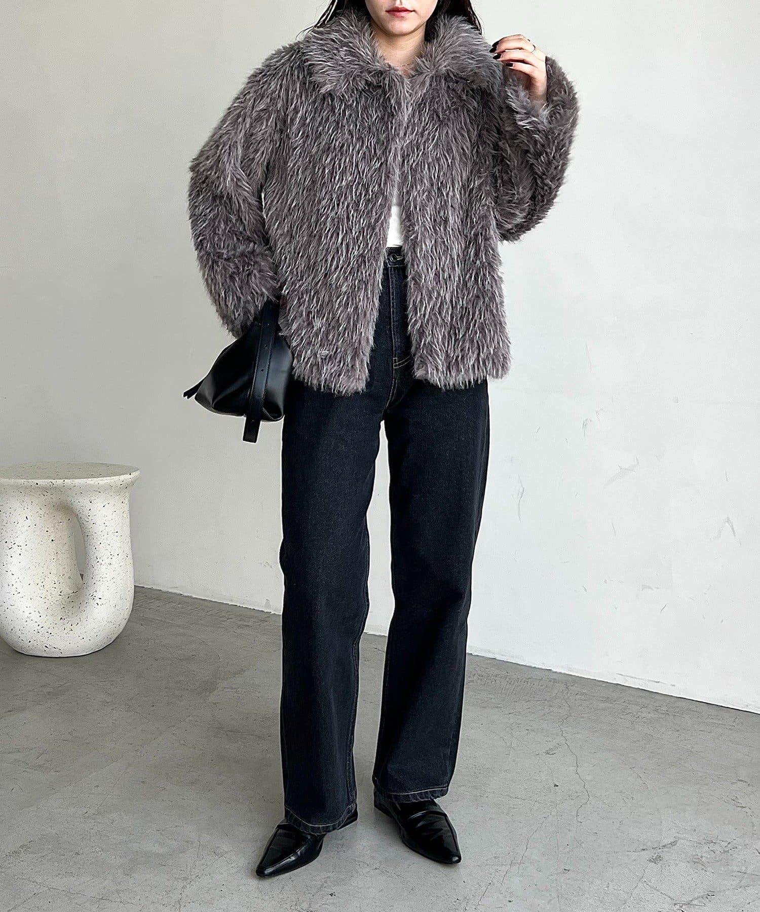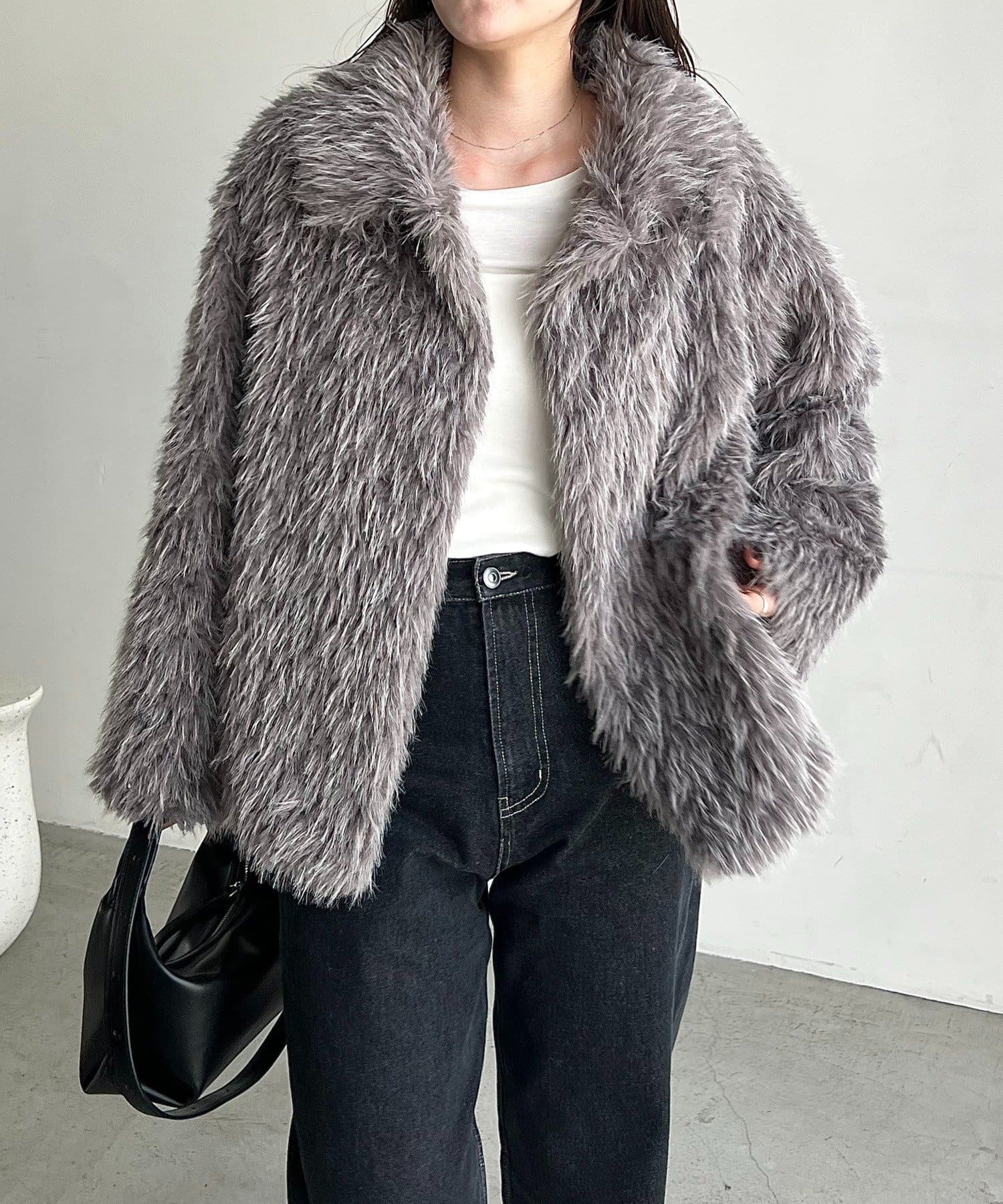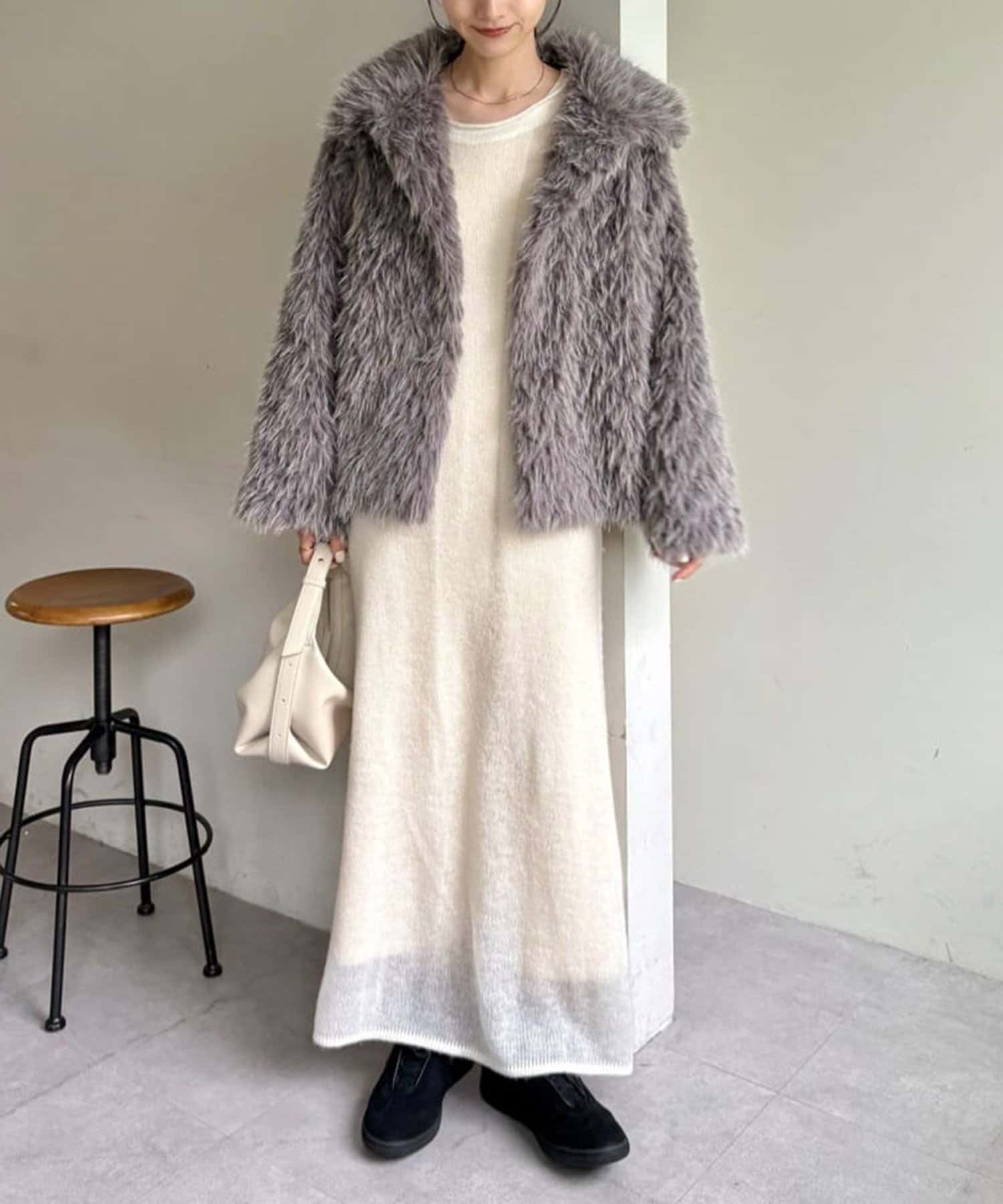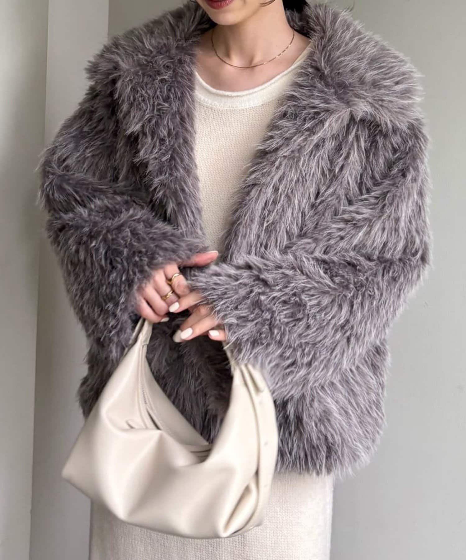 ・2種類の毛が混ざり合った立体感のあるファーを使用