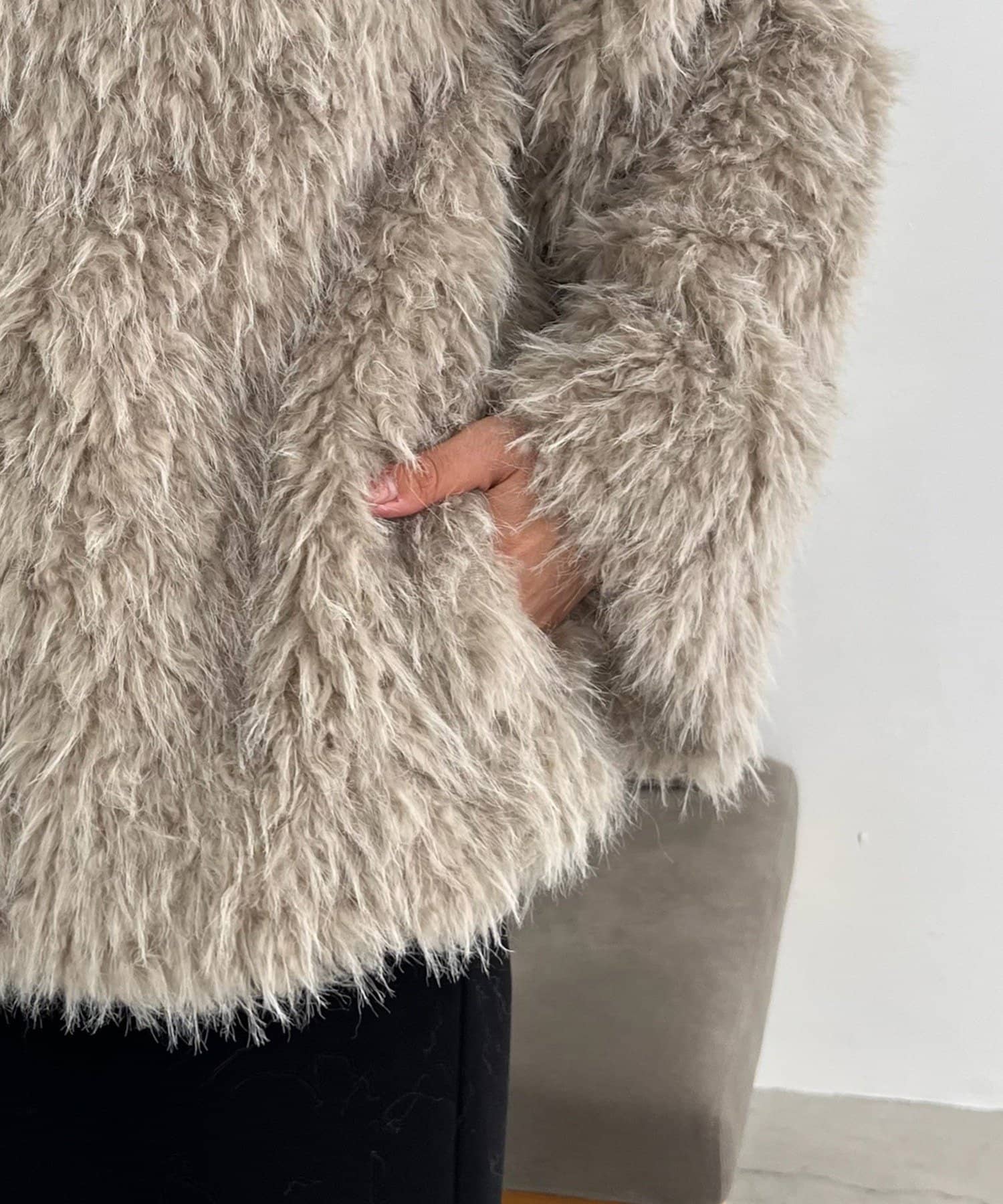 ・2種類の毛が混ざり合った立体感のあるファーを使用