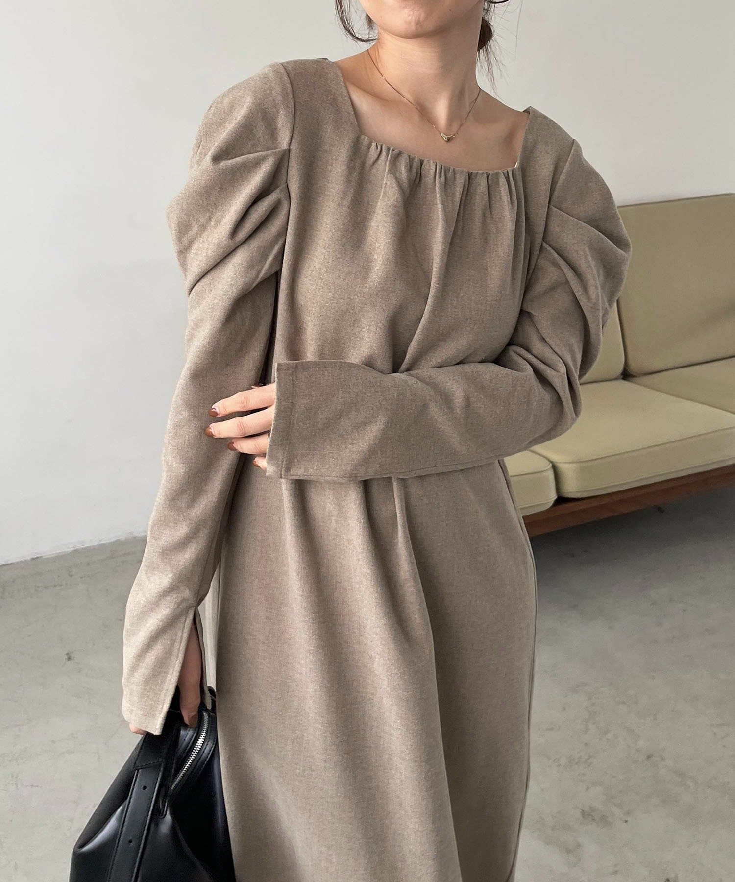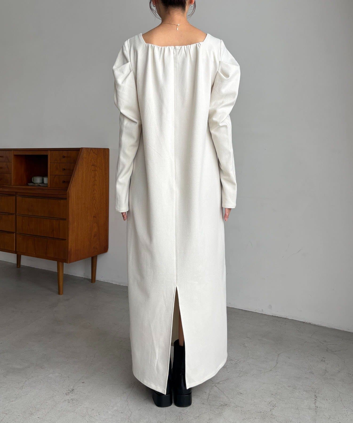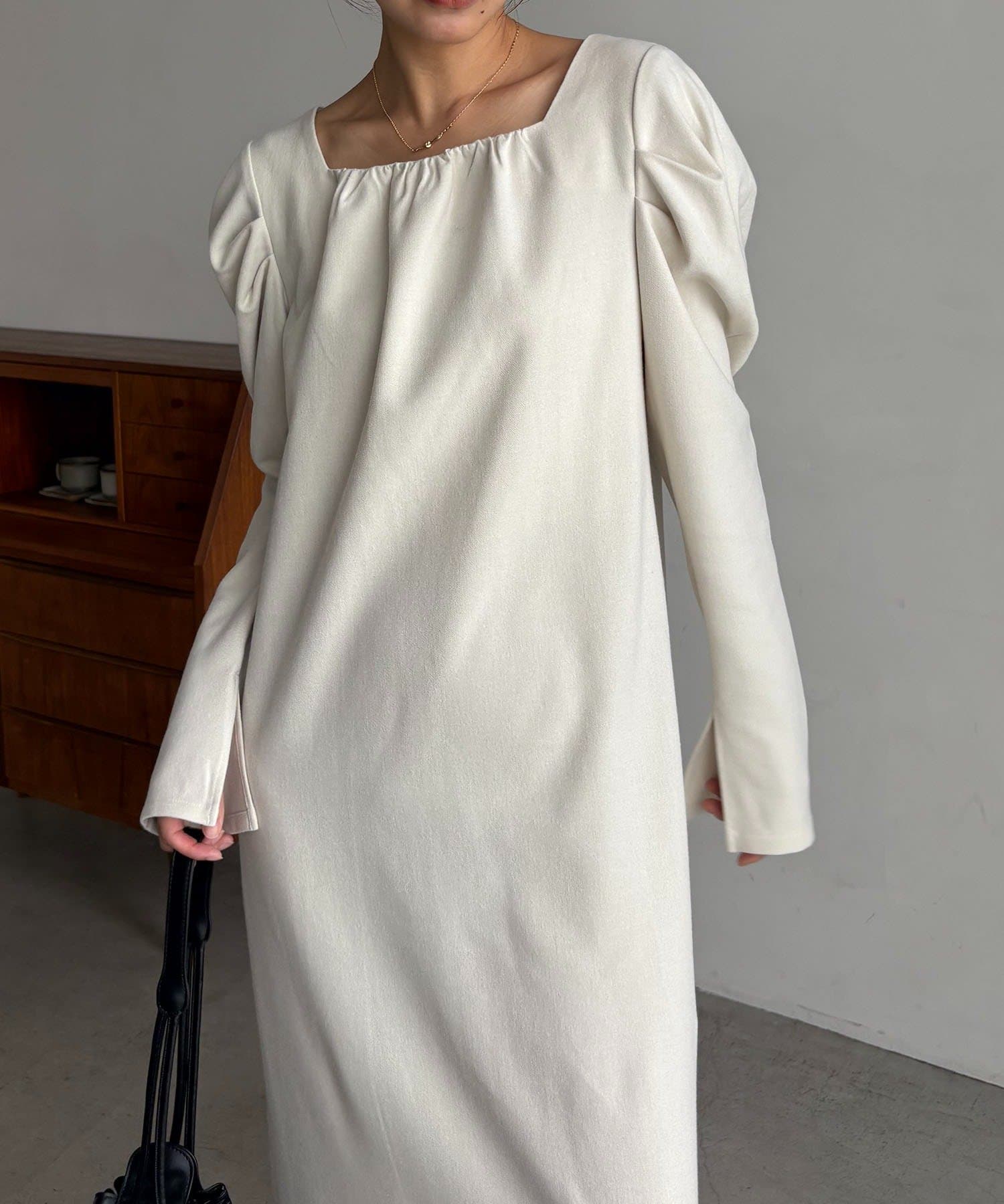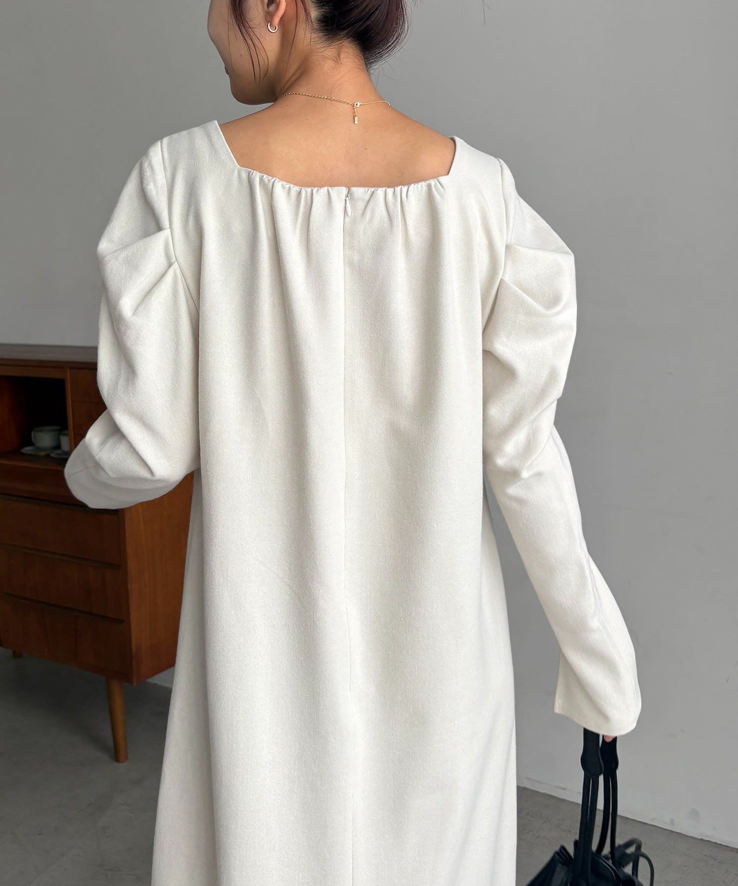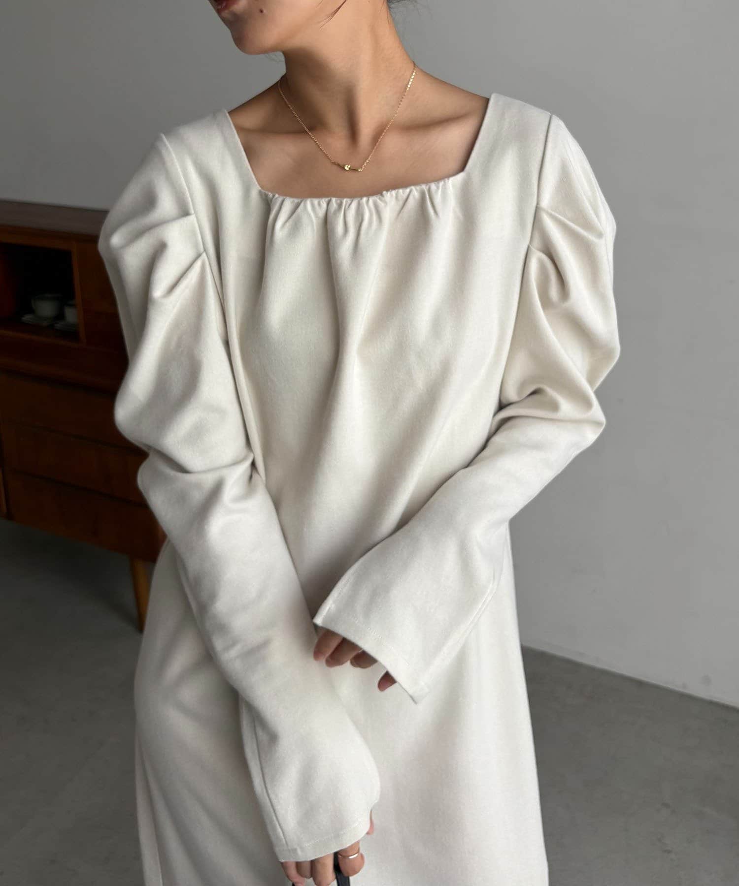 女性らしく抜け感のあるスクエアネックのワンピース