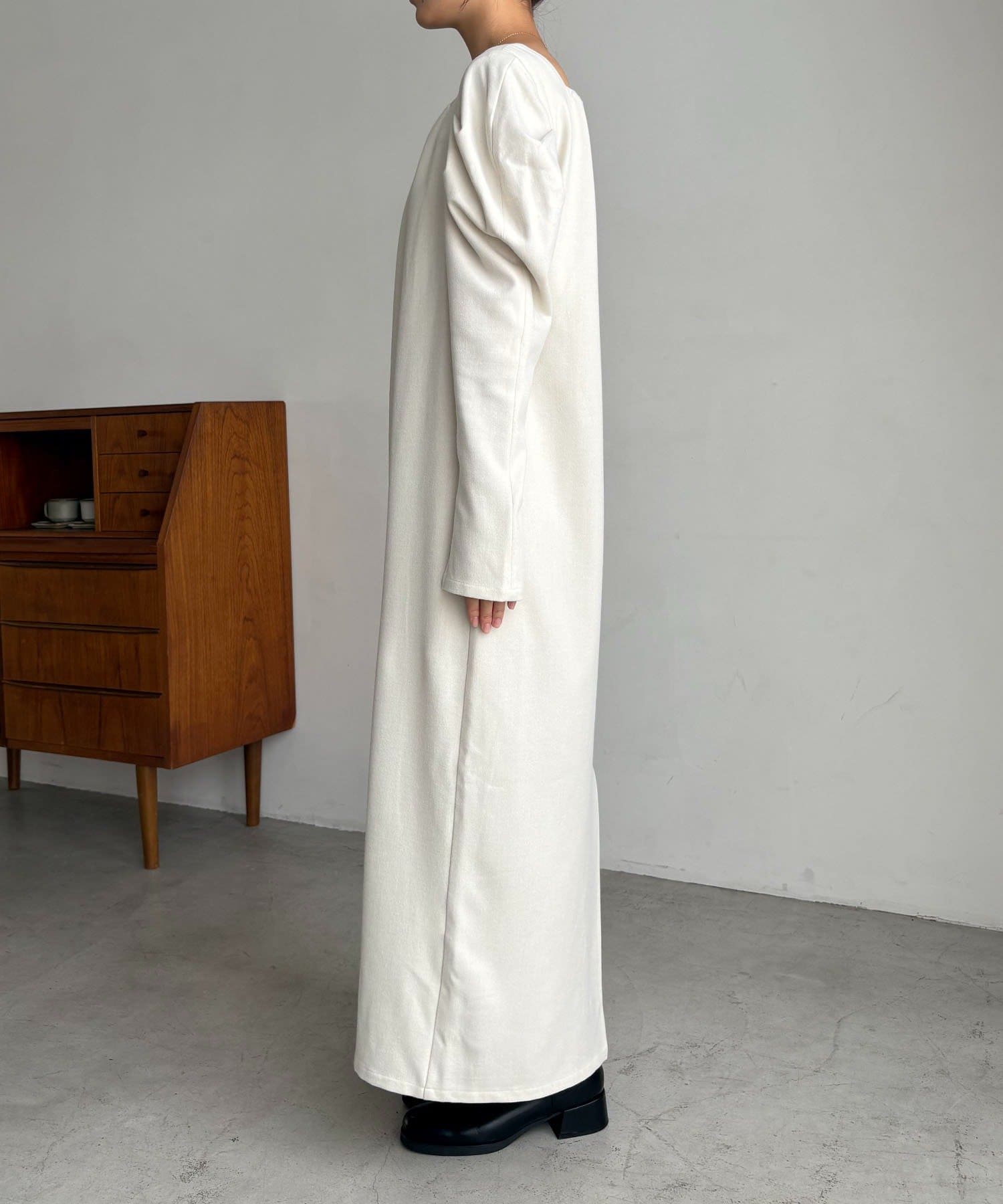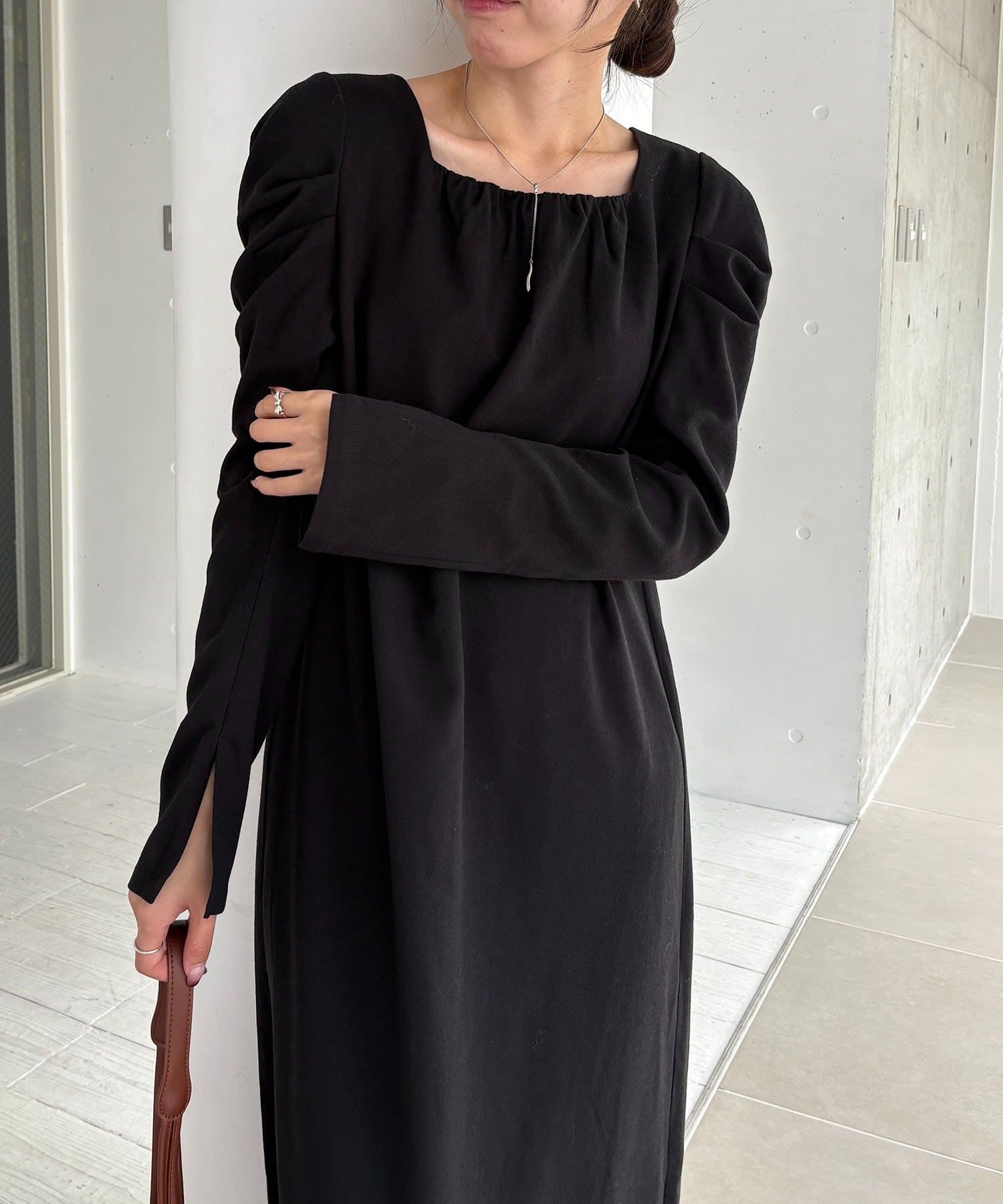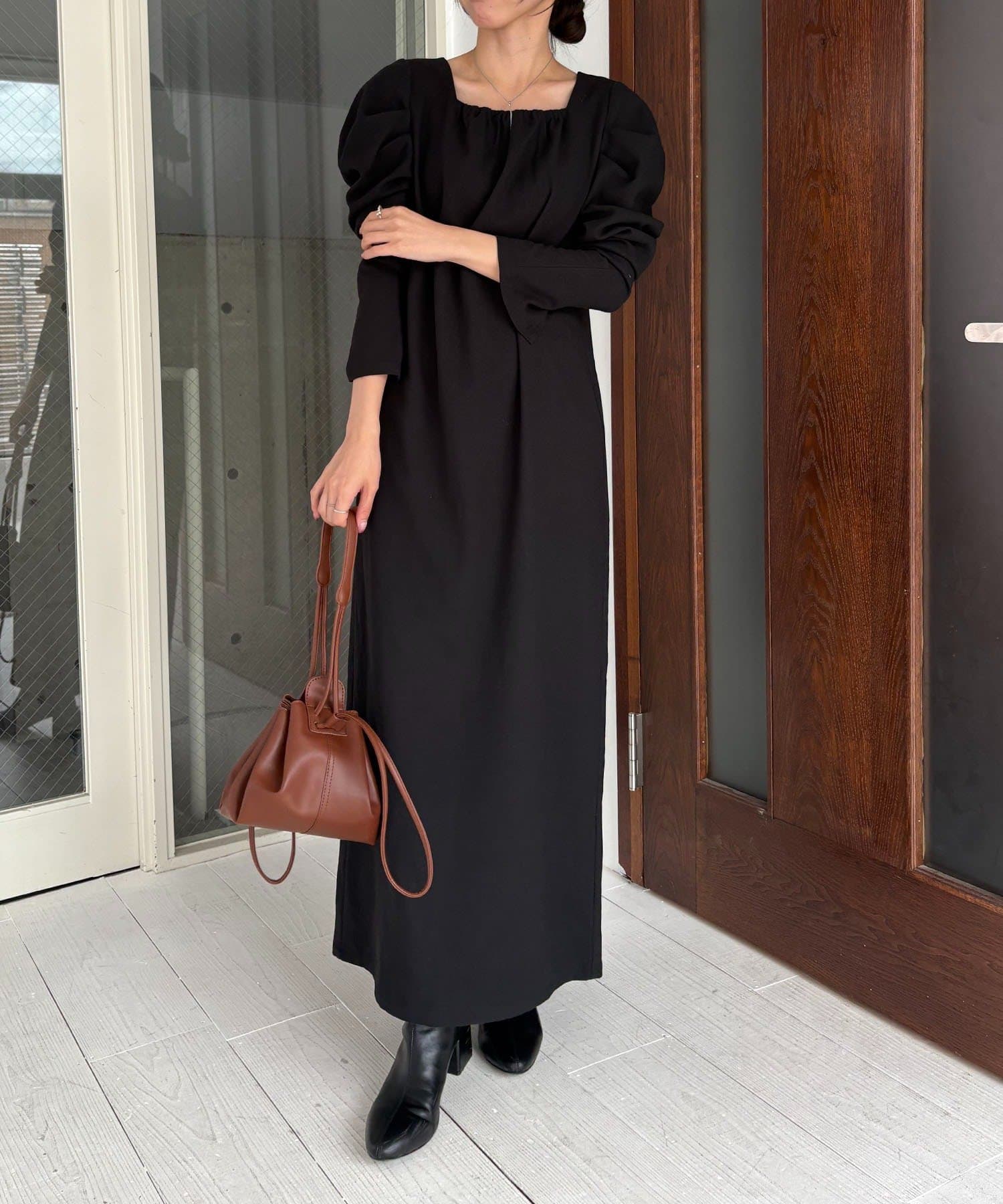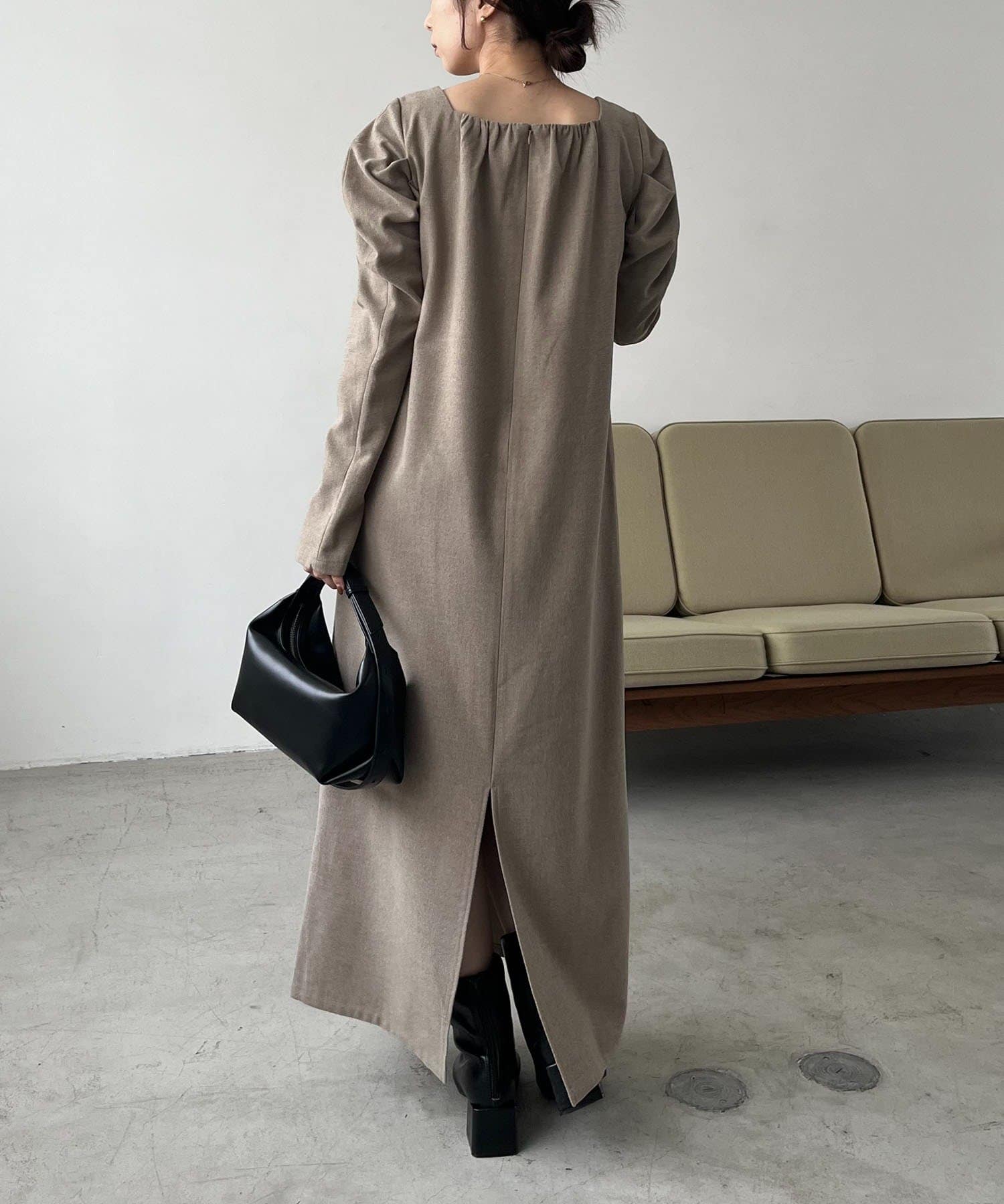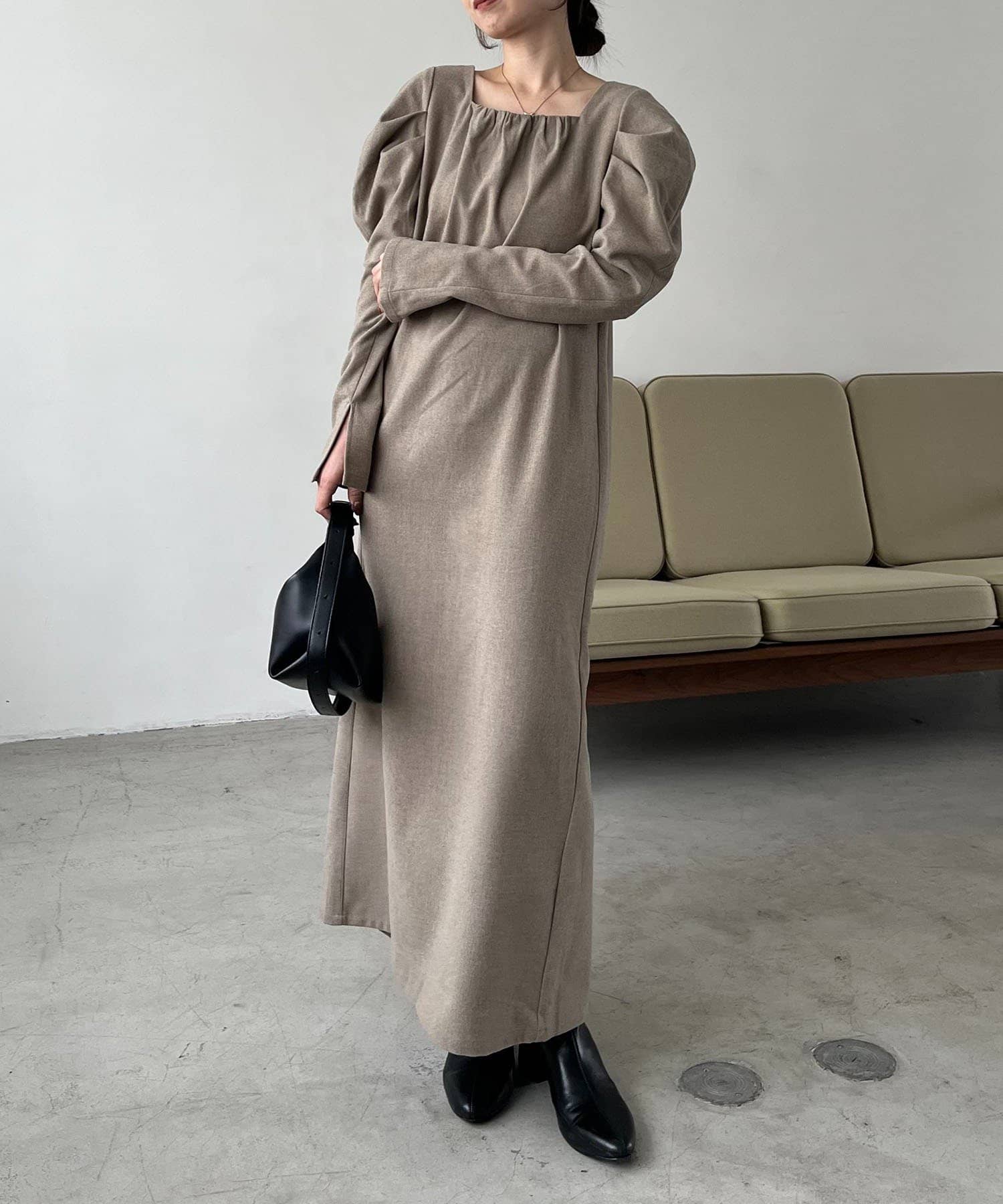 女性らしく抜け感のあるスクエアネックのワンピース